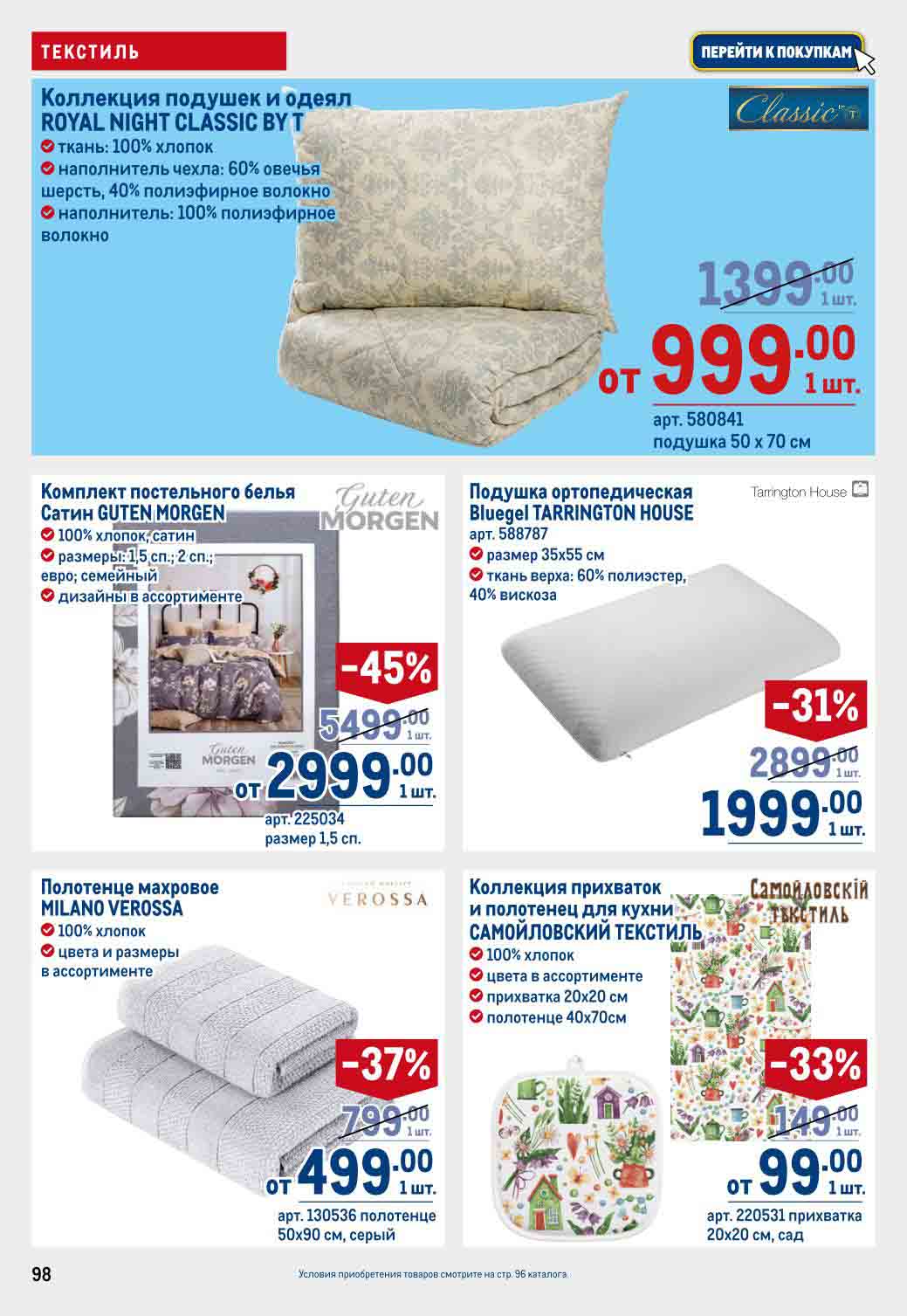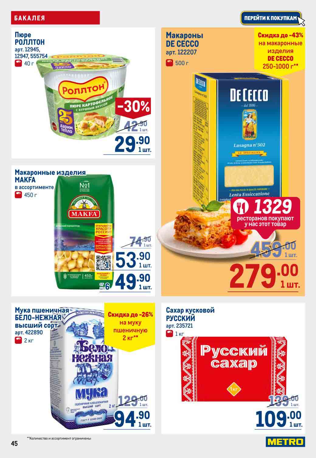 На страницах каталога Метро вы найдете все свои любимые товары, которые сейчас предлагаются в супермаркете. Не пропустите последние специальные предложения и сэкономьте на ваших покупках. В METRO представлен широкий ассортимент товаров, который отличается лучшими скидками и качеством. Цены по акции Метро действуют в городах: Москва, Балашиха, Химки, Подольск, Люберцы, Электросталь, Железнодорожный, Лобня, Ногинск и многих других населенных пунктах Московского региона.