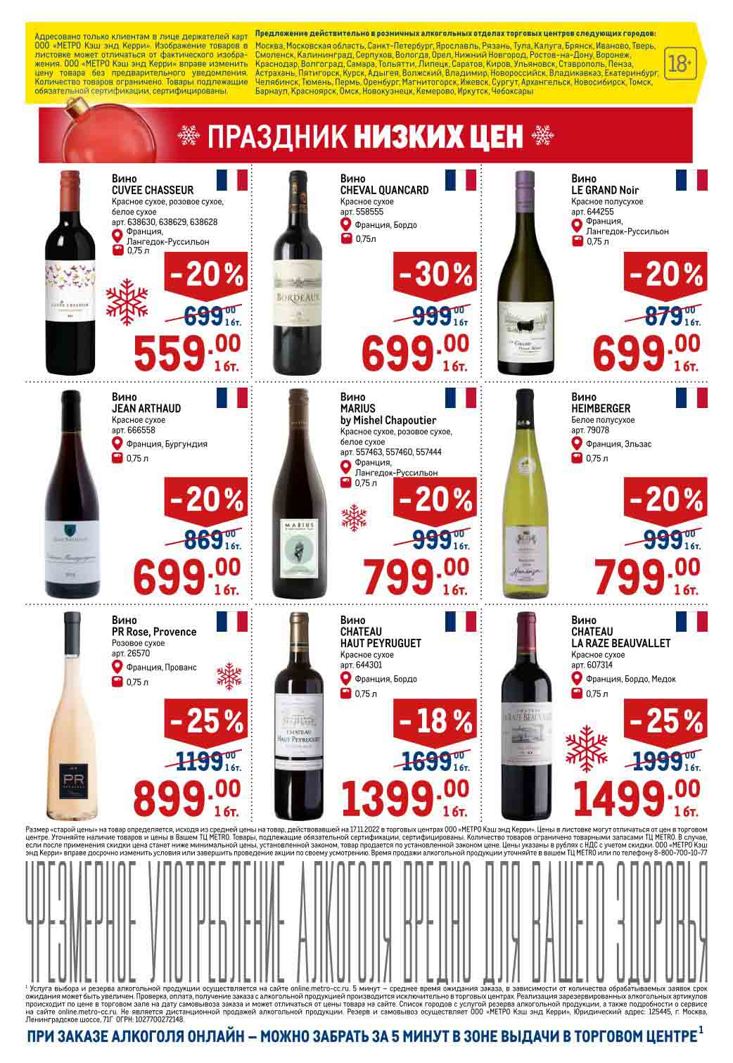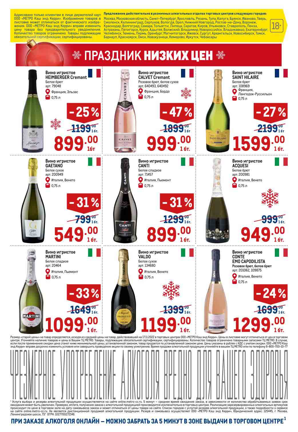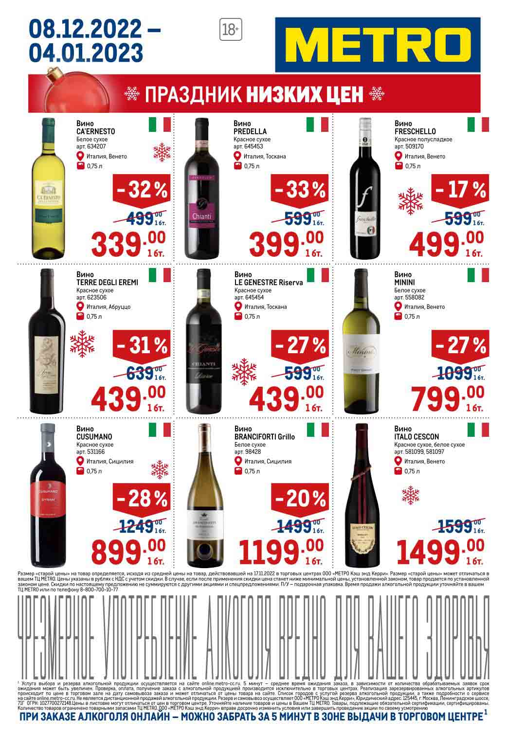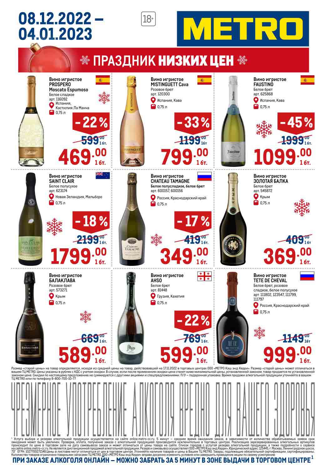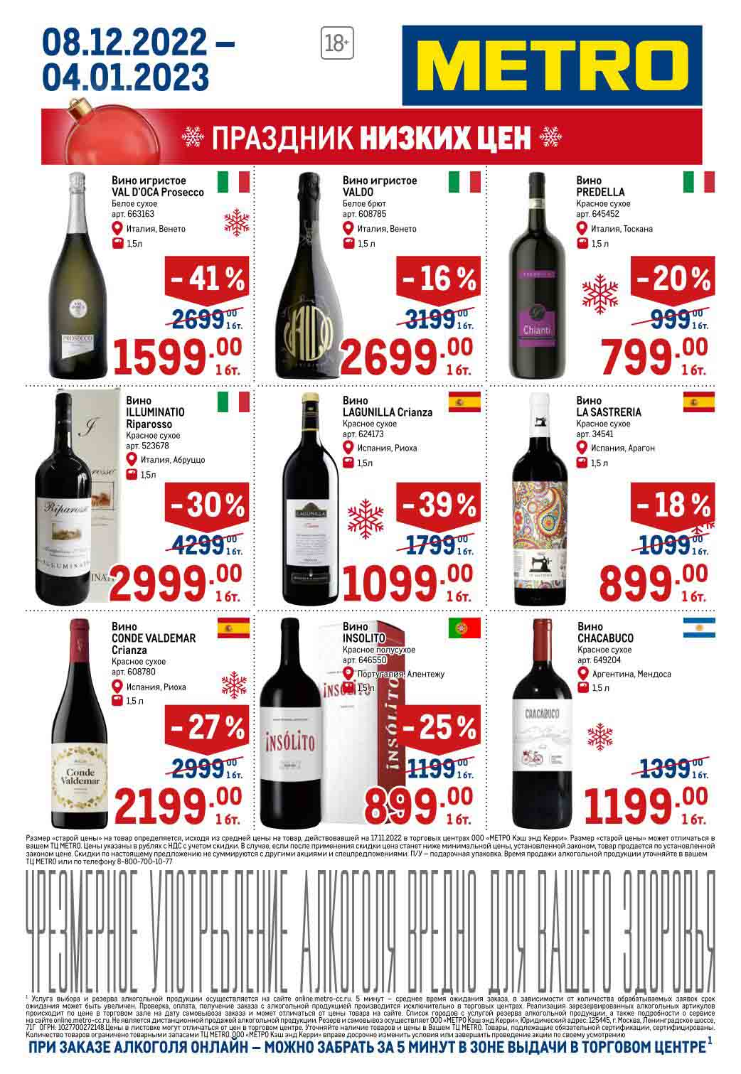 На страницах каталога Метро вы найдете все свои любимые товары, которые сейчас предлагаются в супермаркете. Не пропустите последние специальные предложения и сэкономьте на ваших покупках. В METRO представлен широкий ассортимент товаров, который отличается лучшими скидками и качеством. Цены по акции Метро действуют в городах: Москва, Балашиха, Химки, Подольск, Люберцы, Электросталь, Железнодорожный, Лобня, Ногинск и многих других населенных пунктах Московского региона.