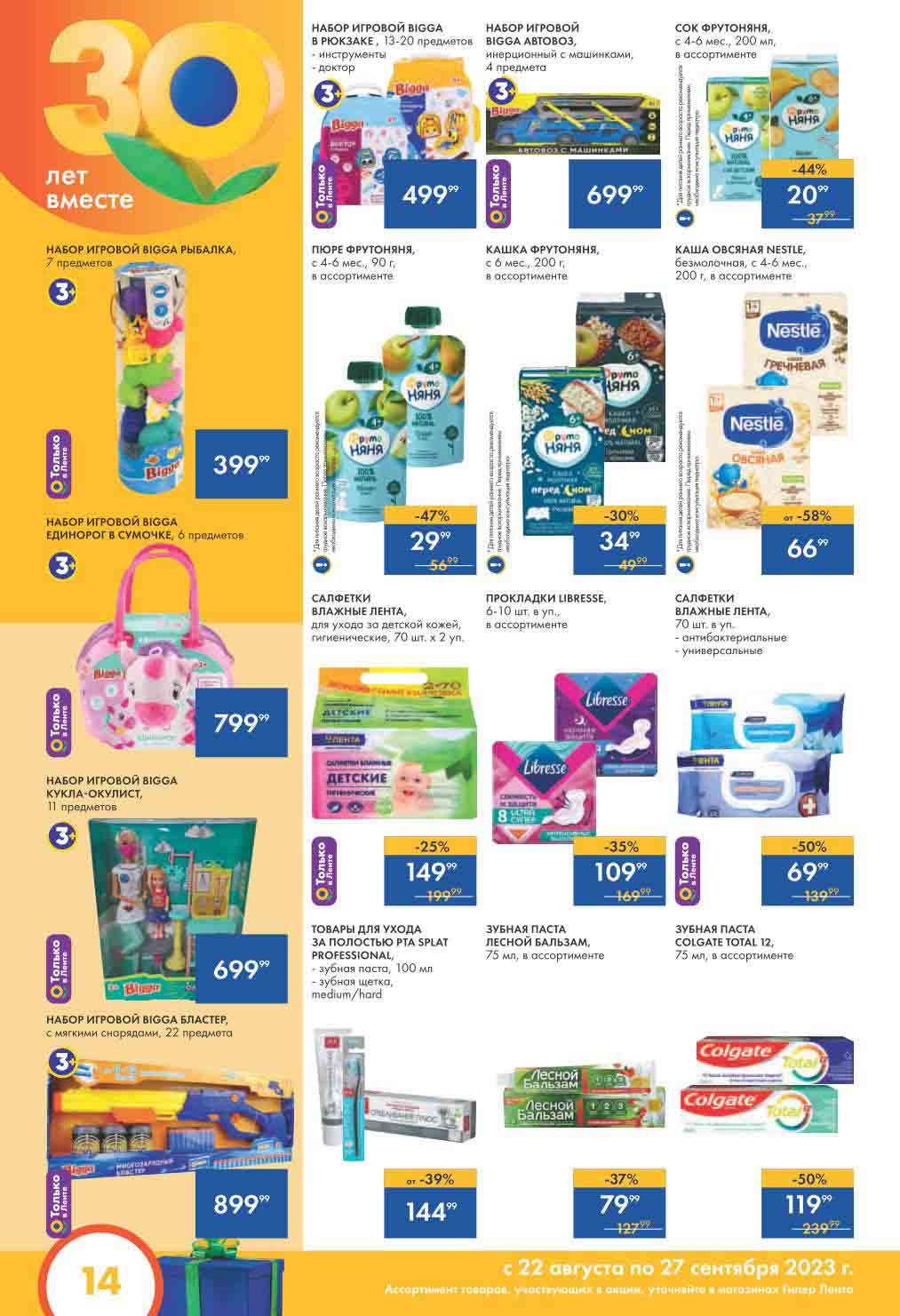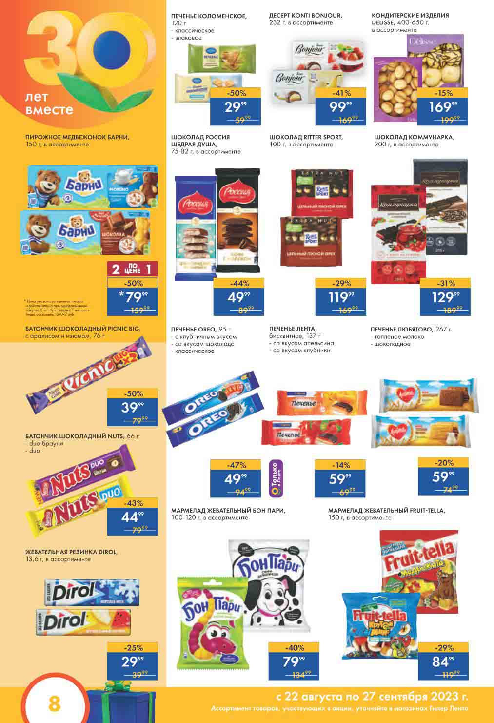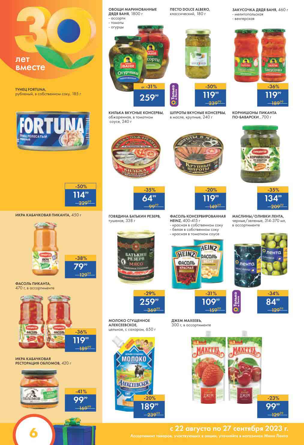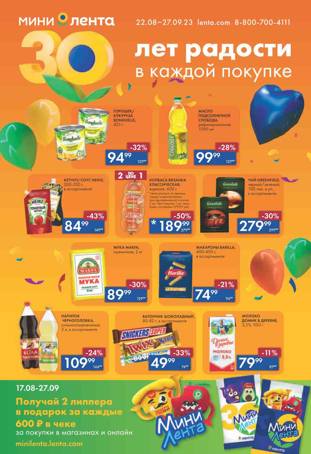 Мини Лента акции с 22 августа — 27 сентября 2023. Каталог 30 лет радости в каждой покупке