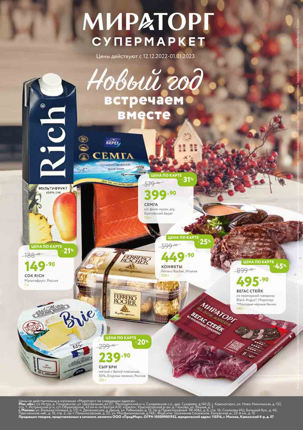 Мираторг акции с 12 декабря — 1 января 2023. Новогодний каталог магазина