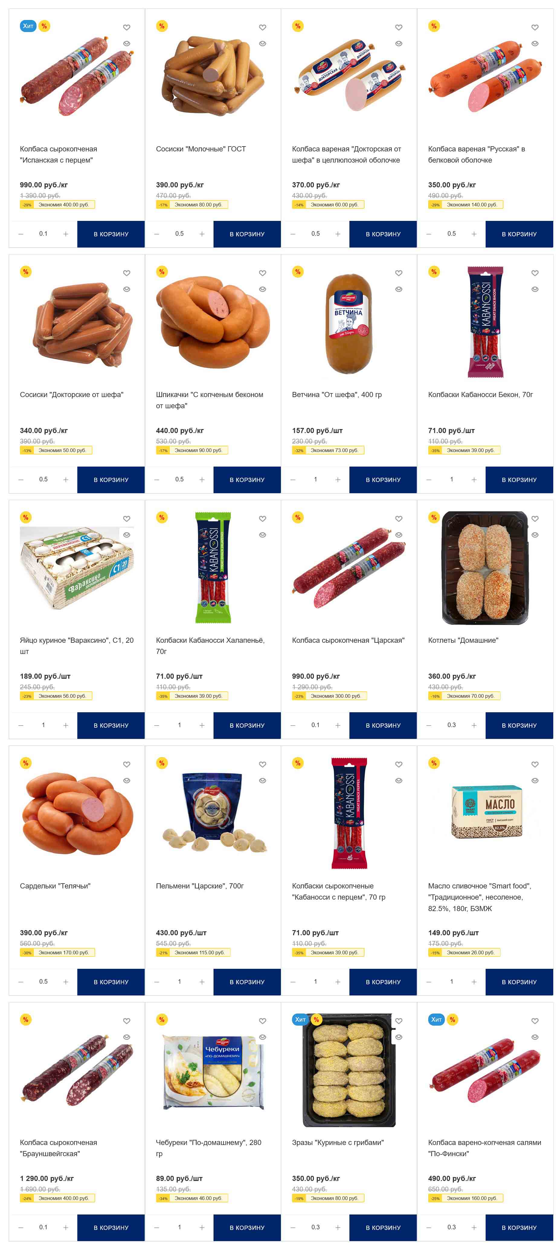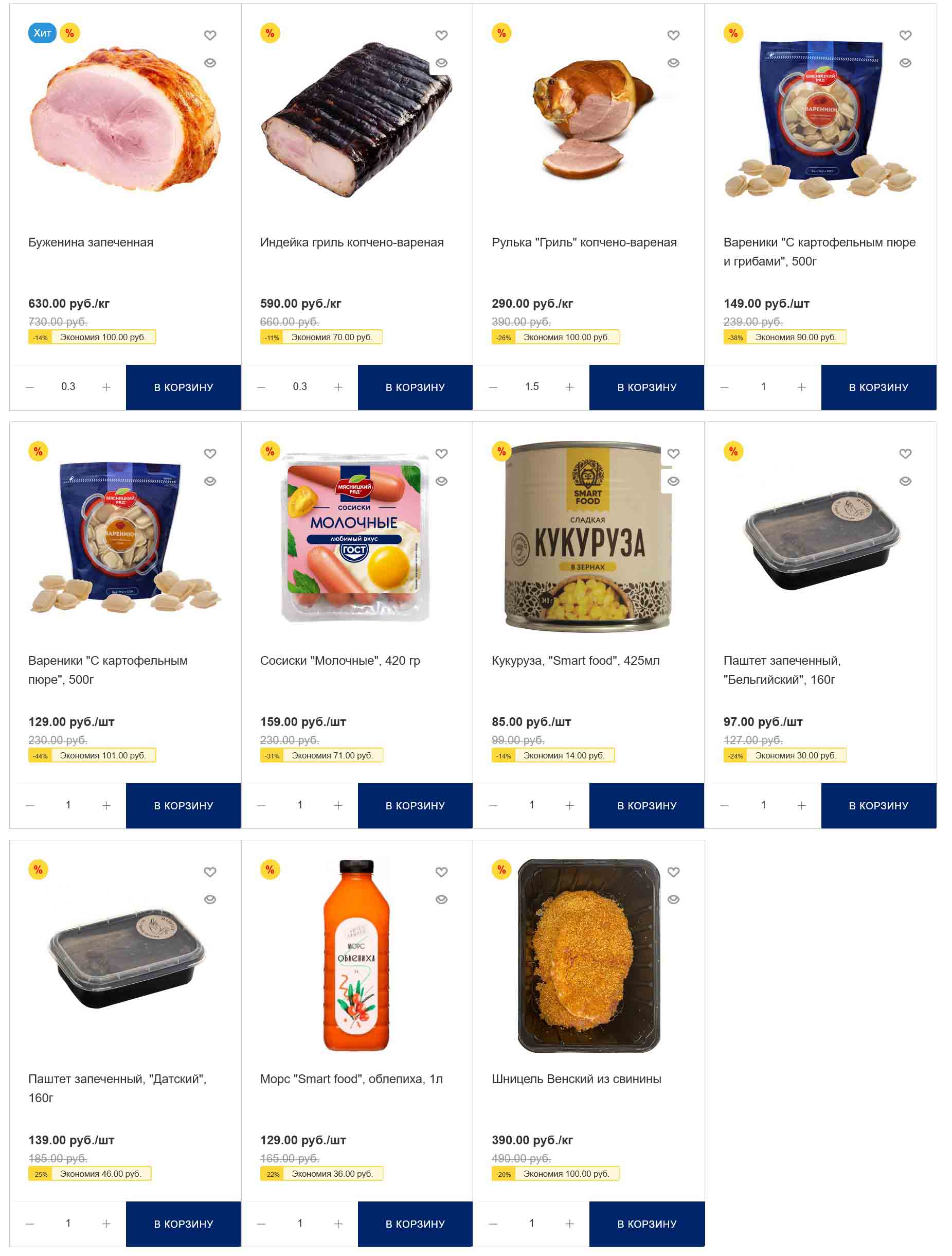 На страницах каталога Мясницкий Ряд вы найдете все свои любимые товары, которые сейчас предлагаются в супермаркете. Не пропустите последние специальные предложения и сэкономьте на покупках. Цены по акции Мясницкий ряд действуют в городах: Москва, Балашиха, Химки, Подольск, Королев, Мытищи, Люберцы, Электросталь, Коломна, Одинцово, Железнодорожный, Серпухов, Орехово-Зуево, Красногорск, Щелково, Сергиев Посад, Пушкино, Жуковский, Ногинск, Раменское, Клин, Воскресенск, Домодедово и многих других населенных пунктах Московского региона.
