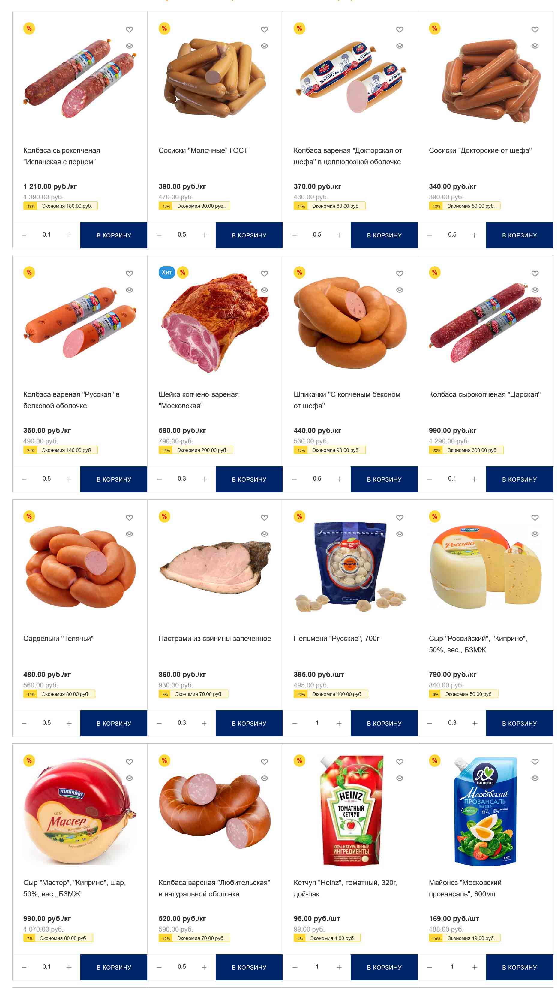 На страницах каталога Мясницкий Ряд вы найдете все свои любимые товары, которые сейчас предлагаются в супермаркете. Не пропустите последние специальные предложения и сэкономьте на покупках. Цены по акции Мясницкий ряд действуют в городах: Москва, Балашиха, Химки, Подольск, Королев, Мытищи, Люберцы, Электросталь, Коломна, Одинцово, Железнодорожный, Серпухов, Орехово-Зуево, Красногорск, Щелково, Сергиев Посад, Пушкино, Жуковский, Ногинск, Раменское, Клин, Воскресенск, Домодедово и многих других населенных пунктах Московского региона.