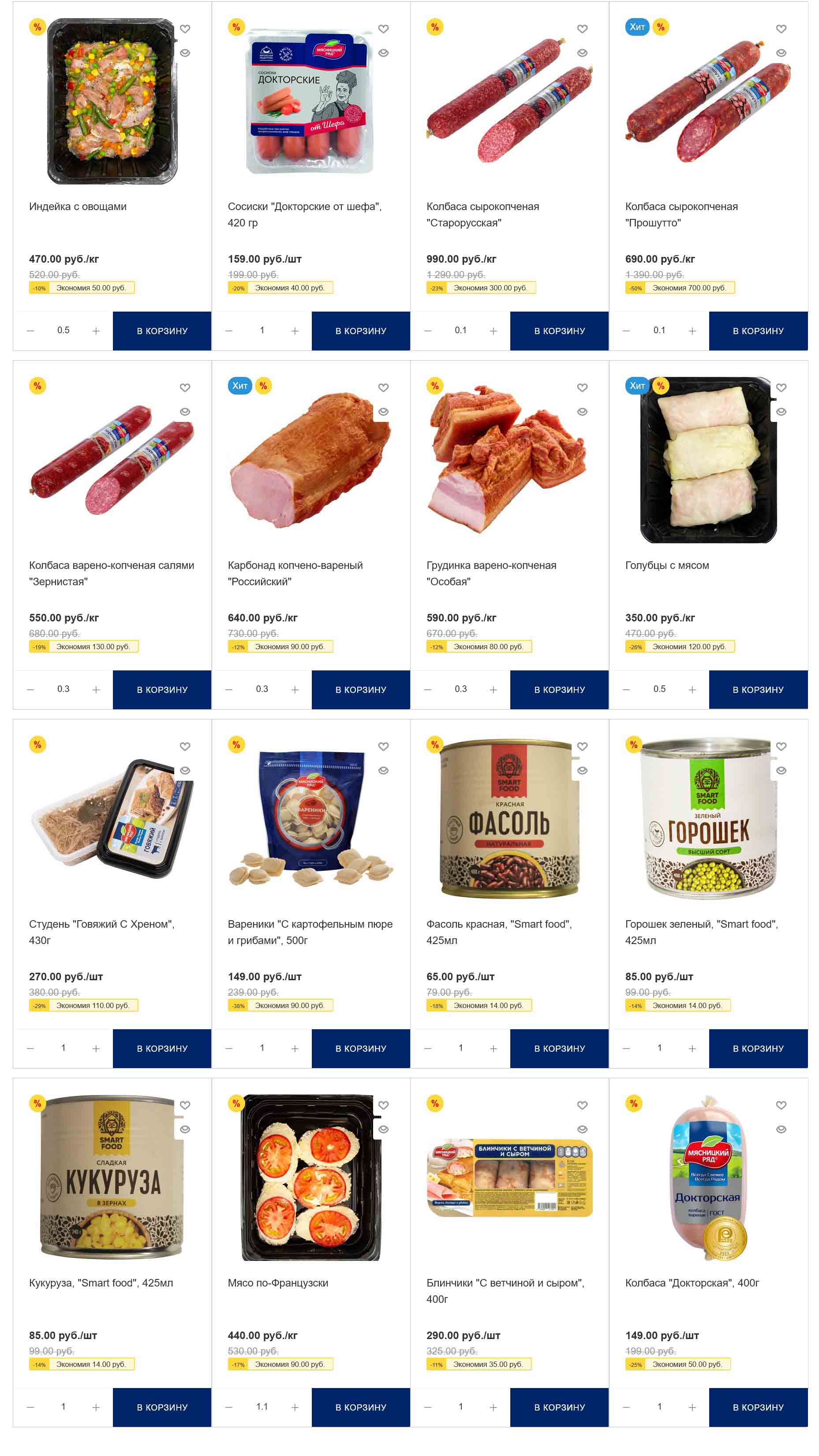 На страницах каталога Мясницкий Ряд вы найдете все свои любимые товары, которые сейчас предлагаются в супермаркете. Не пропустите последние специальные предложения и сэкономьте на покупках. Цены по акции Мясницкий ряд действуют в городах: Москва, Балашиха, Химки, Подольск, Королев, Мытищи, Люберцы, Электросталь, Коломна, Одинцово, Железнодорожный, Серпухов, Орехово-Зуево, Красногорск, Щелково, Сергиев Посад, Пушкино, Жуковский, Ногинск, Раменское, Клин, Воскресенск, Домодедово и многих других населенных пунктах Московского региона.