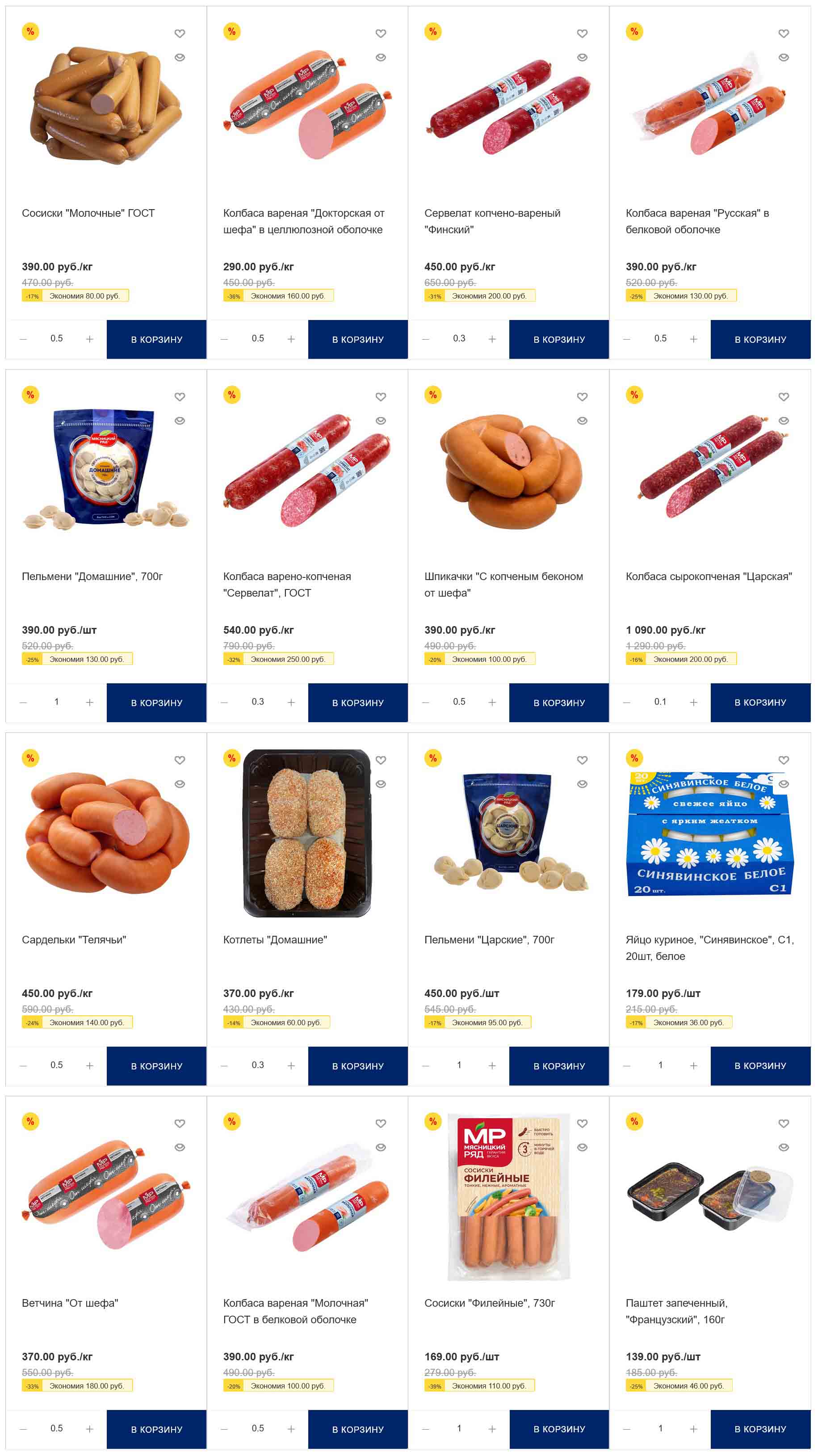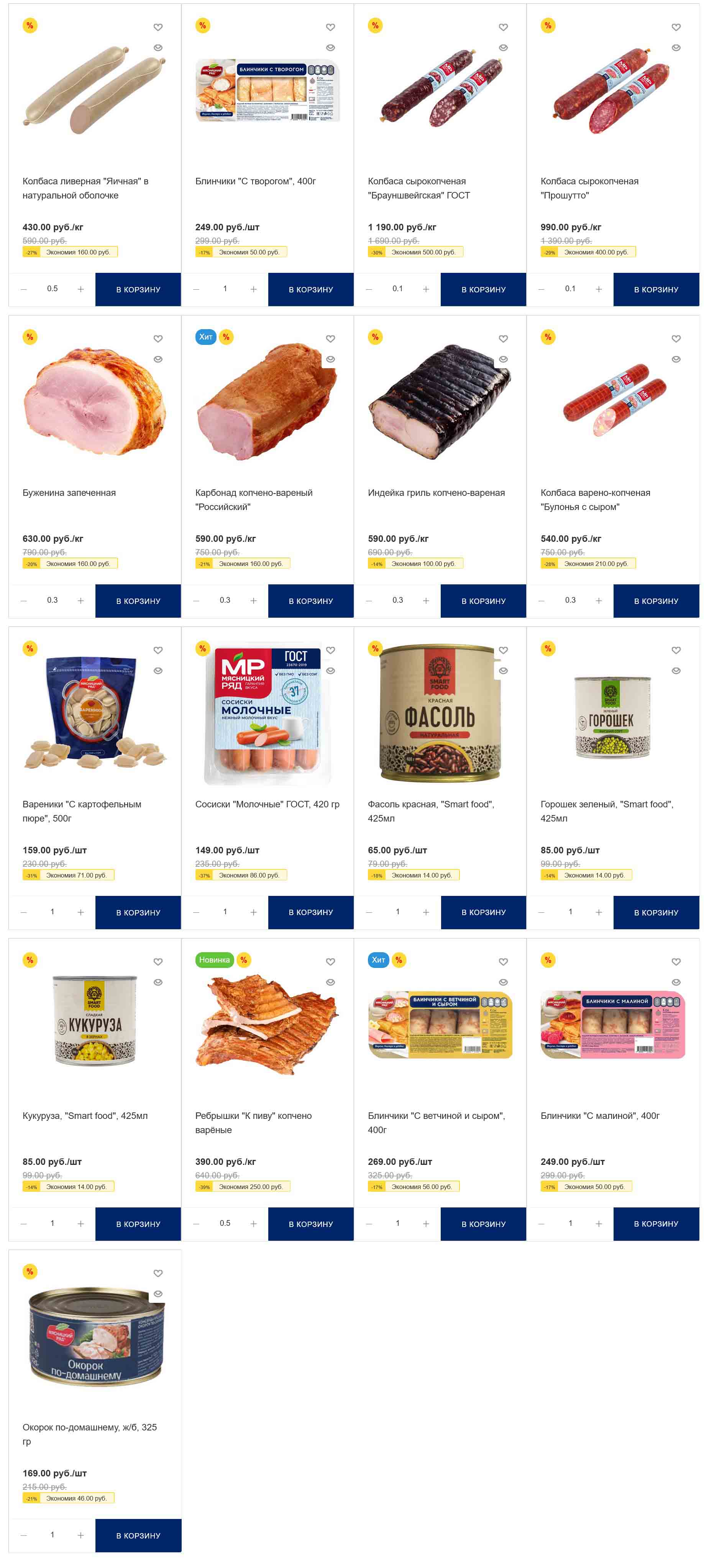 На страницах каталога Мясницкий Ряд вы найдете все свои любимые товары, которые сейчас предлагаются в супермаркете. Не пропустите последние специальные предложения и сэкономьте на покупках. Цены по акции Мясницкий ряд действуют в городах: Москва, Балашиха, Химки, Подольск, Королев, Мытищи, Люберцы, Электросталь, Коломна, Одинцово, Железнодорожный, Серпухов, Орехово-Зуево, Красногорск, Щелково, Сергиев Посад, Пушкино, Жуковский, Ногинск, Раменское, Клин, Воскресенск, Домодедово и многих других населенных пунктах Московского региона.