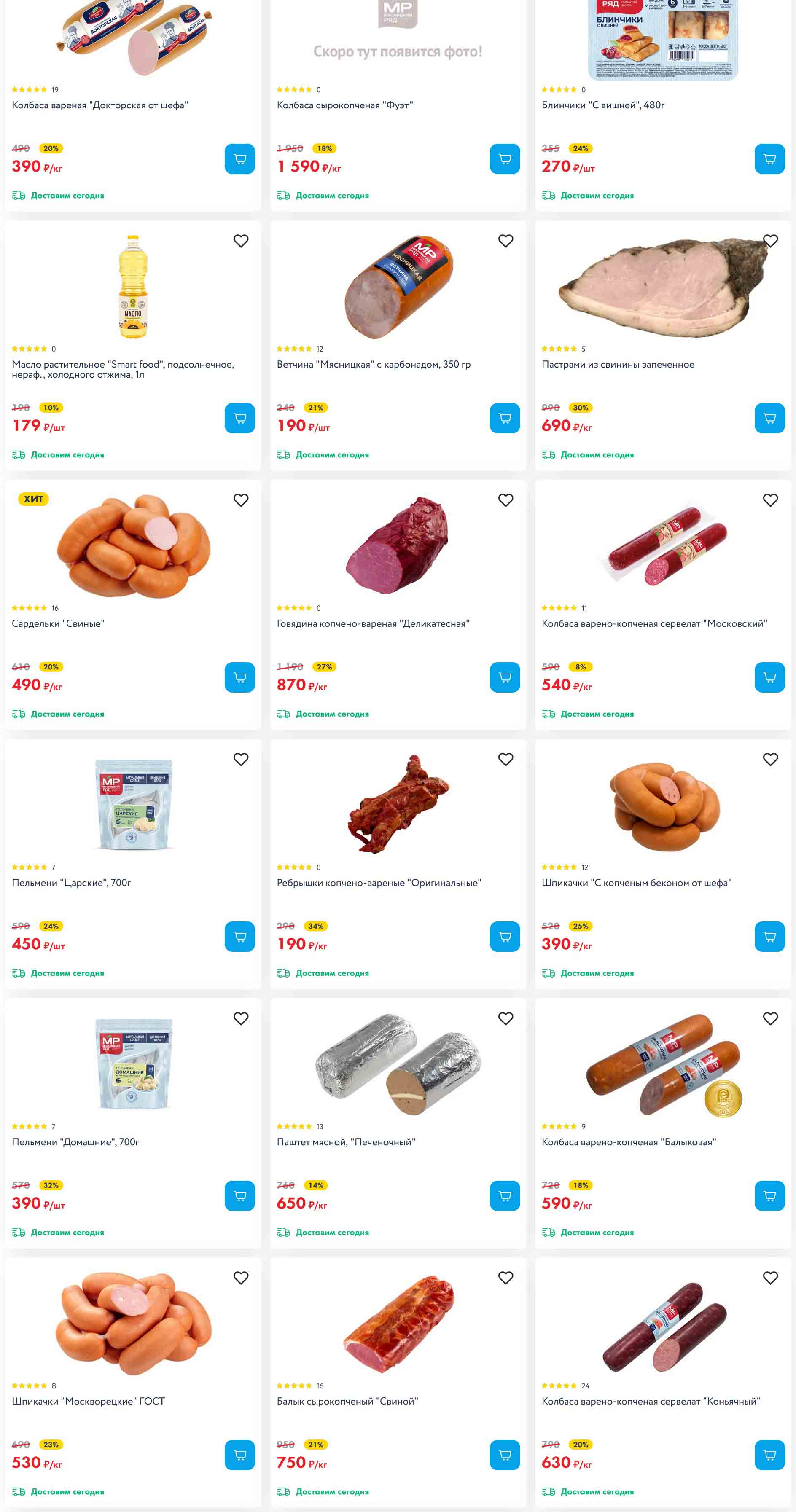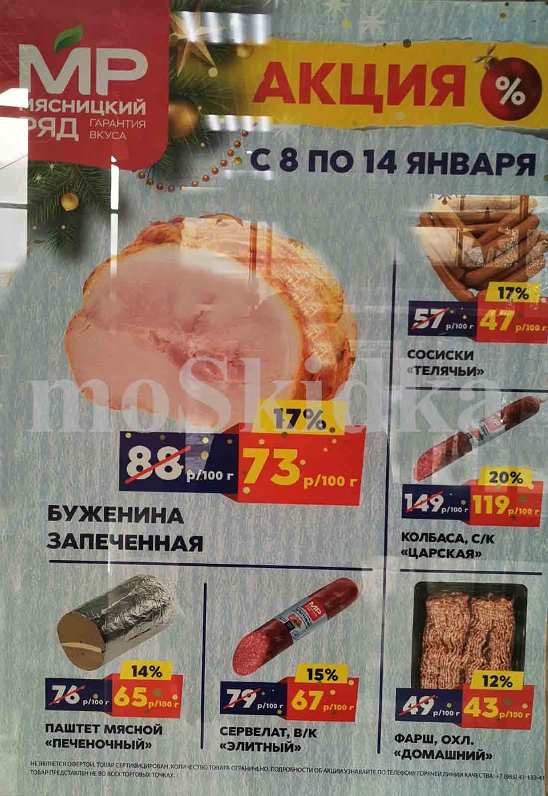 На страницах каталога Мясницкий Ряд вы найдете все свои любимые товары, которые сейчас предлагаются в супермаркете. Не пропустите последние специальные предложения и сэкономьте на покупках. Цены по акции Мясницкий ряд действуют в городах: Москва, Балашиха, Химки, Подольск, Королев, Мытищи, Люберцы, Электросталь, Коломна, Одинцово, Железнодорожный, Серпухов, Орехово-Зуево, Красногорск, Щелково, Сергиев Посад, Пушкино, Жуковский, Ногинск, Раменское, Клин, Воскресенск, Домодедово и многих других населенных пунктах Московского региона.