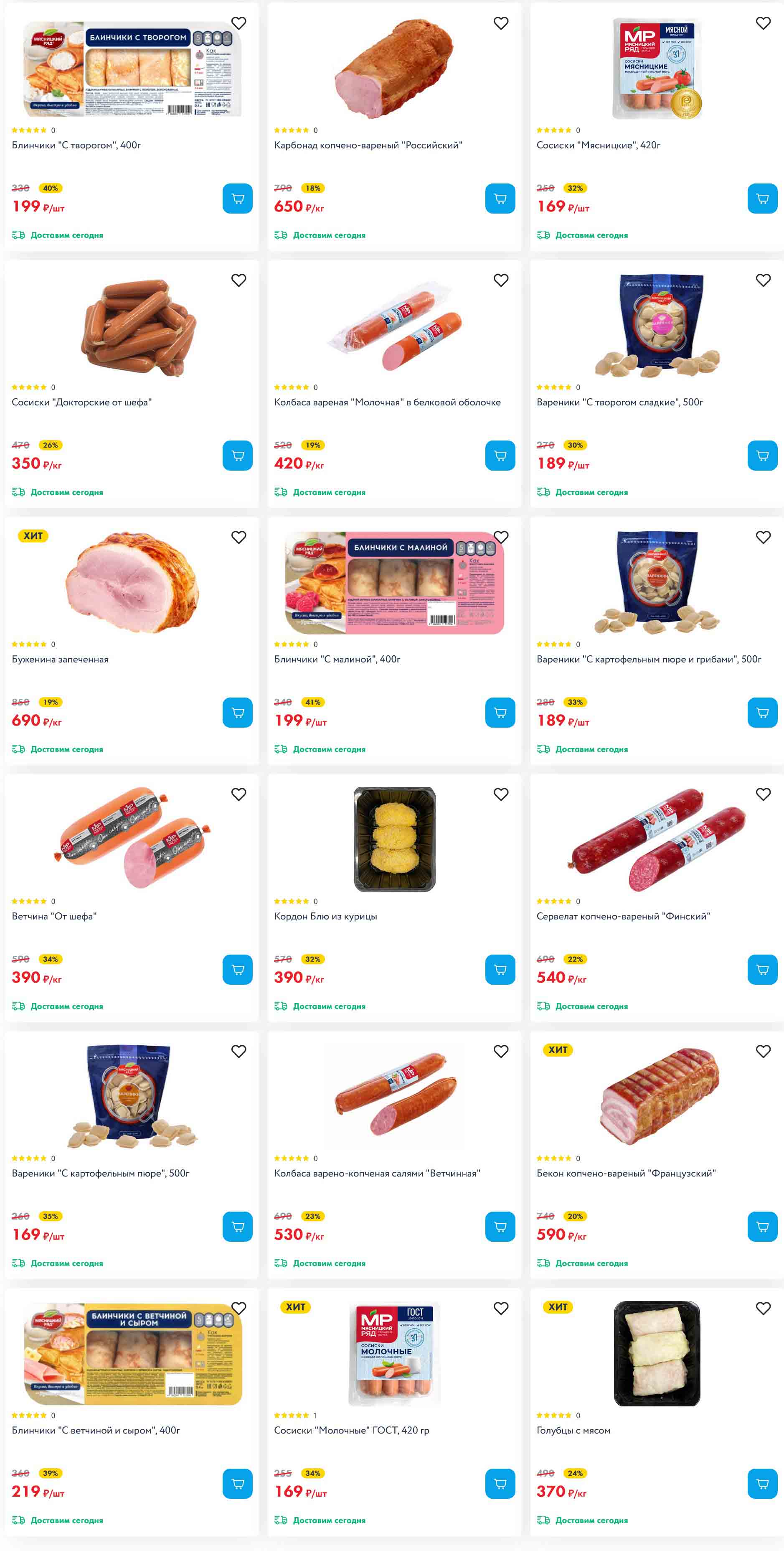 На страницах каталога Мясницкий Ряд вы найдете все свои любимые товары, которые сейчас предлагаются в супермаркете. Не пропустите последние специальные предложения и сэкономьте на покупках. Цены по акции Мясницкий ряд действуют в городах: Москва, Балашиха, Химки, Подольск, Королев, Мытищи, Люберцы, Электросталь, Коломна, Одинцово, Железнодорожный, Серпухов, Орехово-Зуево, Красногорск, Щелково, Сергиев Посад, Пушкино, Жуковский, Ногинск, Раменское, Клин, Воскресенск, Домодедово и многих других населенных пунктах Московского региона.
