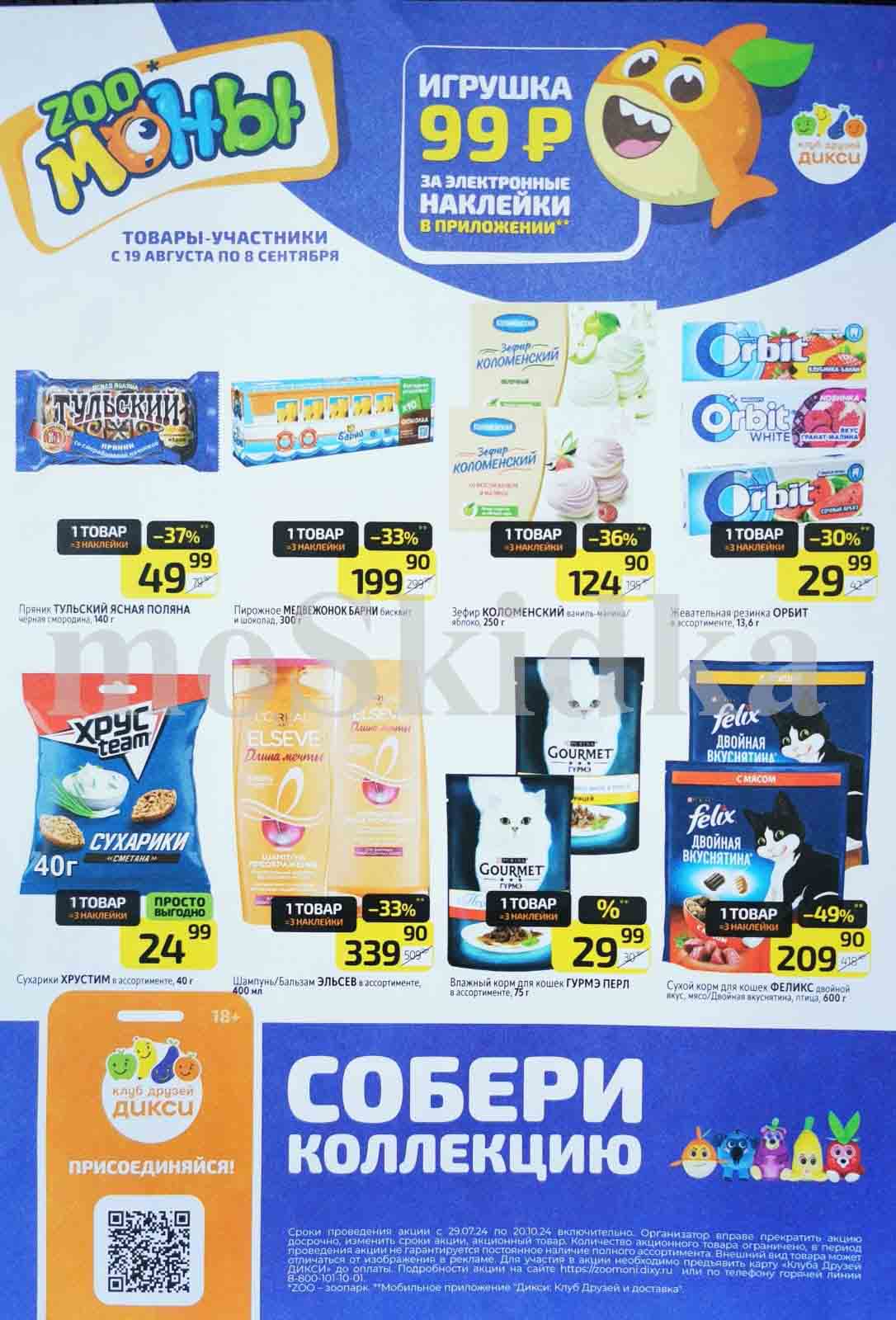 Наклейки в подарок за покупку товаров-участников акции Зоомоны с 19 августа — 8 сентября 2024