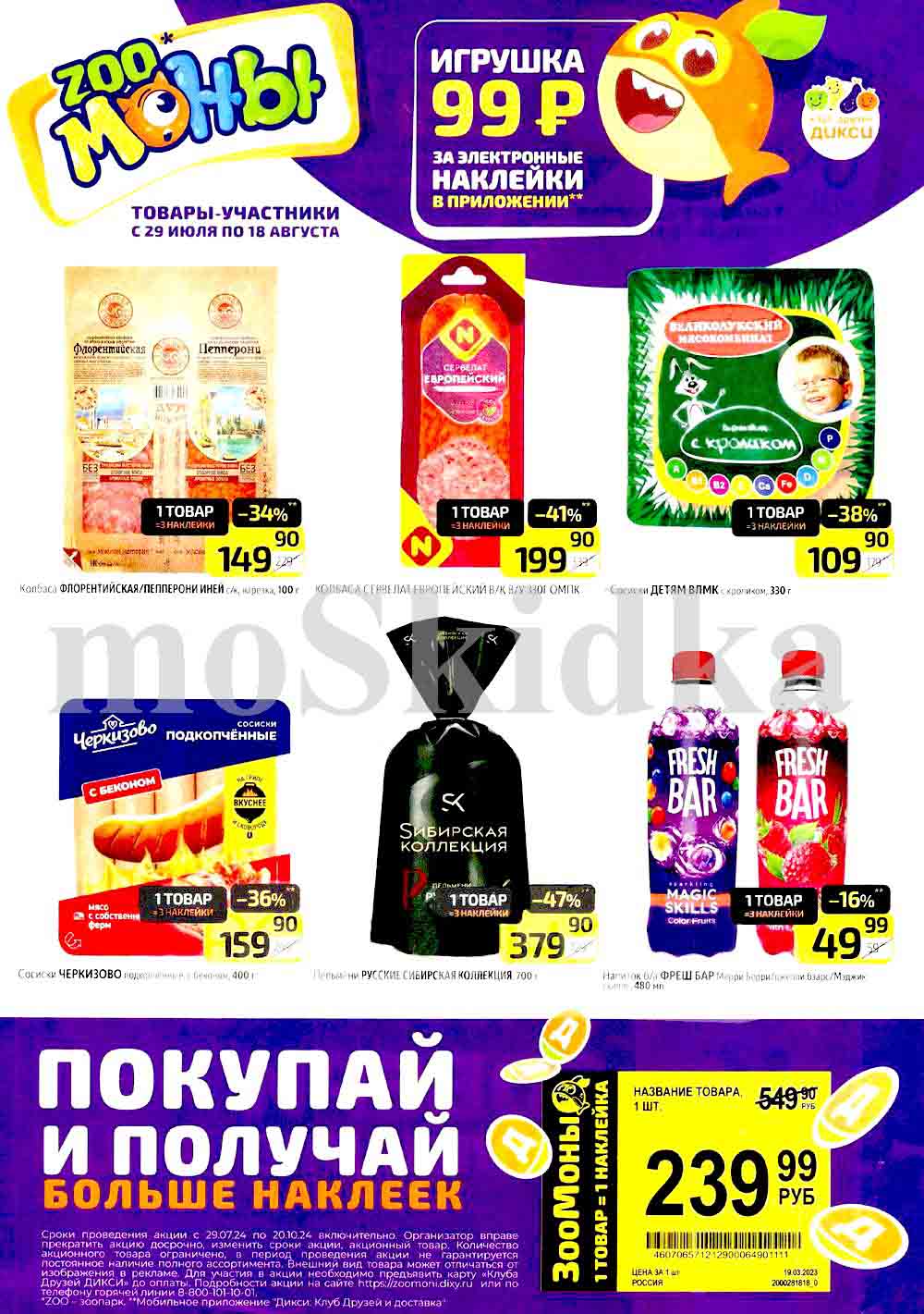 Наклейки в подарок за покупку товаров-участников акции Зоомоны с 29 июля — 18 августа 2024