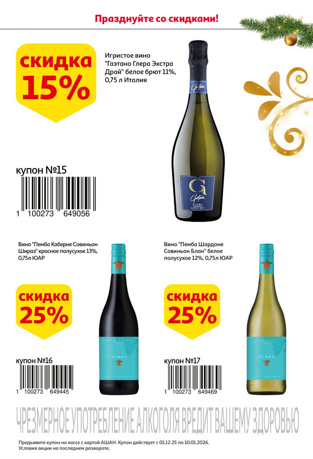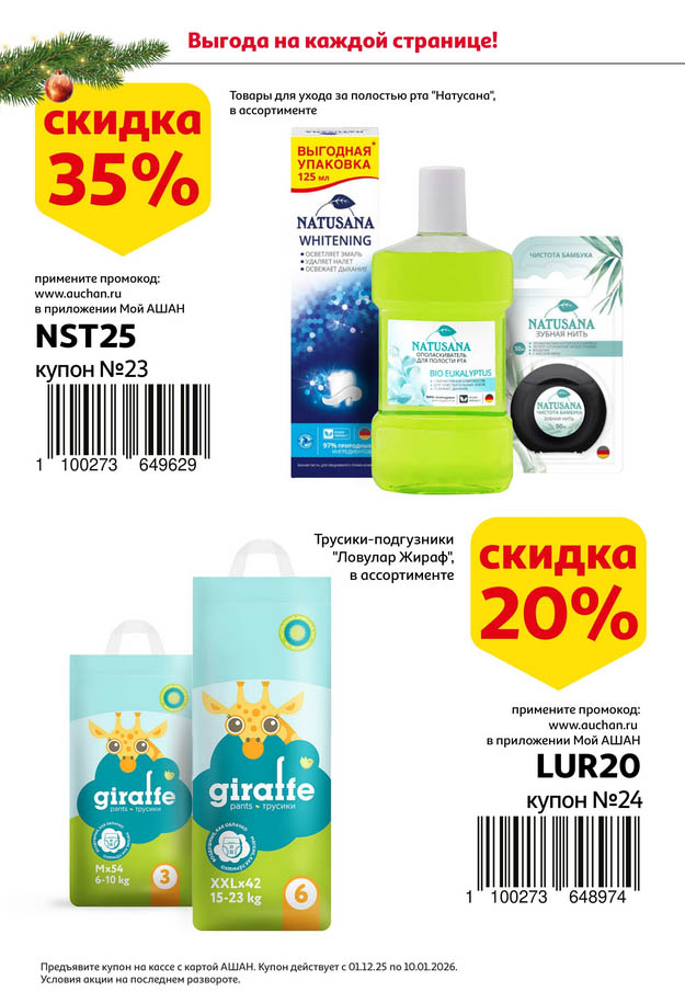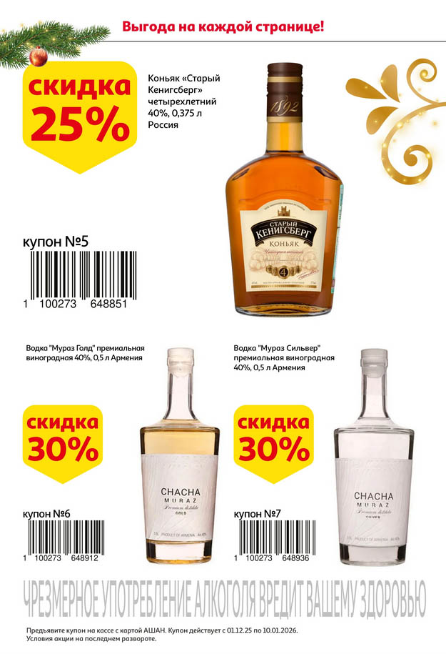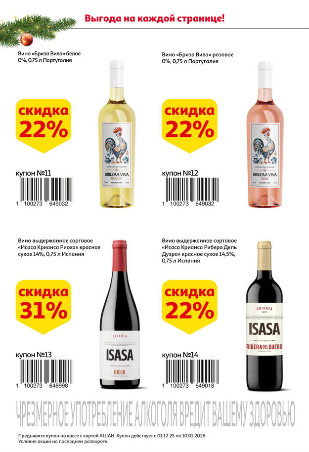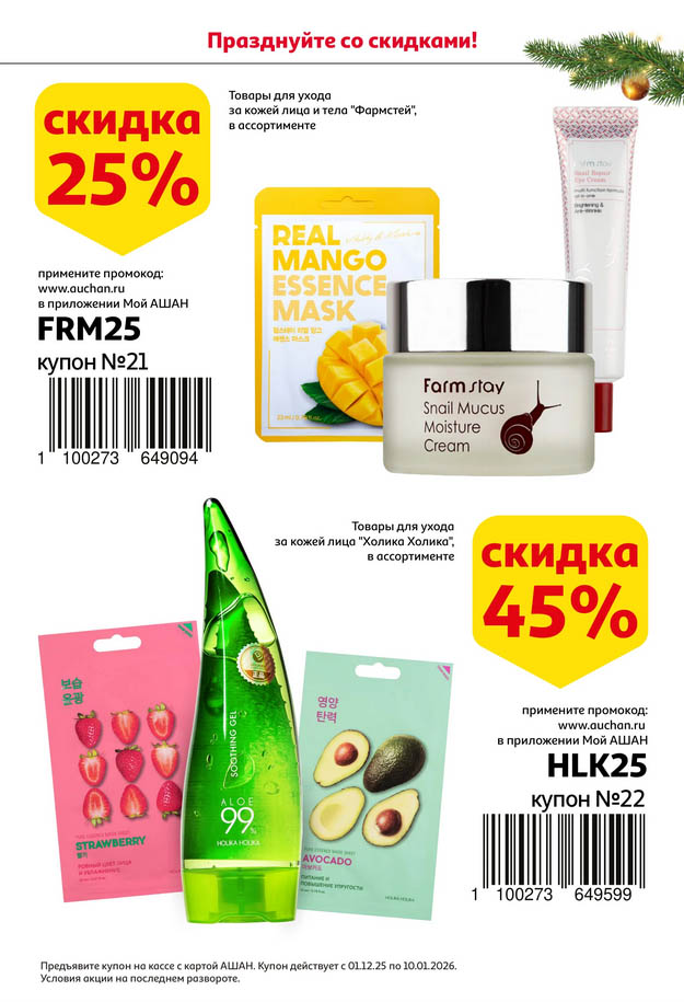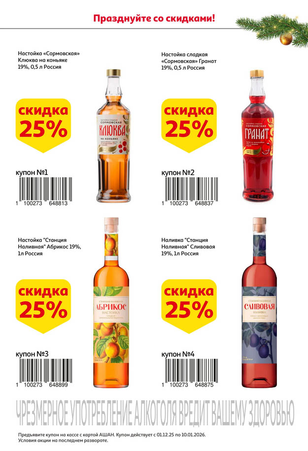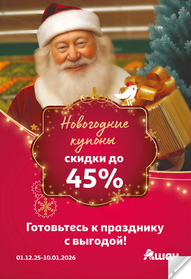 Новогодние купоны в Ашан с 1 декабря — 10 января 2026