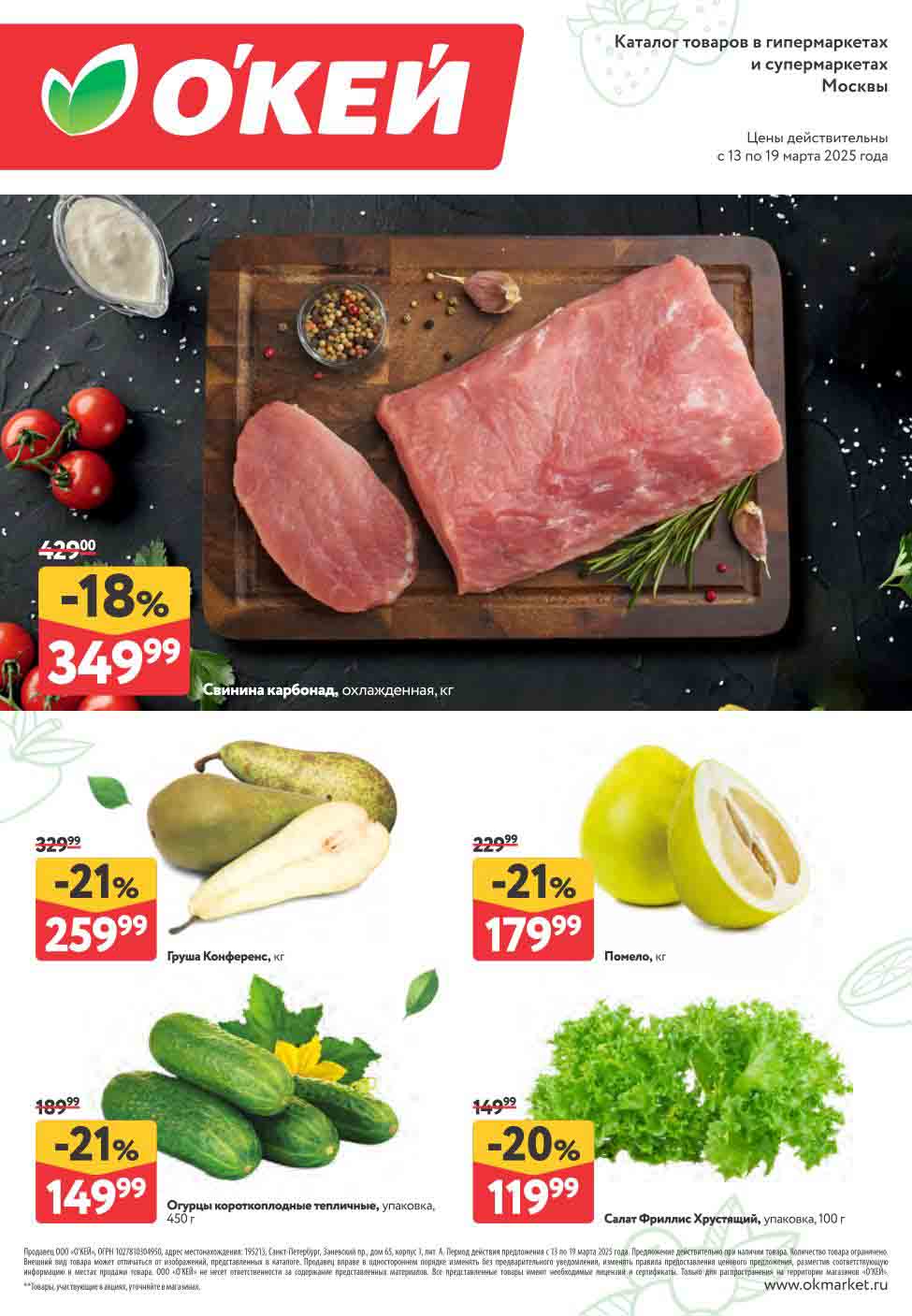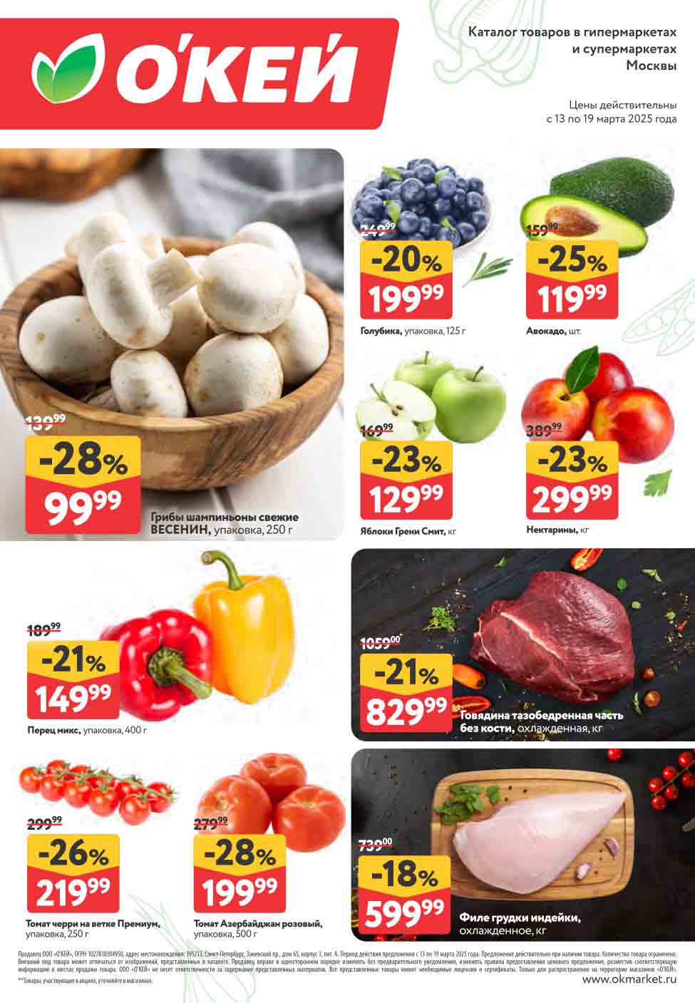 На страницах каталога Окей вы найдете все свои любимые продукты, которые сейчас предлагаются в супермаркете. Не пропустите последние специальные предложения и сэкономьте на покупках. Предложение действительно при наличии товара на прилавках. Каталог Окей обновляется каждые две недели, в нем представлены большое количество товаров с привлекательными скидками. Цены по акции Окей действуют в городах: Москва, Путилково, Московский, Отрадное, Лобня, Мытищи, Люберцы, Электросталь, Ногинск, Клин, Сергиев Пасад, Воскресенск и многих других населенных пунктах Московского региона.