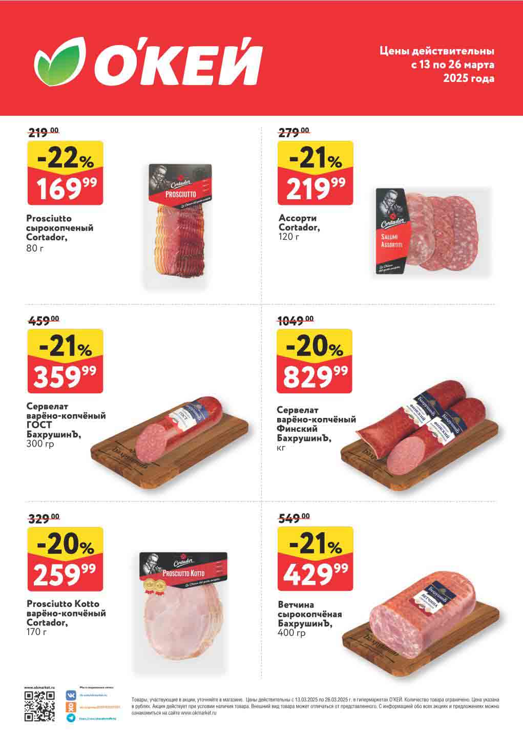 Подробную информацию об правилах, адресах и скидках узнавайте в магазинах или по тел.8 (800) 250-00-08 и на сайте okmarket.ru
