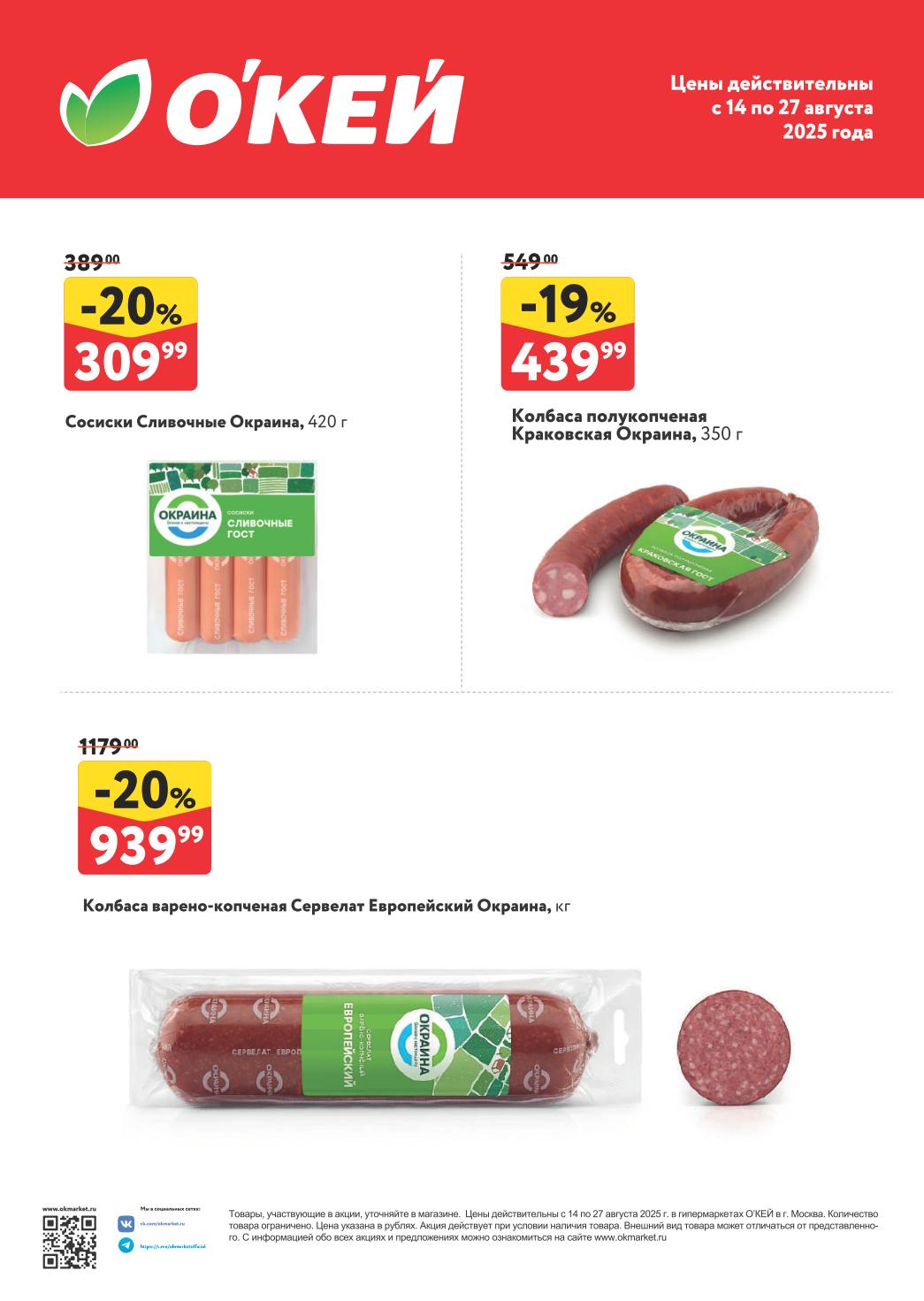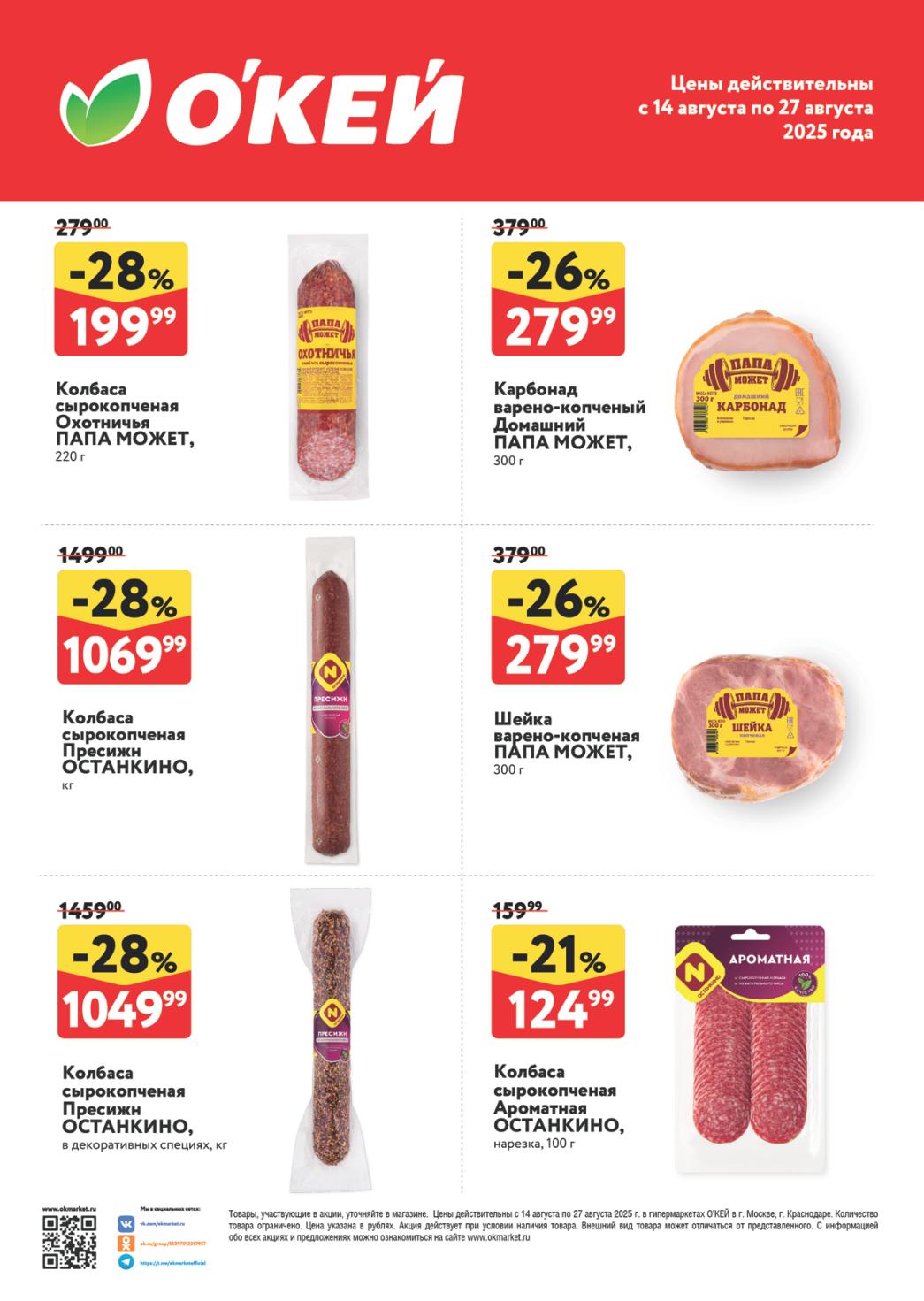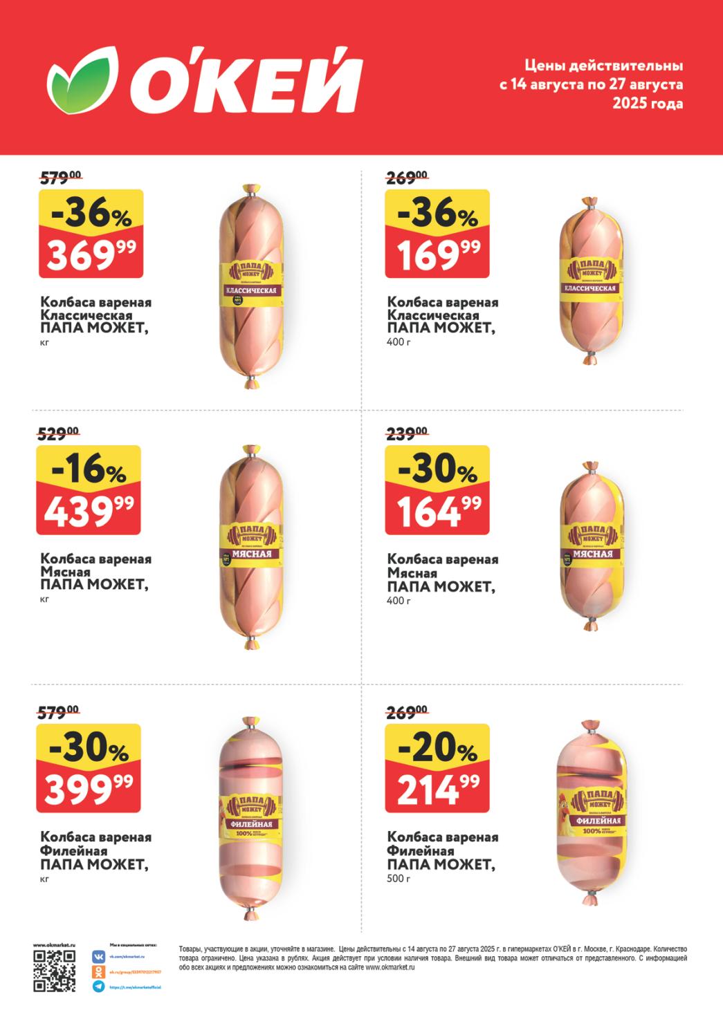 Окей акции с 14 августа — 27 августа 2025. Каталог Окраина, папа может, останкино