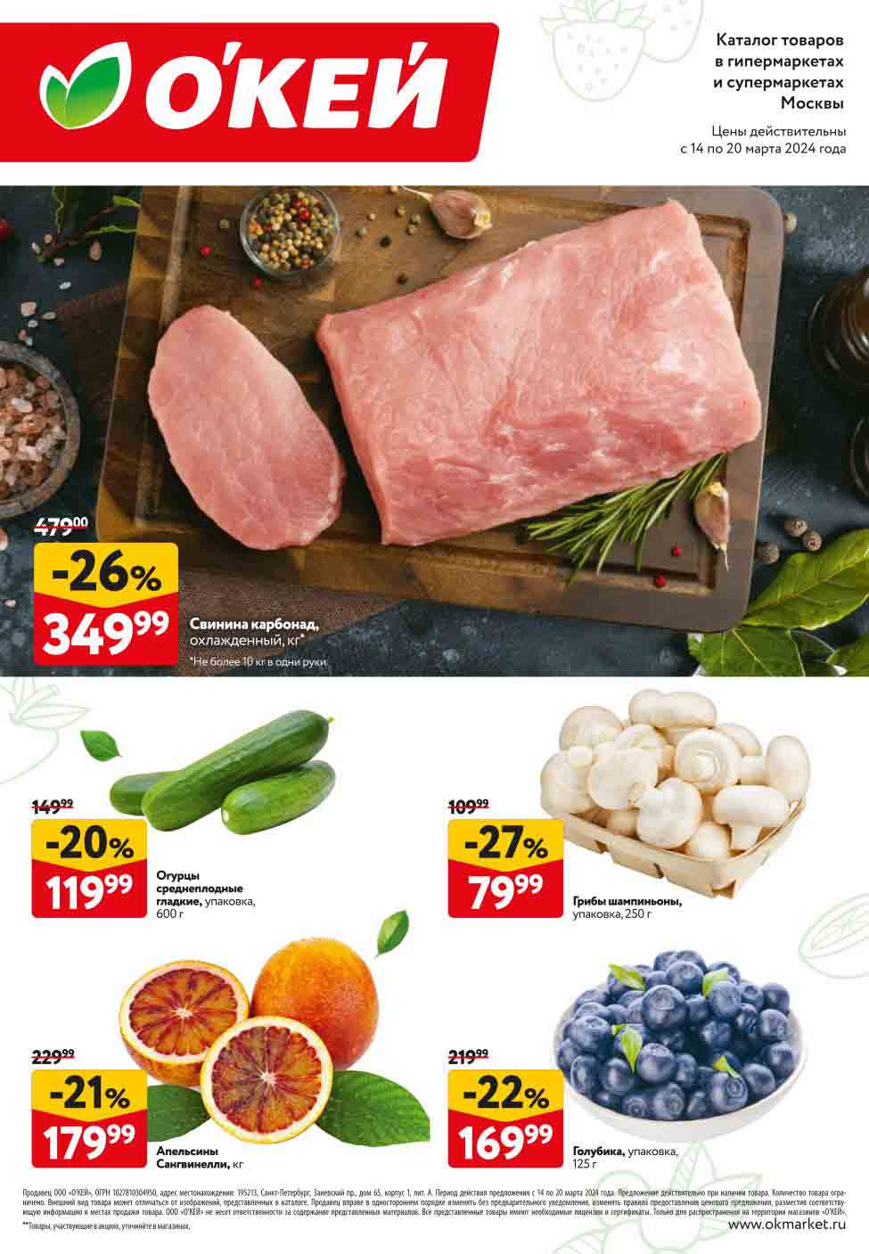 На страницах каталога Окей вы найдете все свои любимые продукты, которые сейчас предлагаются в супермаркете. Не пропустите последние специальные предложения и сэкономьте на покупках. Предложение действительно при наличии товара на прилавках. Каталог Окей обновляется каждые две недели, в нем представлены большое количество товаров с привлекательными скидками. Цены по акции Окей действуют в городах: Москва, Путилково, Московский, Отрадное, Лобня, Мытищи, Люберцы, Электросталь, Ногинск, Клин, Сергиев Пасад, Воскресенск и многих других населенных пунктах Московского региона.