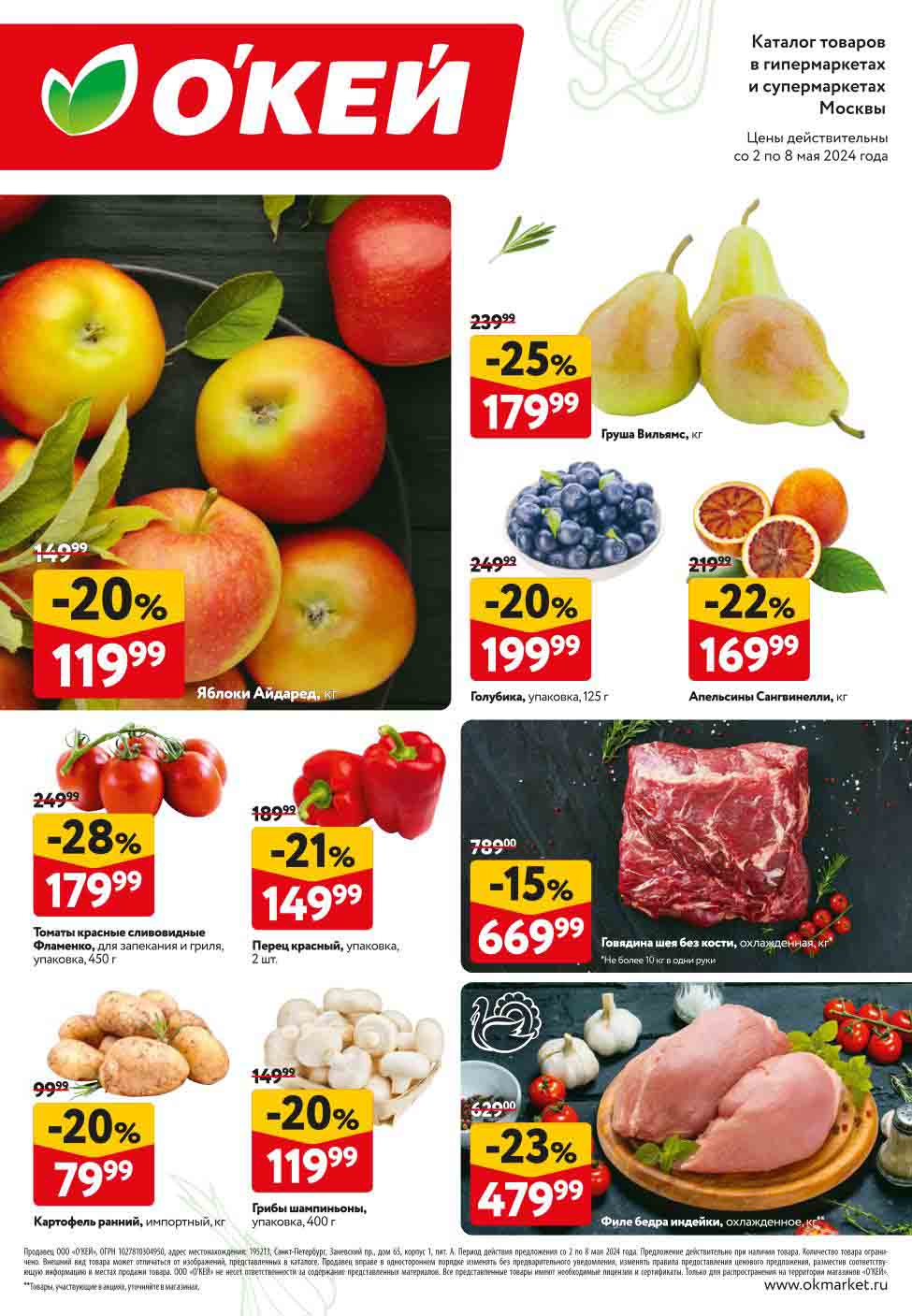На страницах каталога Окей вы найдете все свои любимые продукты, которые сейчас предлагаются в супермаркете. Не пропустите последние специальные предложения и сэкономьте на покупках. Предложение действительно при наличии товара на прилавках. Каталог Окей обновляется каждые две недели, в нем представлены большое количество товаров с привлекательными скидками. Цены по акции Окей действуют в городах: Москва, Путилково, Московский, Отрадное, Лобня, Мытищи, Люберцы, Электросталь, Ногинск, Клин, Сергиев Пасад, Воскресенск и многих других населенных пунктах Московского региона.