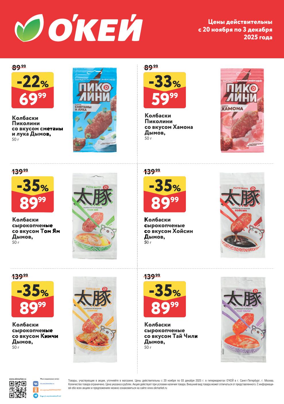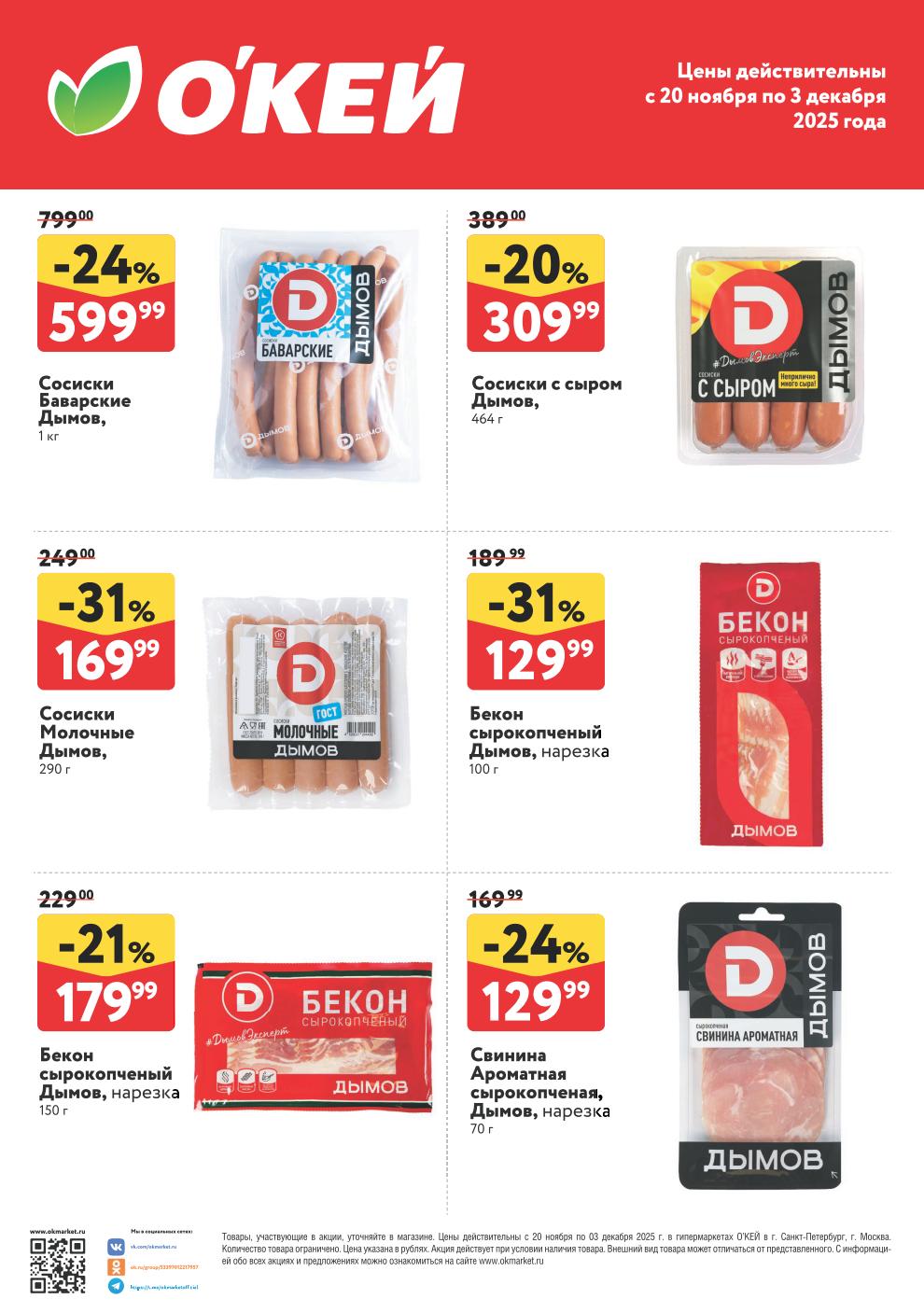 Окей акции с 20 ноября — 3 декабря 2025. Каталог брендов Дымов и Окраина