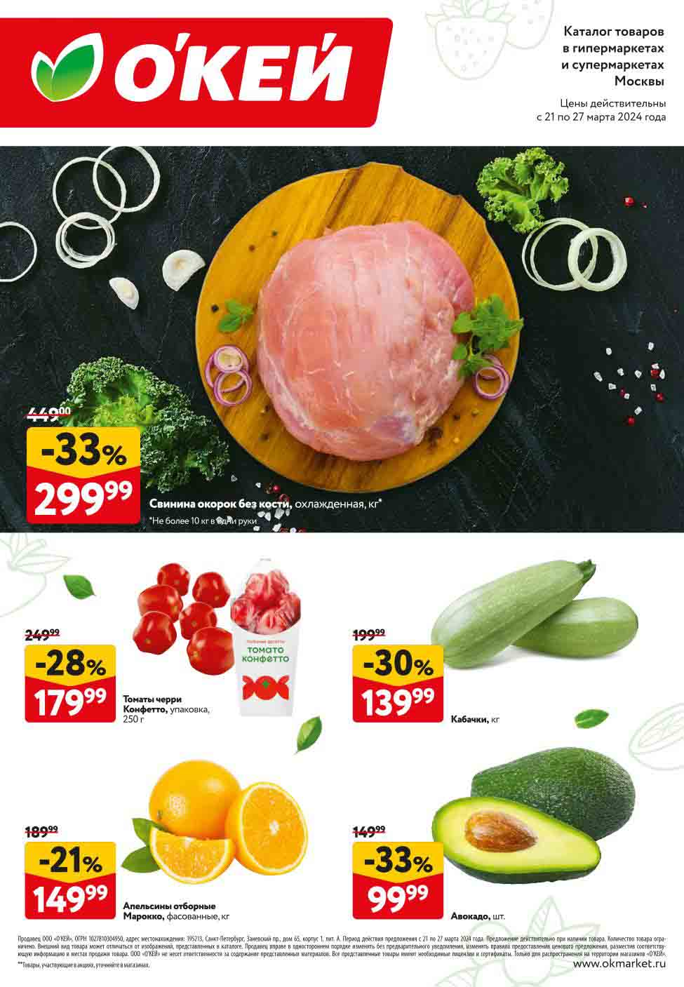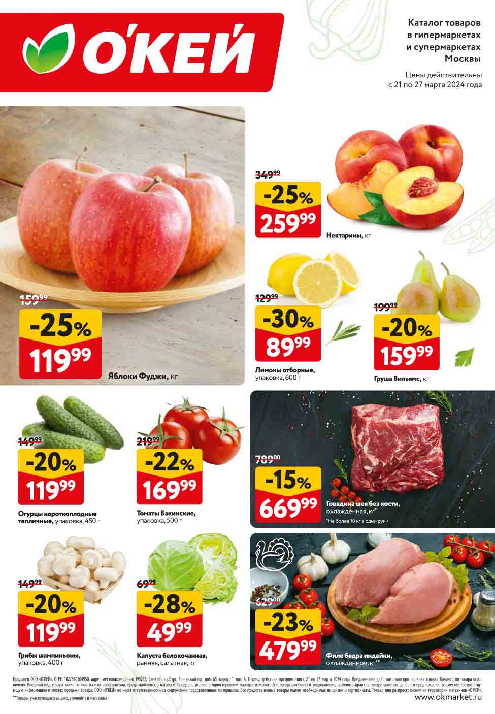 На страницах каталога Окей вы найдете все свои любимые продукты, которые сейчас предлагаются в супермаркете. Не пропустите последние специальные предложения и сэкономьте на покупках. Предложение действительно при наличии товара на прилавках. Каталог Окей обновляется каждые две недели, в нем представлены большое количество товаров с привлекательными скидками. Цены по акции Окей действуют в городах: Москва, Путилково, Московский, Отрадное, Лобня, Мытищи, Люберцы, Электросталь, Ногинск, Клин, Сергиев Пасад, Воскресенск и многих других населенных пунктах Московского региона.