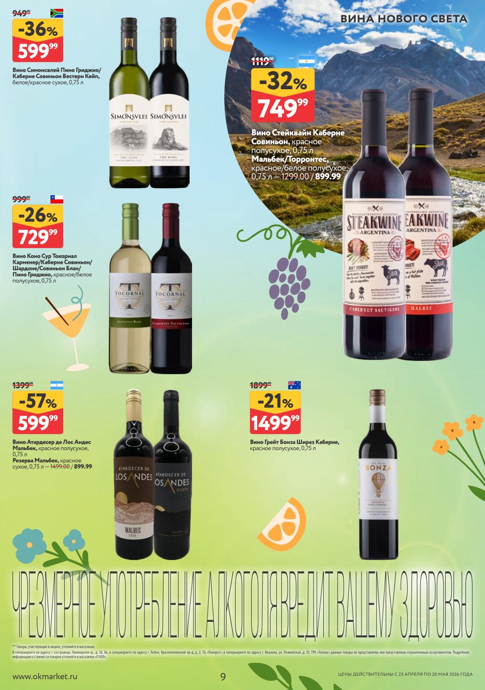 Окей акции с 23 апреля — 20 мая 2026. Каталог Вина разных стран