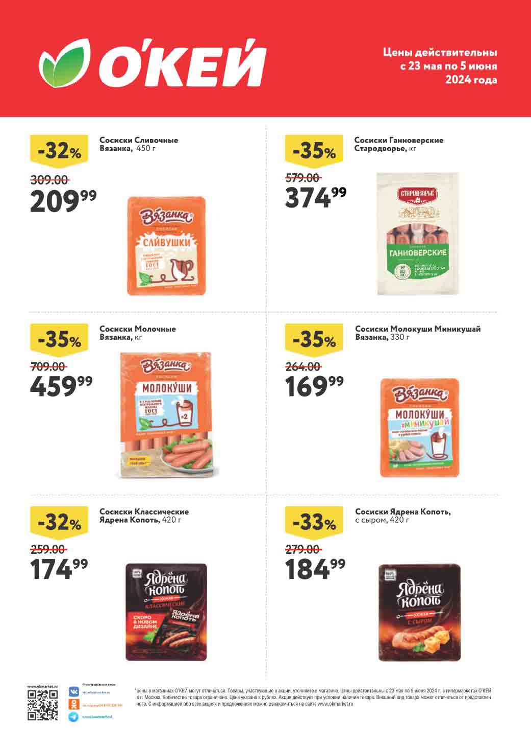 Окей акции с 23 мая — 5 июня 2024. Каталог Колбасные изделия