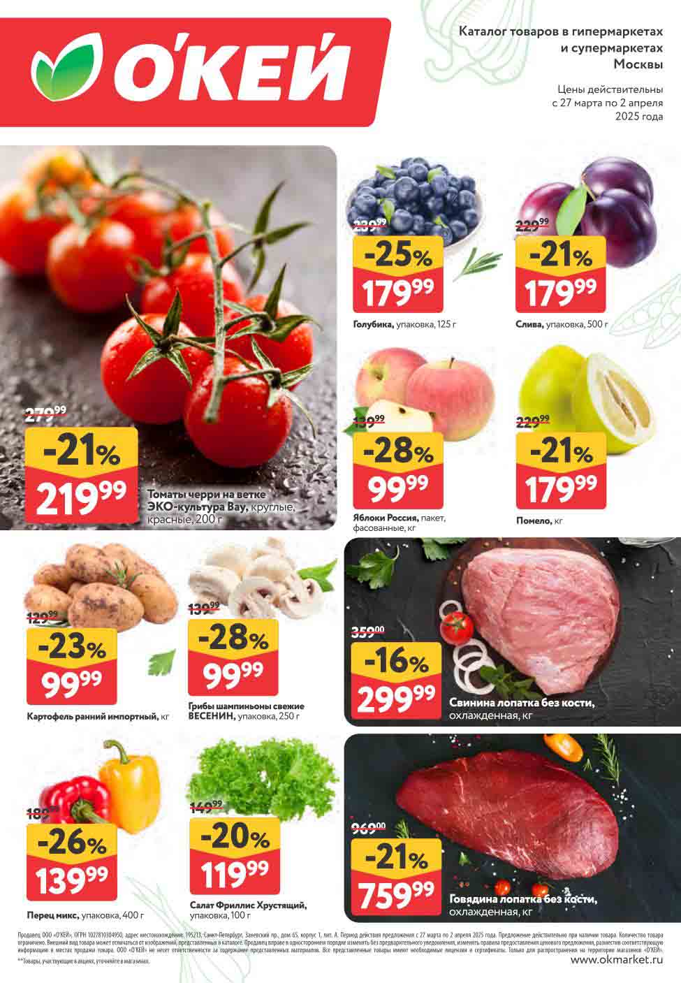 На страницах каталога Окей вы найдете все свои любимые продукты, которые сейчас предлагаются в супермаркете. Не пропустите последние специальные предложения и сэкономьте на покупках. Предложение действительно при наличии товара на прилавках. Каталог Окей обновляется каждые две недели, в нем представлены большое количество товаров с привлекательными скидками. Цены по акции Окей действуют в городах: Москва, Путилково, Московский, Отрадное, Лобня, Мытищи, Люберцы, Электросталь, Ногинск, Клин, Сергиев Пасад, Воскресенск и многих других населенных пунктах Московского региона.
