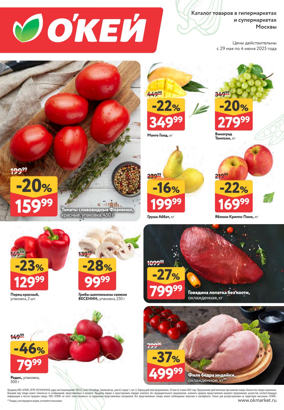На страницах каталога Окей вы найдете все свои любимые продукты, которые сейчас предлагаются в супермаркете. Не пропустите последние специальные предложения и сэкономьте на покупках. Предложение действительно при наличии товара на прилавках. Каталог Окей обновляется каждые две недели, в нем представлены большое количество товаров с привлекательными скидками. Цены по акции Окей действуют в городах: Москва, Путилково, Московский, Отрадное, Лобня, Мытищи, Люберцы, Электросталь, Ногинск, Клин, Сергиев Пасад, Воскресенск и многих других населенных пунктах Московского региона.