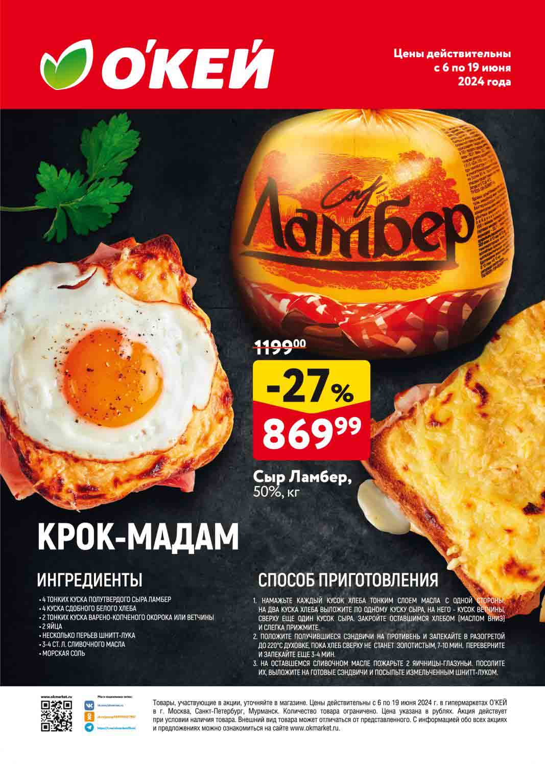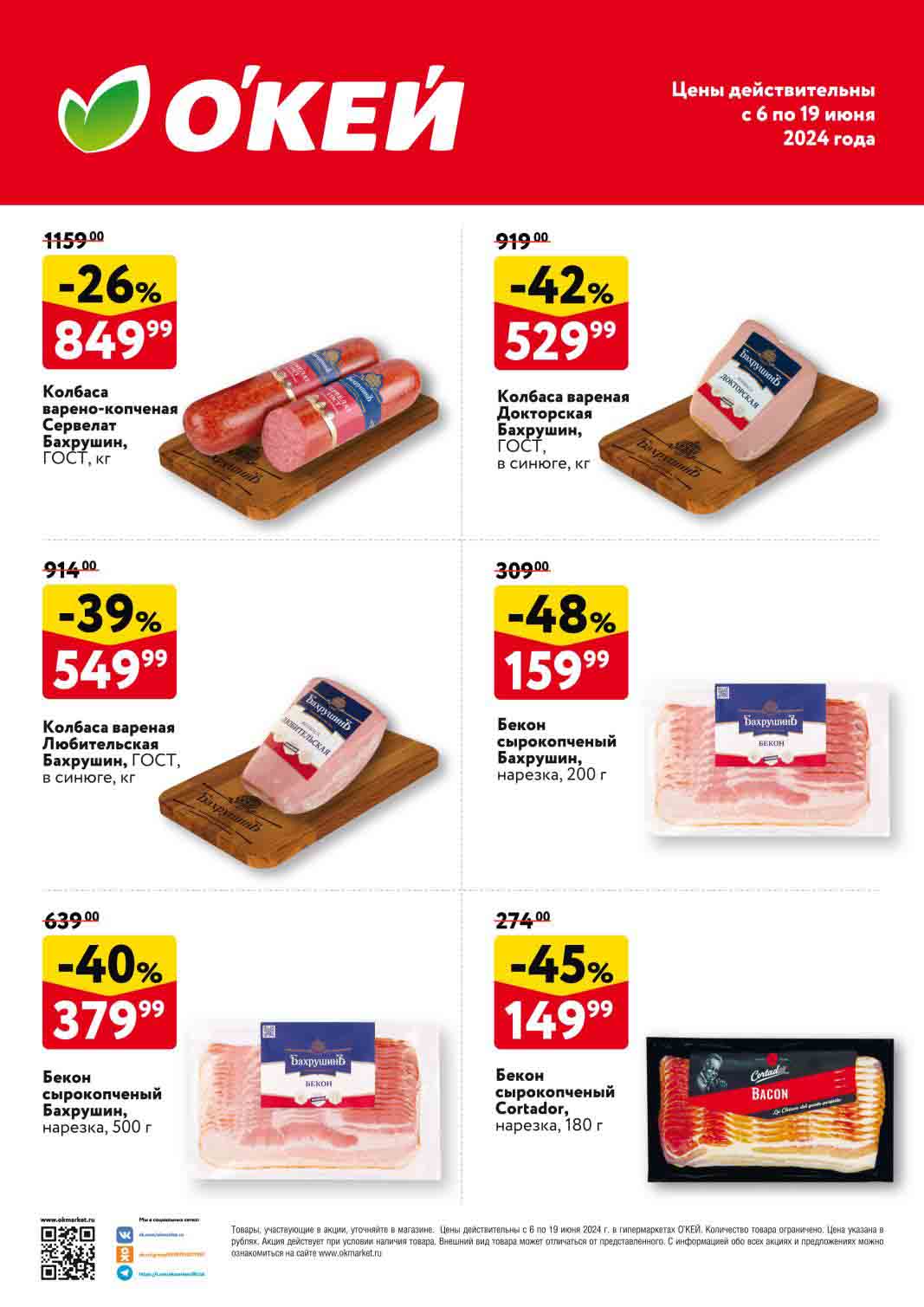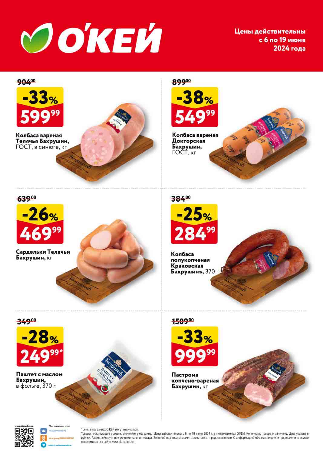 На страницах каталога Окей вы найдете все свои любимые продукты, которые сейчас предлагаются в супермаркете. Не пропустите последние специальные предложения и сэкономьте на покупках. Предложение действительно при наличии товара на прилавках. Каталог Окей обновляется каждые две недели, в нем представлены большое количество товаров с привлекательными скидками. Цены по акции Окей действуют в городах: Москва, Путилково, Московский, Отрадное, Лобня, Мытищи, Люберцы, Электросталь, Ногинск, Клин, Сергиев Пасад, Воскресенск и многих других населенных пунктах Московского региона.