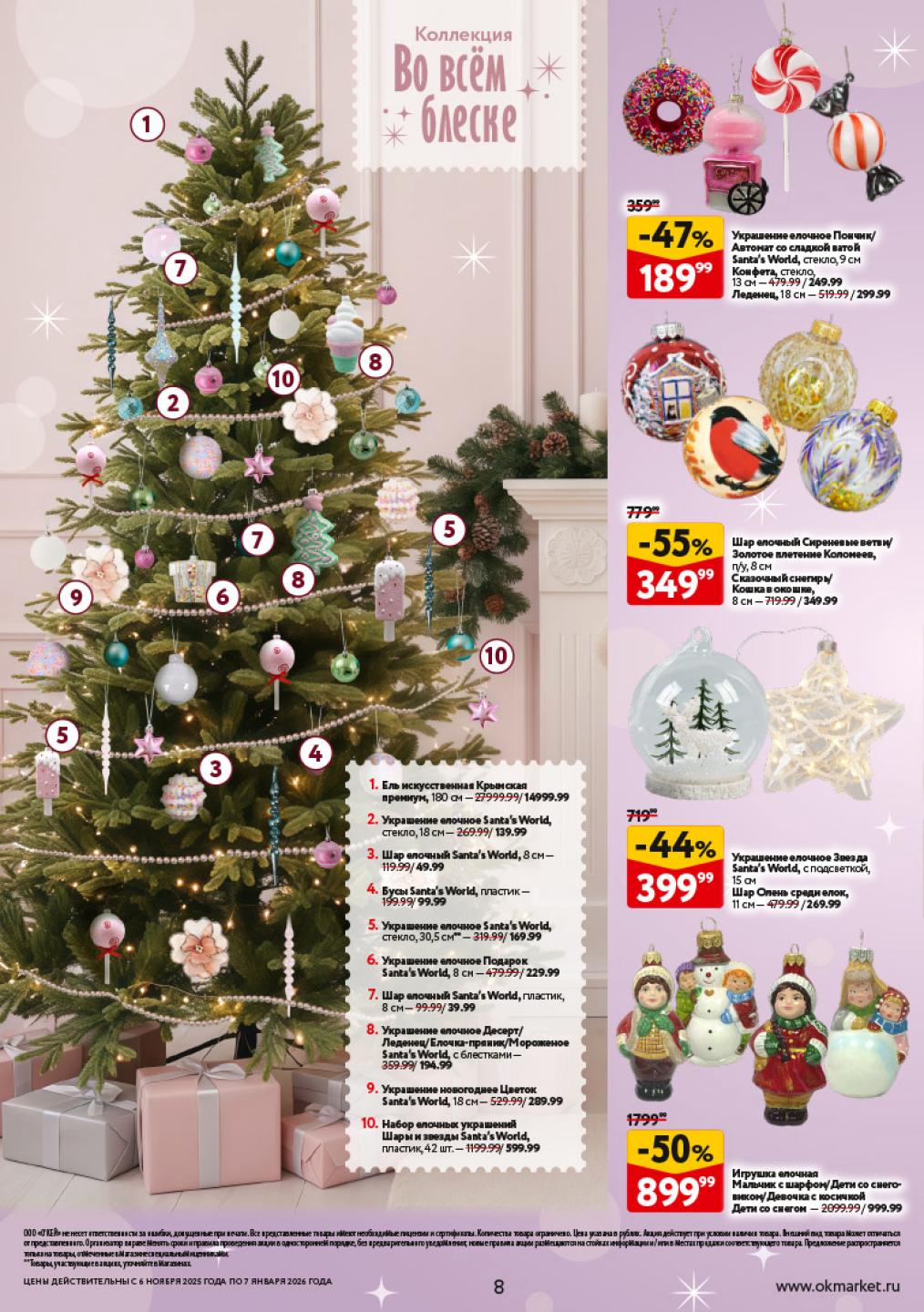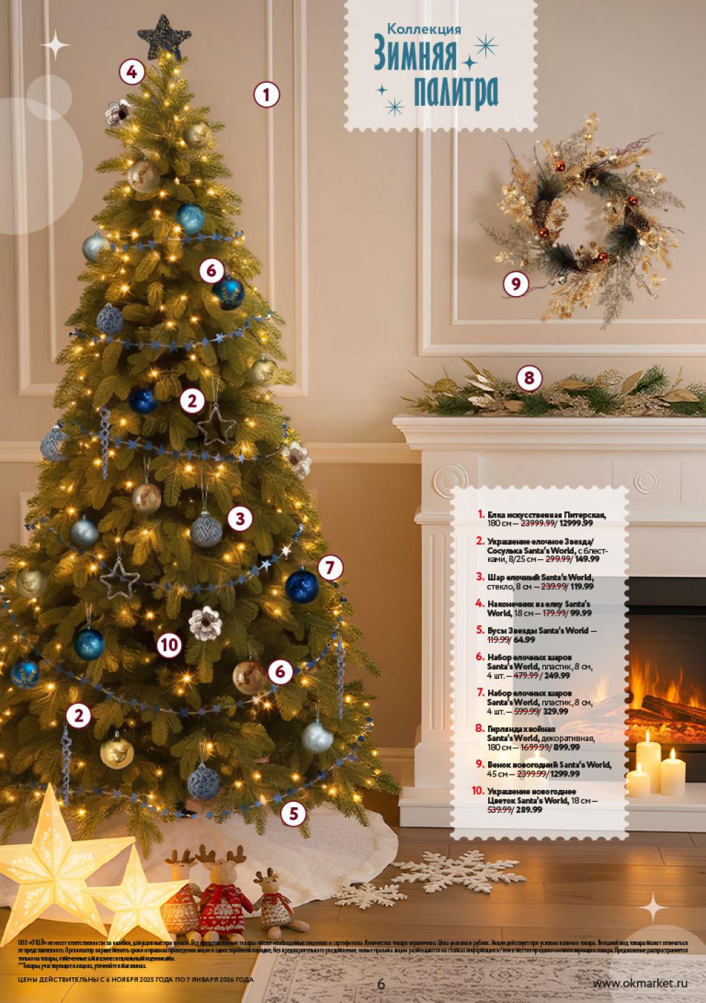 Окей акции с 6 ноября — 7 января 2026. Каталог новогодних украшений