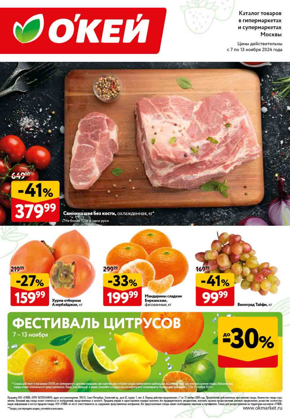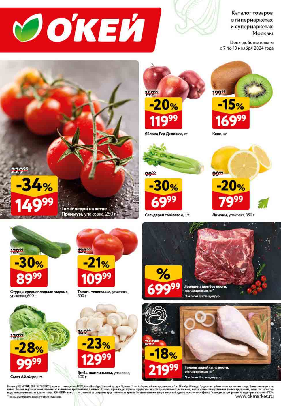На страницах каталога Окей вы найдете все свои любимые продукты, которые сейчас предлагаются в супермаркете. Не пропустите последние специальные предложения и сэкономьте на покупках. Предложение действительно при наличии товара на прилавках. Каталог Окей обновляется каждые две недели, в нем представлены большое количество товаров с привлекательными скидками. Цены по акции Окей действуют в городах: Москва, Путилково, Московский, Отрадное, Лобня, Мытищи, Люберцы, Электросталь, Ногинск, Клин, Сергиев Пасад, Воскресенск и многих других населенных пунктах Московского региона.