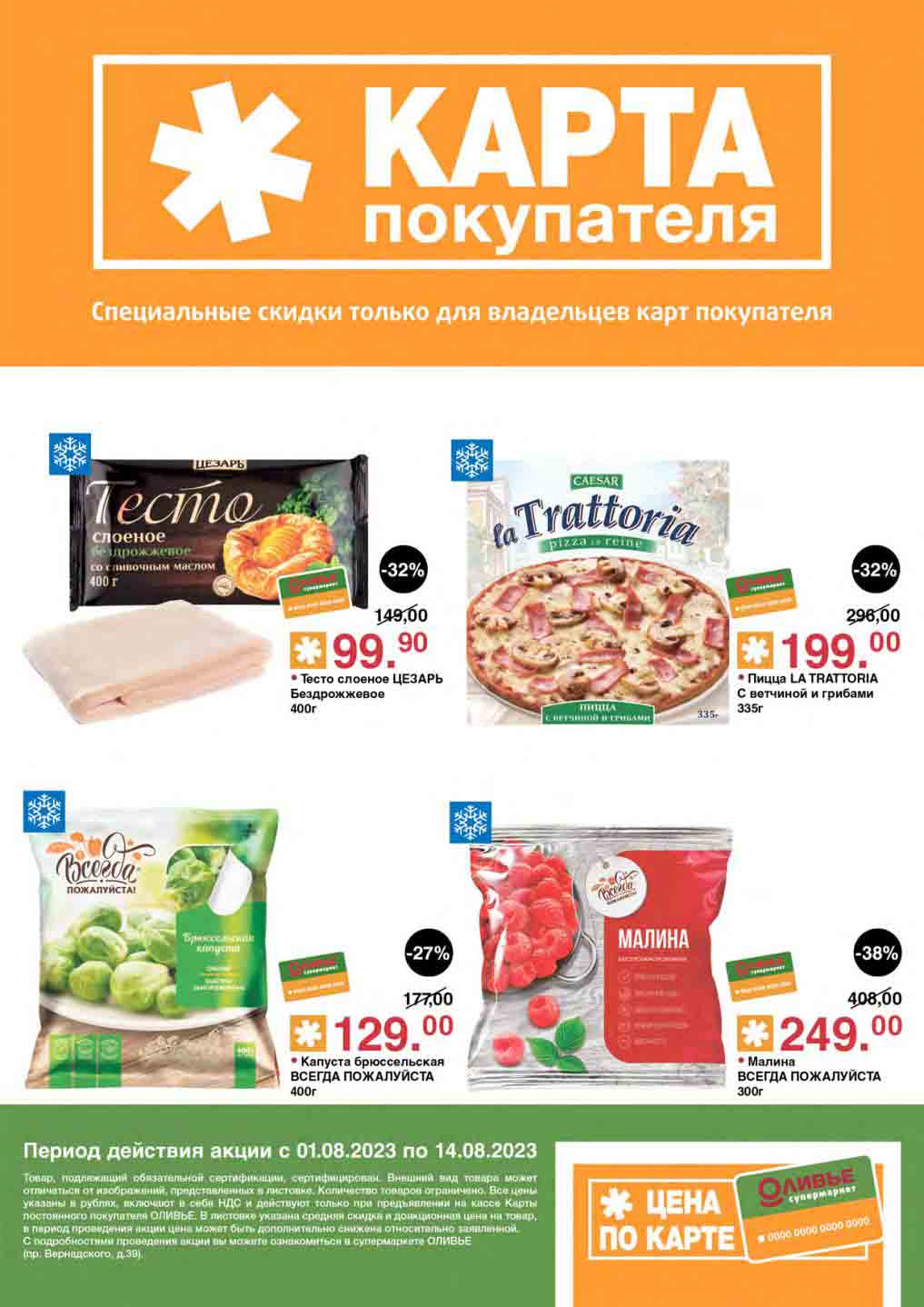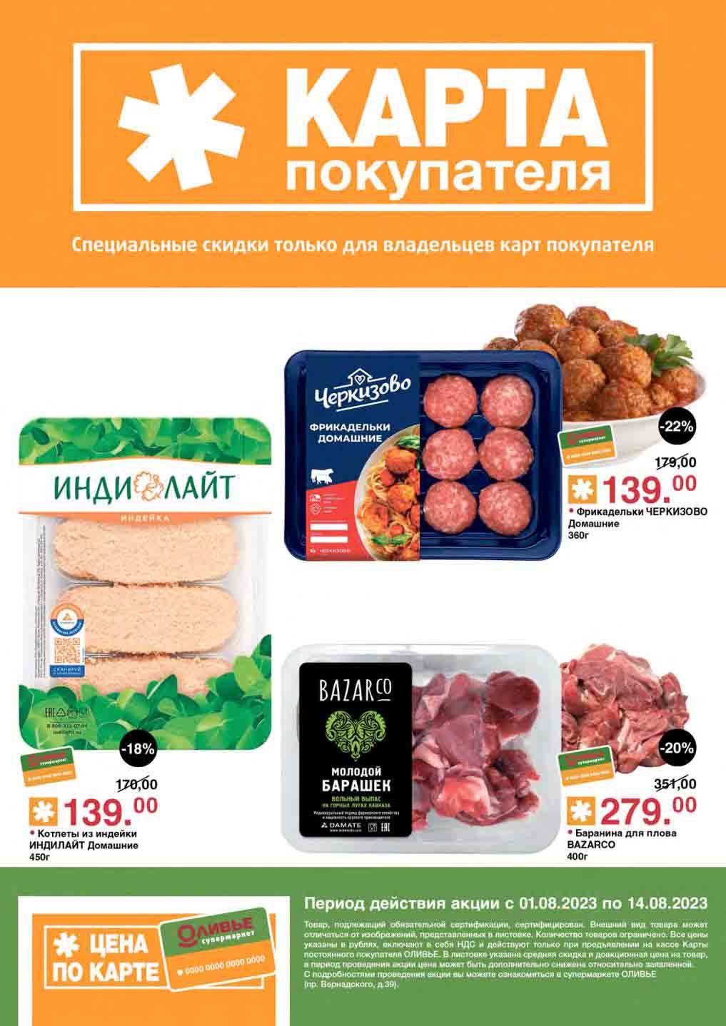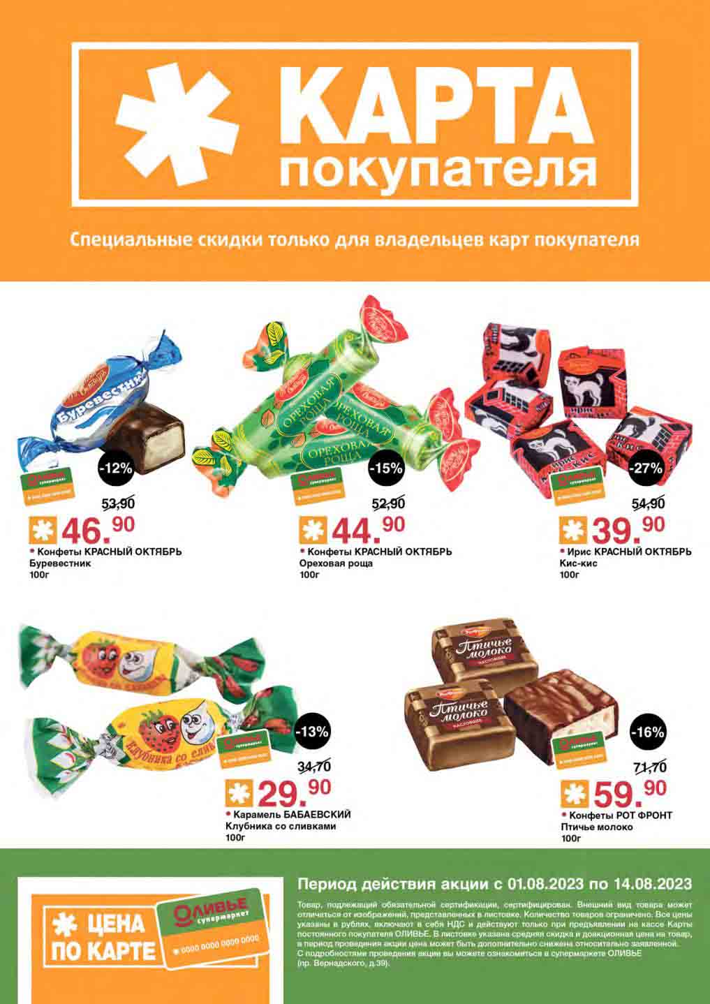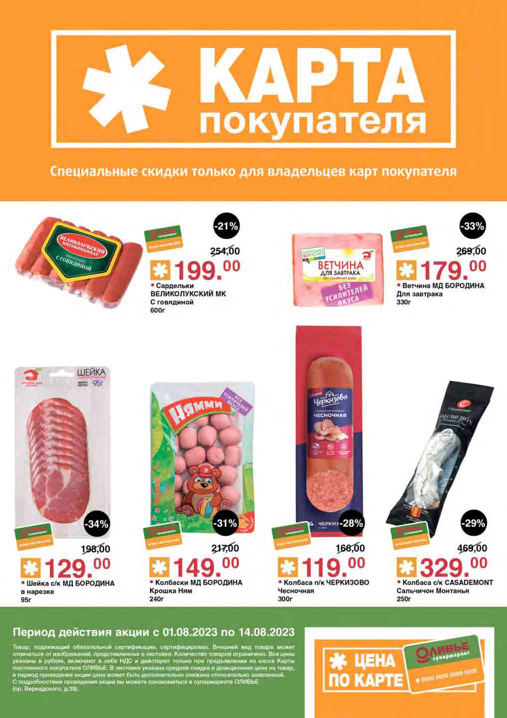 Оливье акции с 1 августа — 14 августа. Скидки по карте покупателя