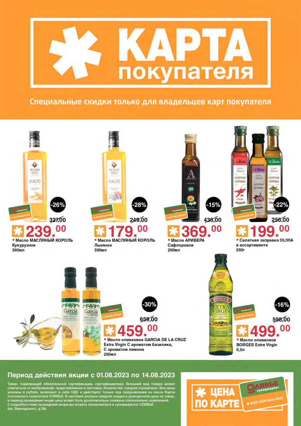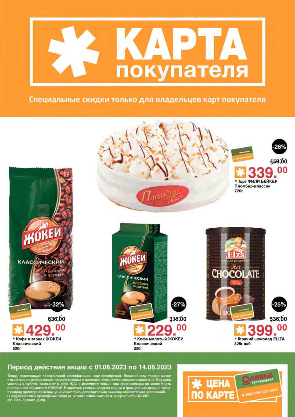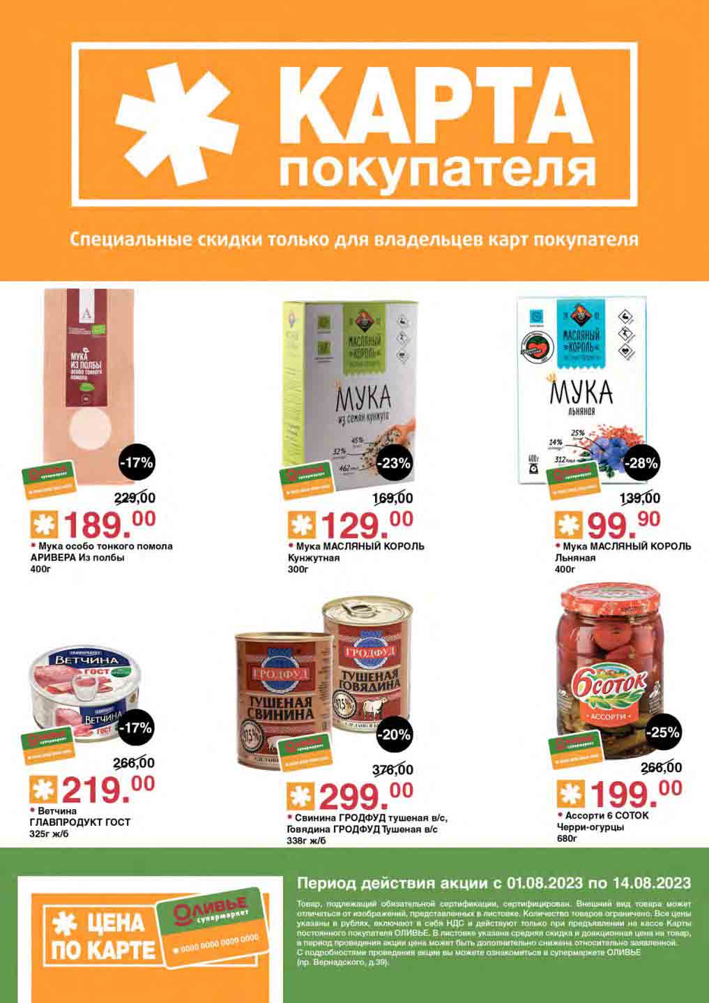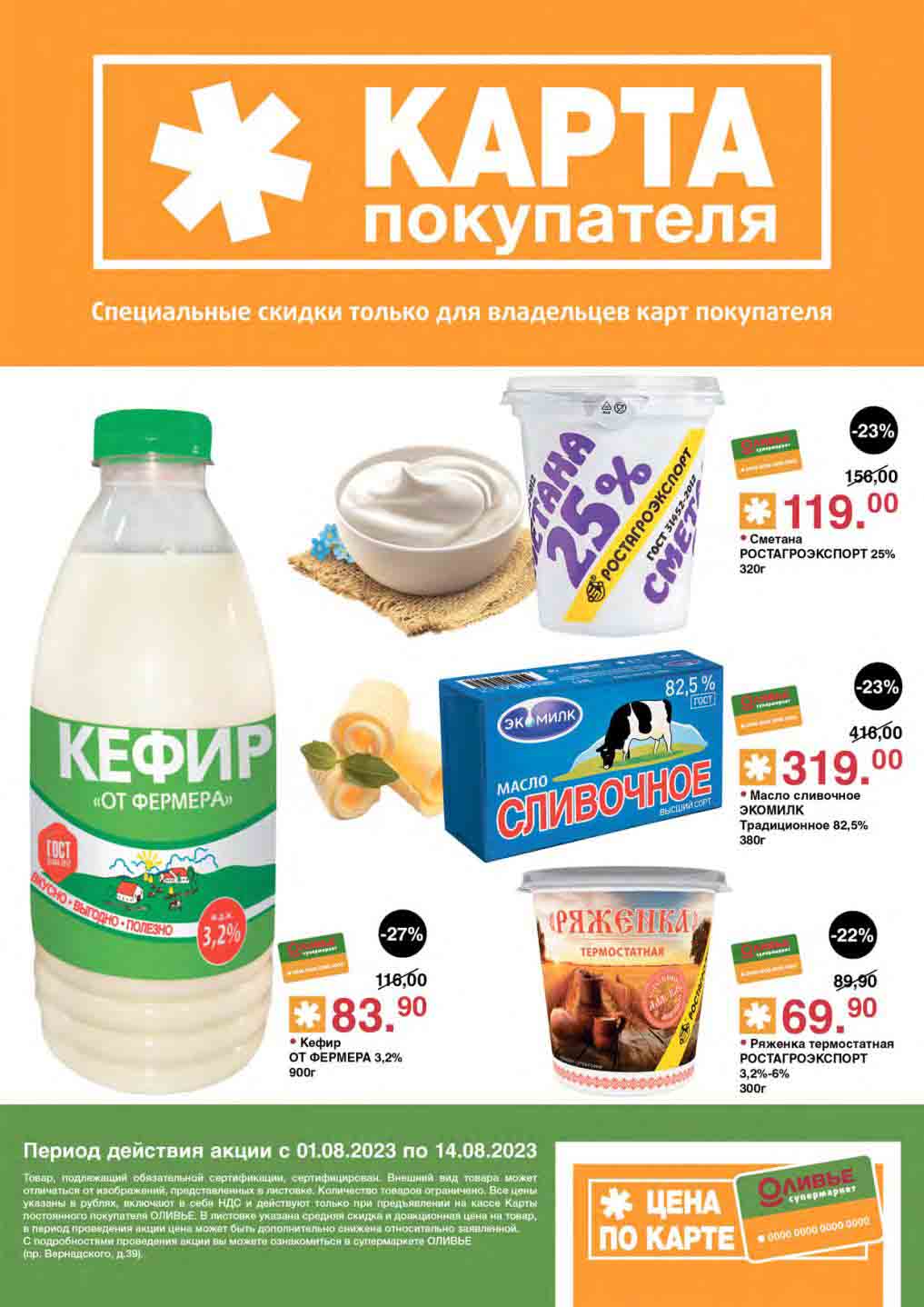 Оливье акции с 1 августа — 14 августа. Скидки по карте покупателя