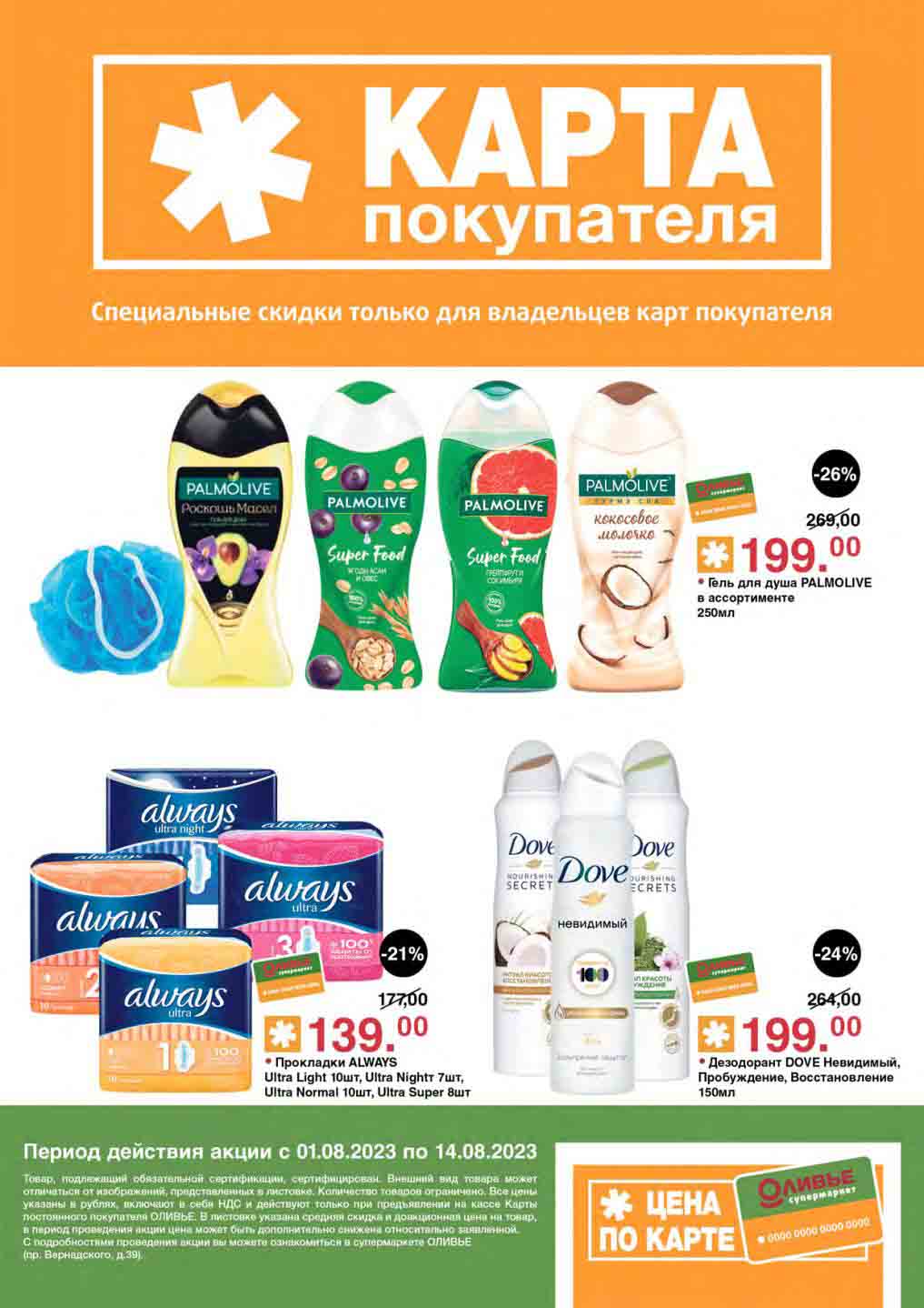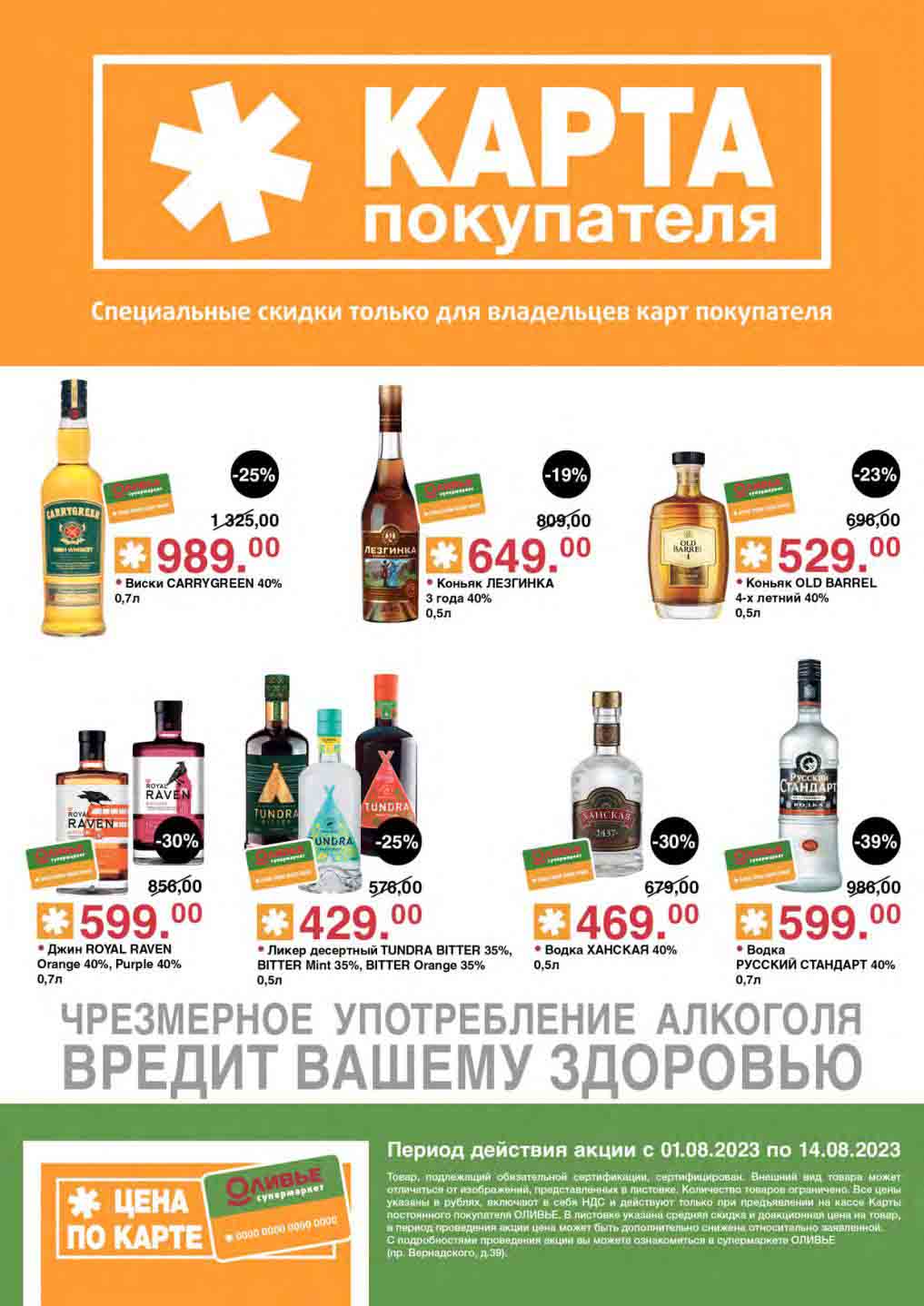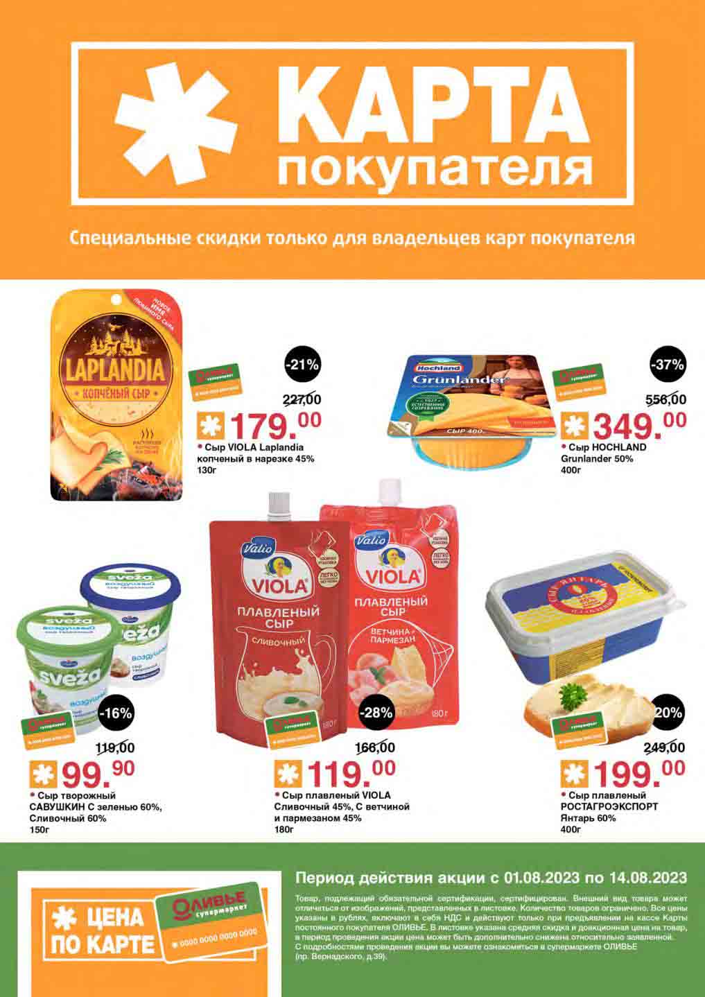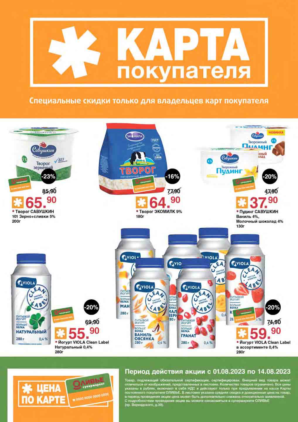 Оливье акции с 1 августа — 14 августа. Скидки по карте покупателя