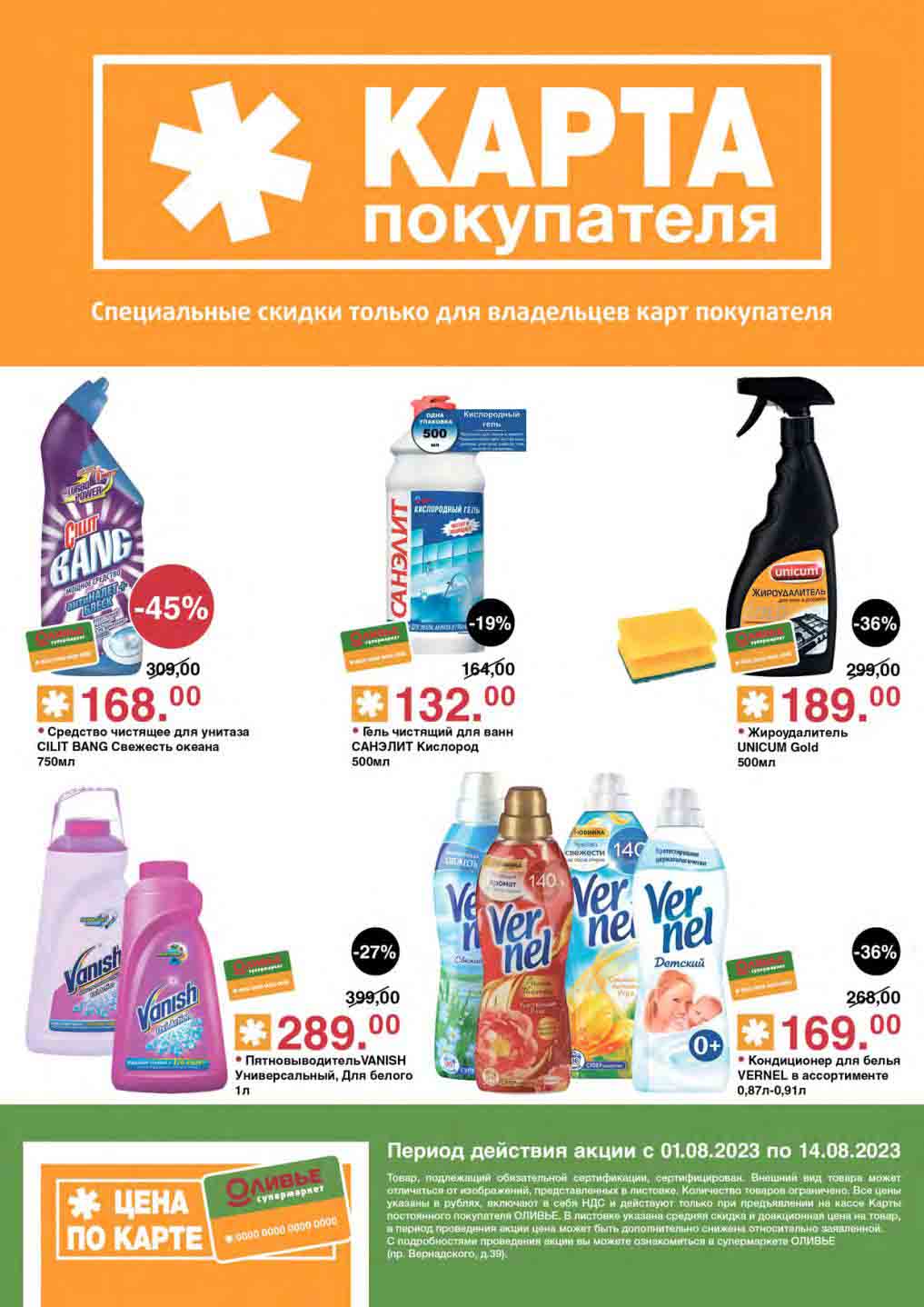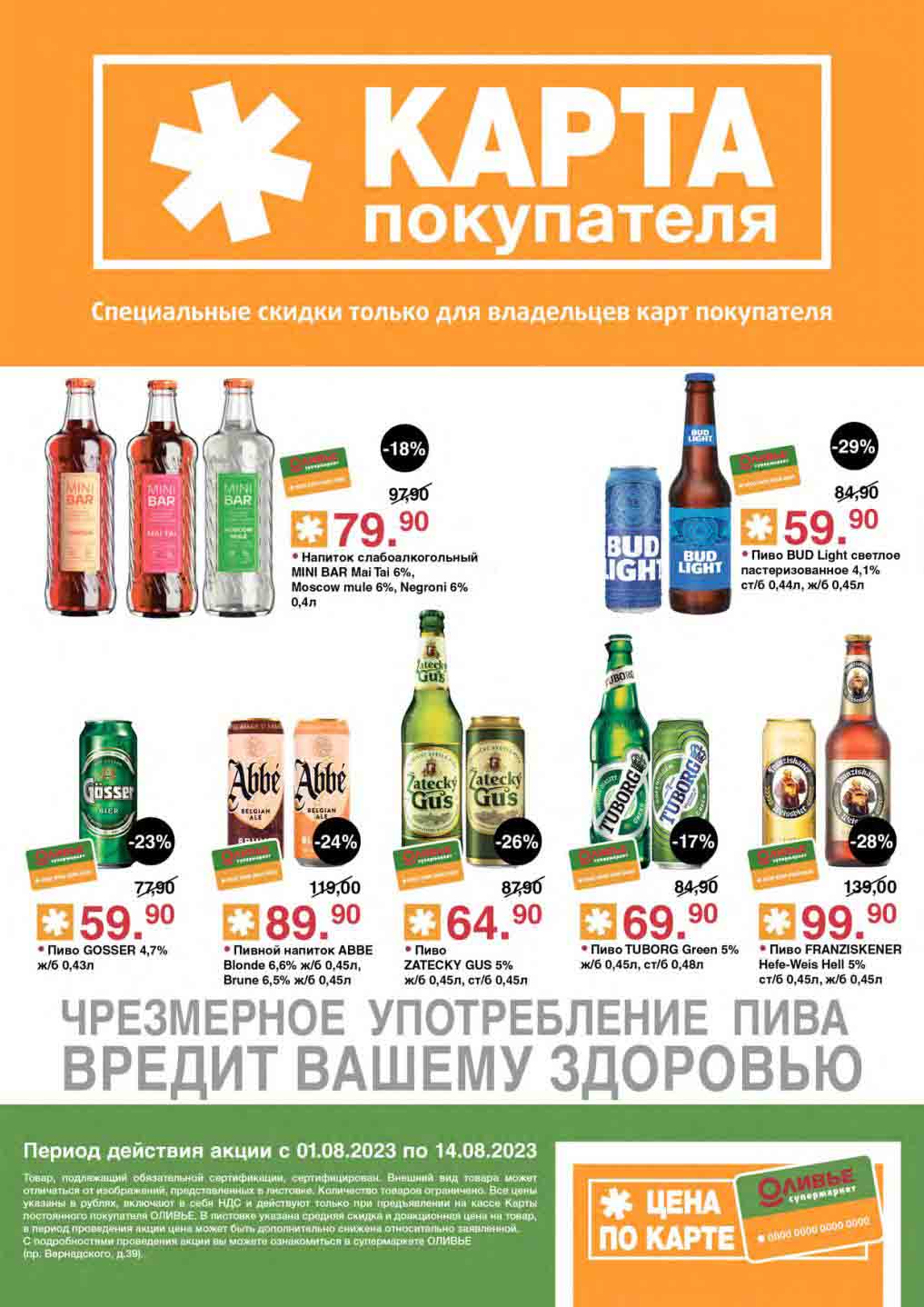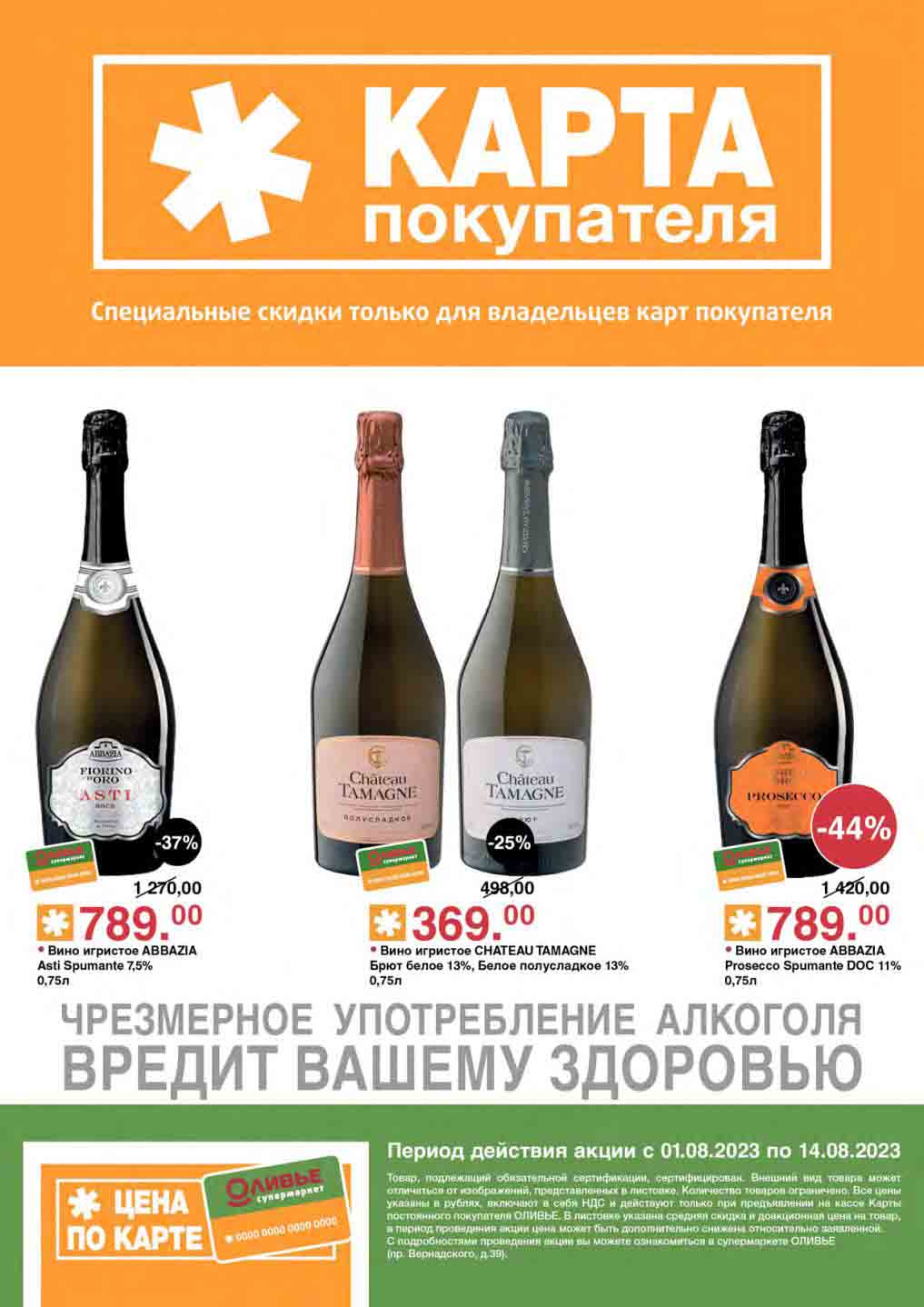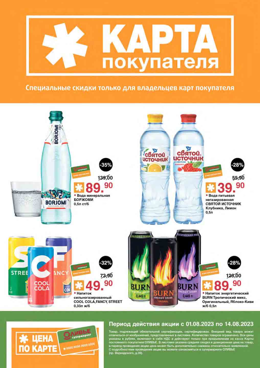 Оливье акции с 1 августа — 14 августа. Скидки по карте покупателя