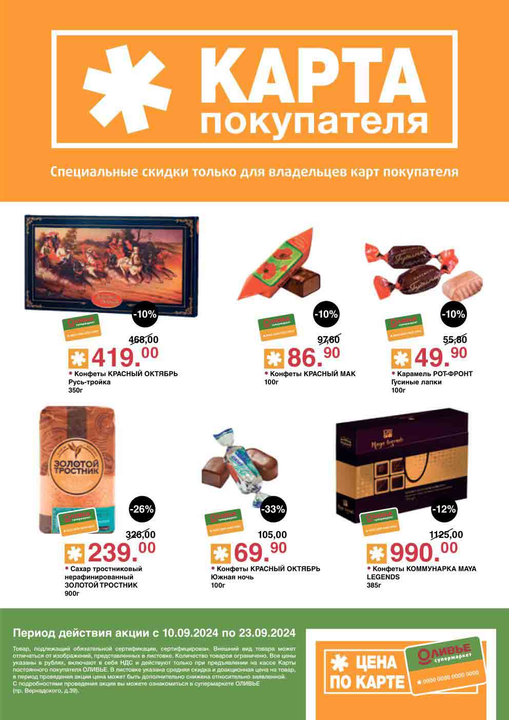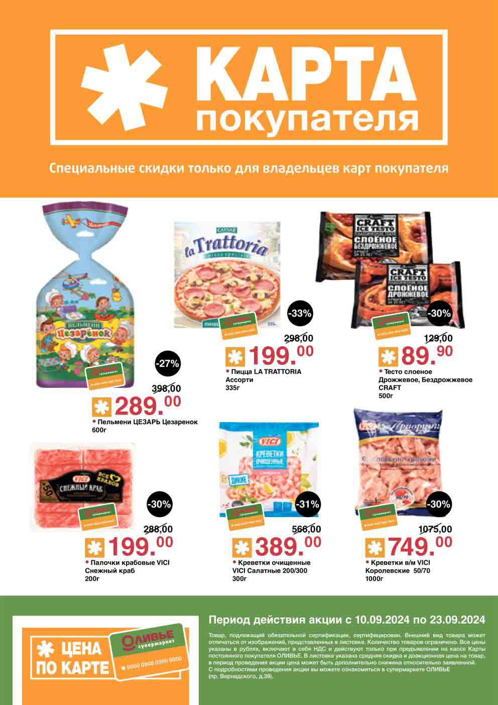 Оливье акции с 10 сентября — 23 сентября 2024. Скидки по карте покупателя