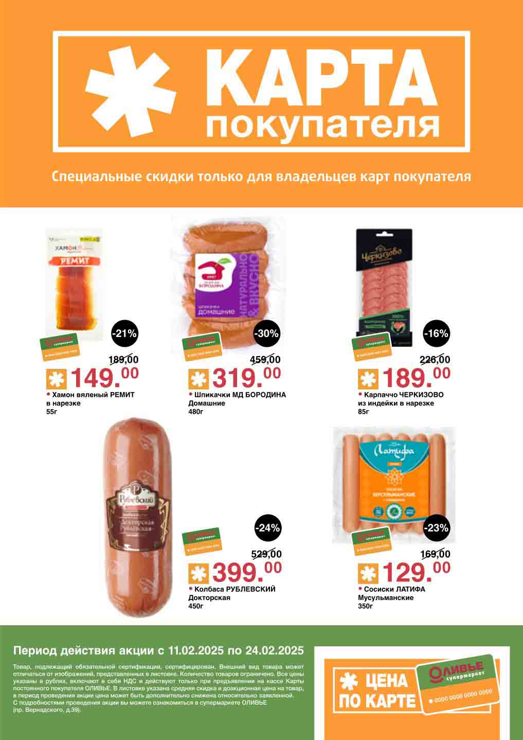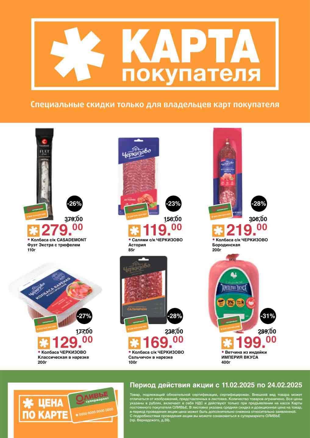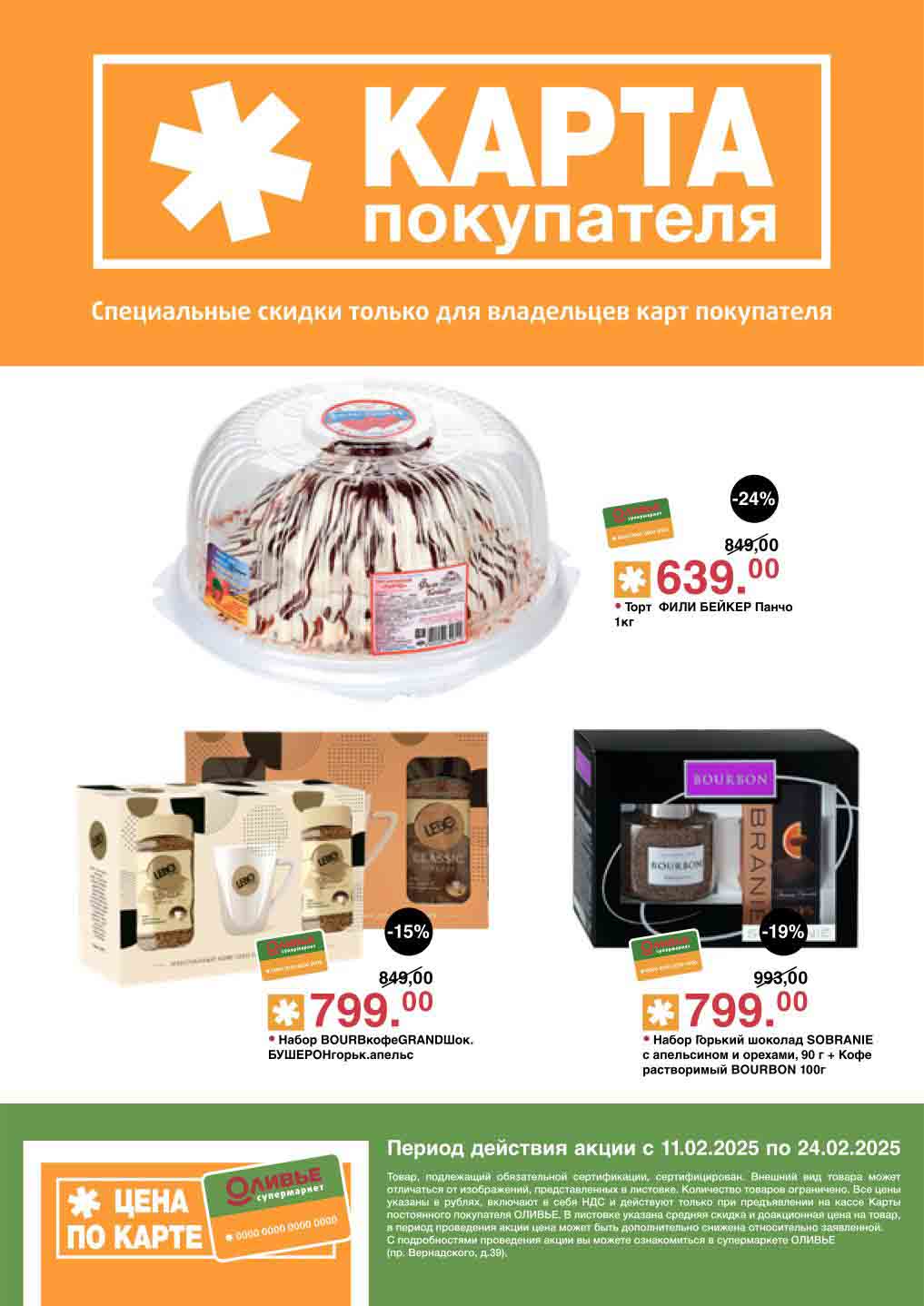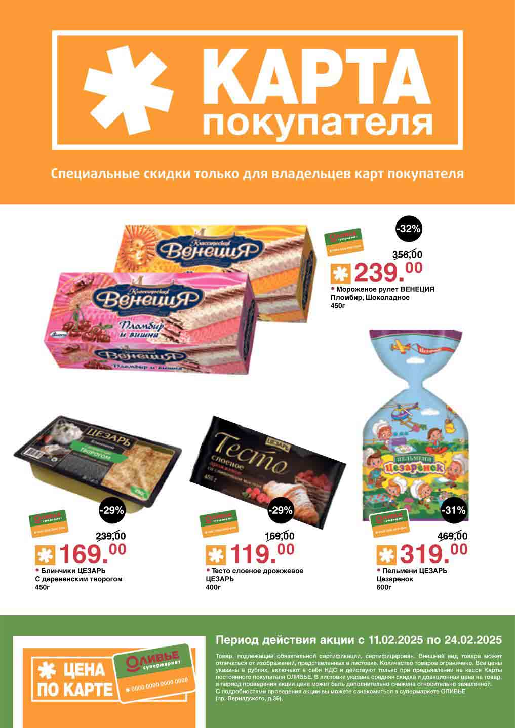 Оливье акции с 11 февраля — 24 февраля 2025. Скидки по карте покупателя
