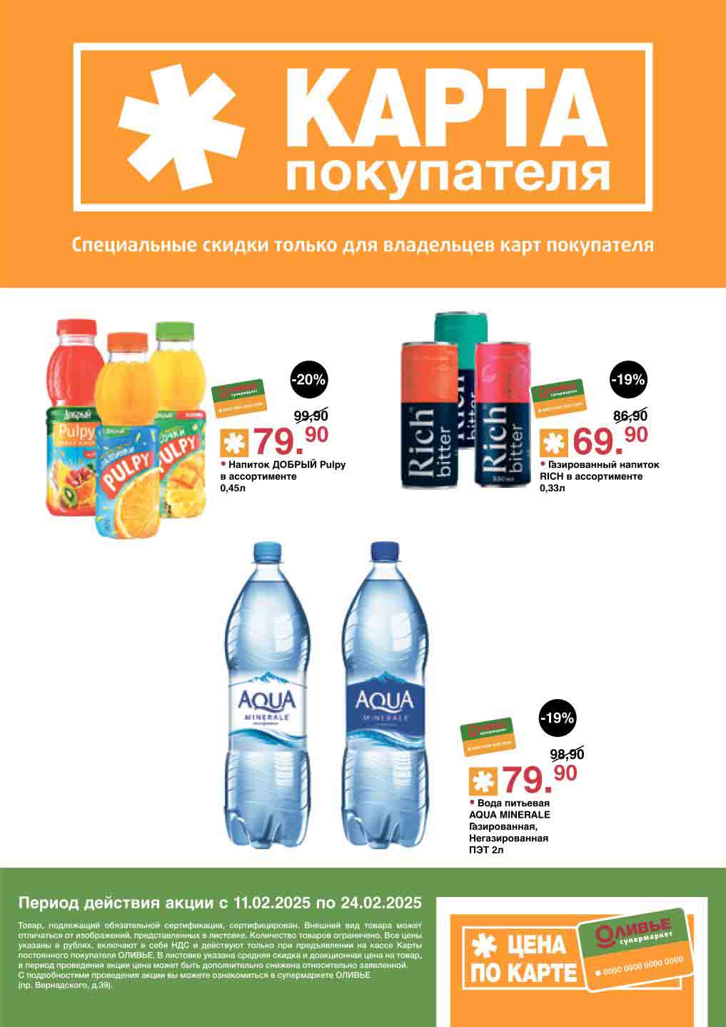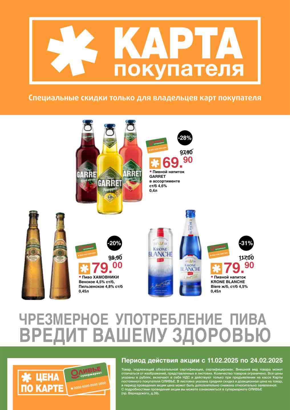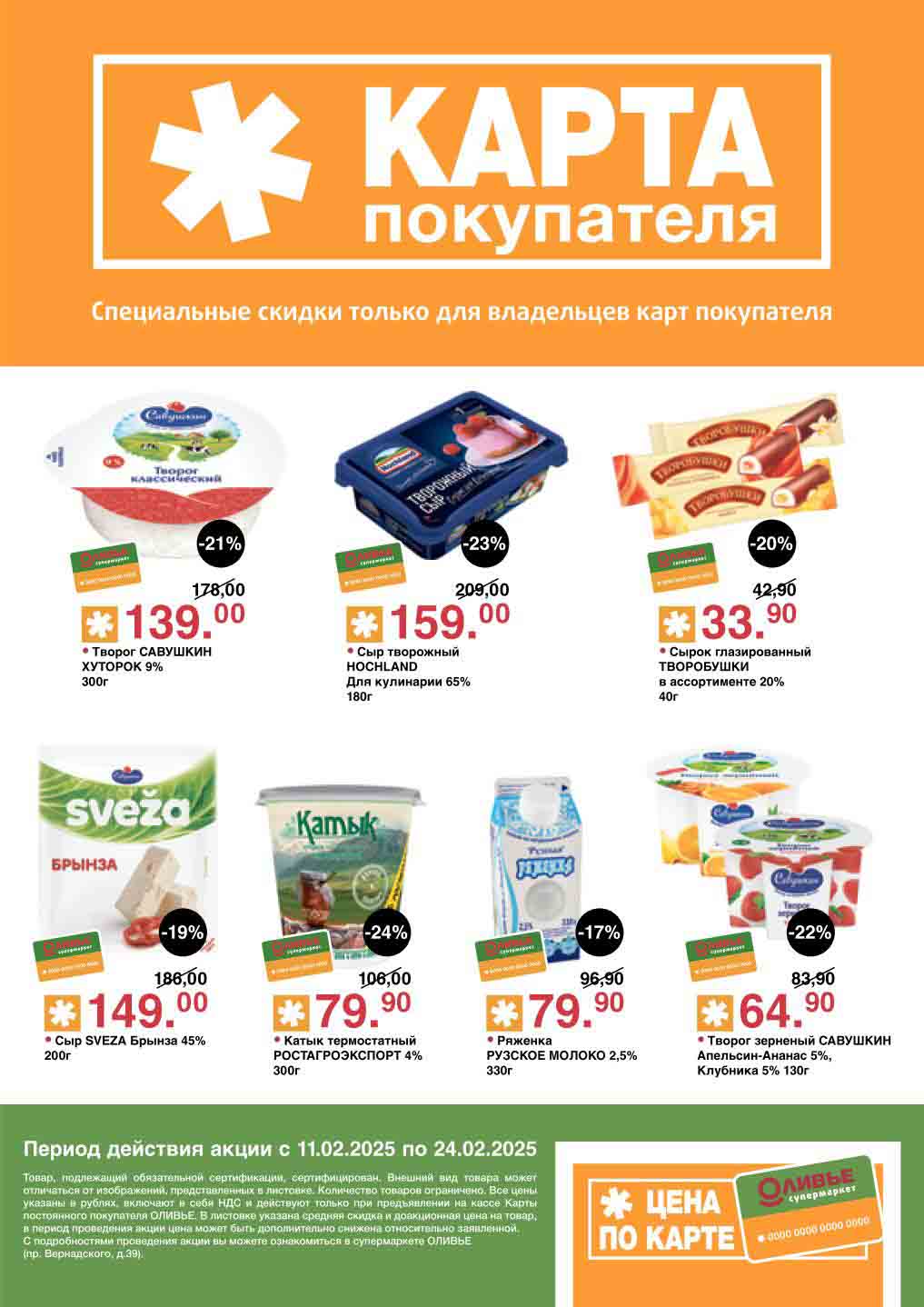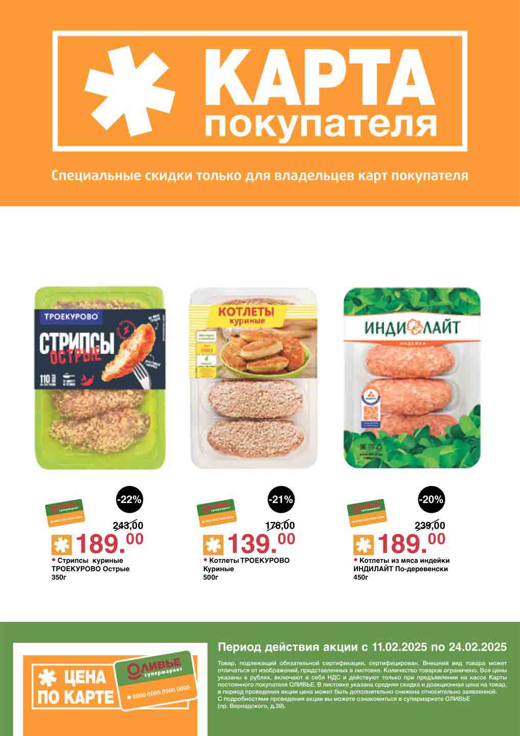 Оливье акции с 11 февраля — 24 февраля 2025. Скидки по карте покупателя