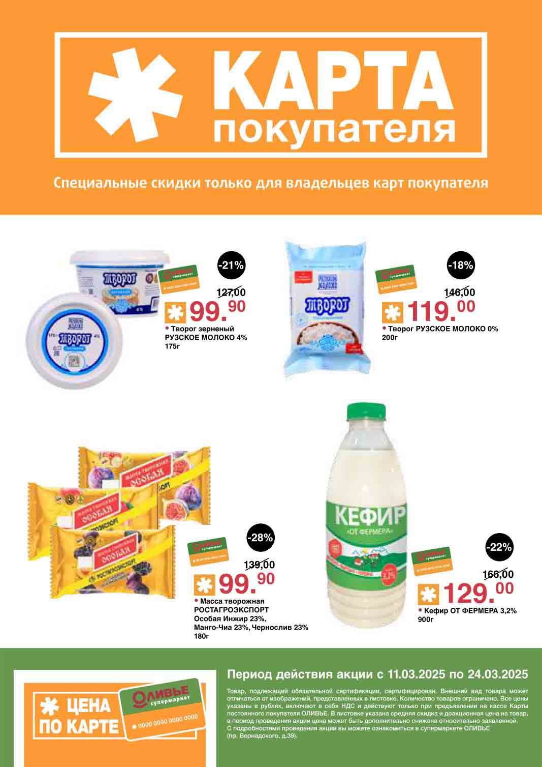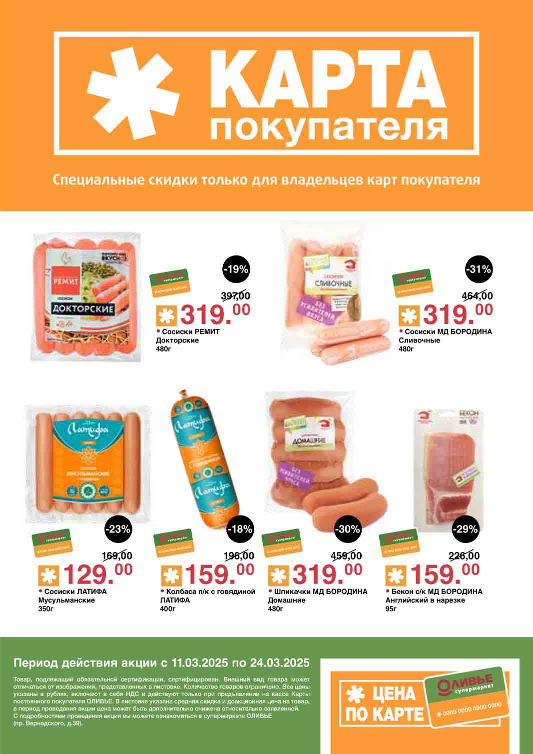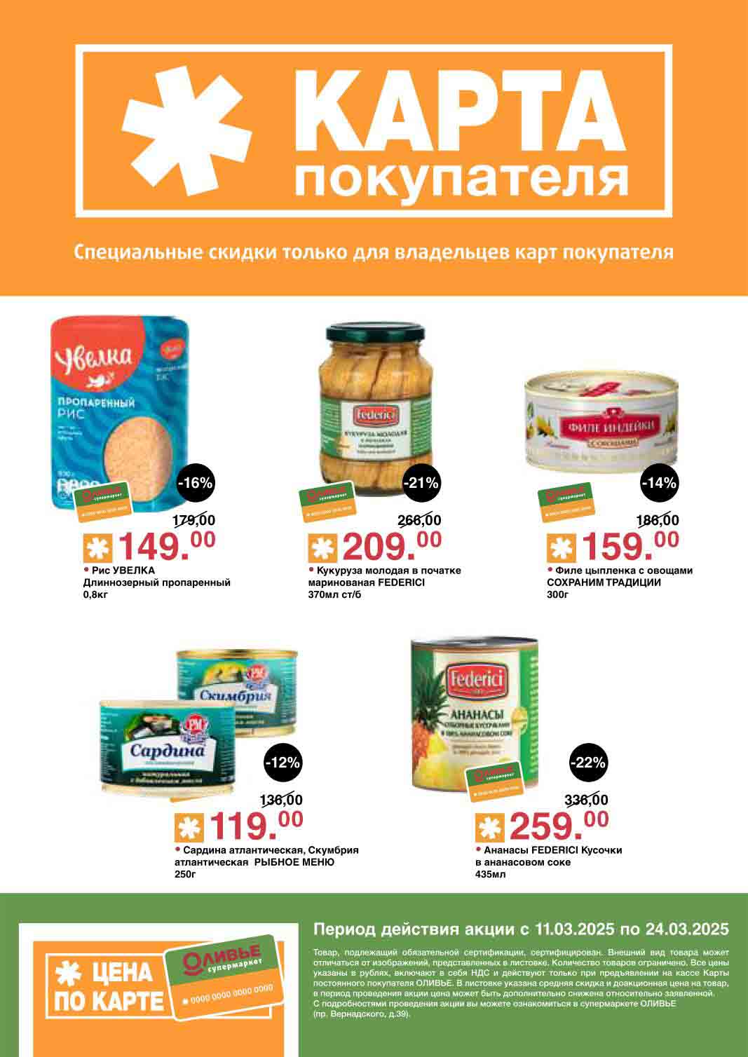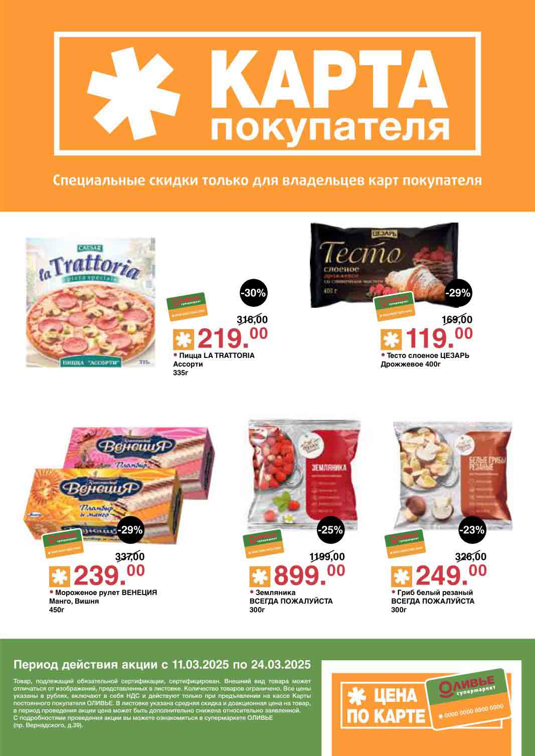 Оливье акции с 11 марта — 24 марта 2025. Скидки по карте покупателя
