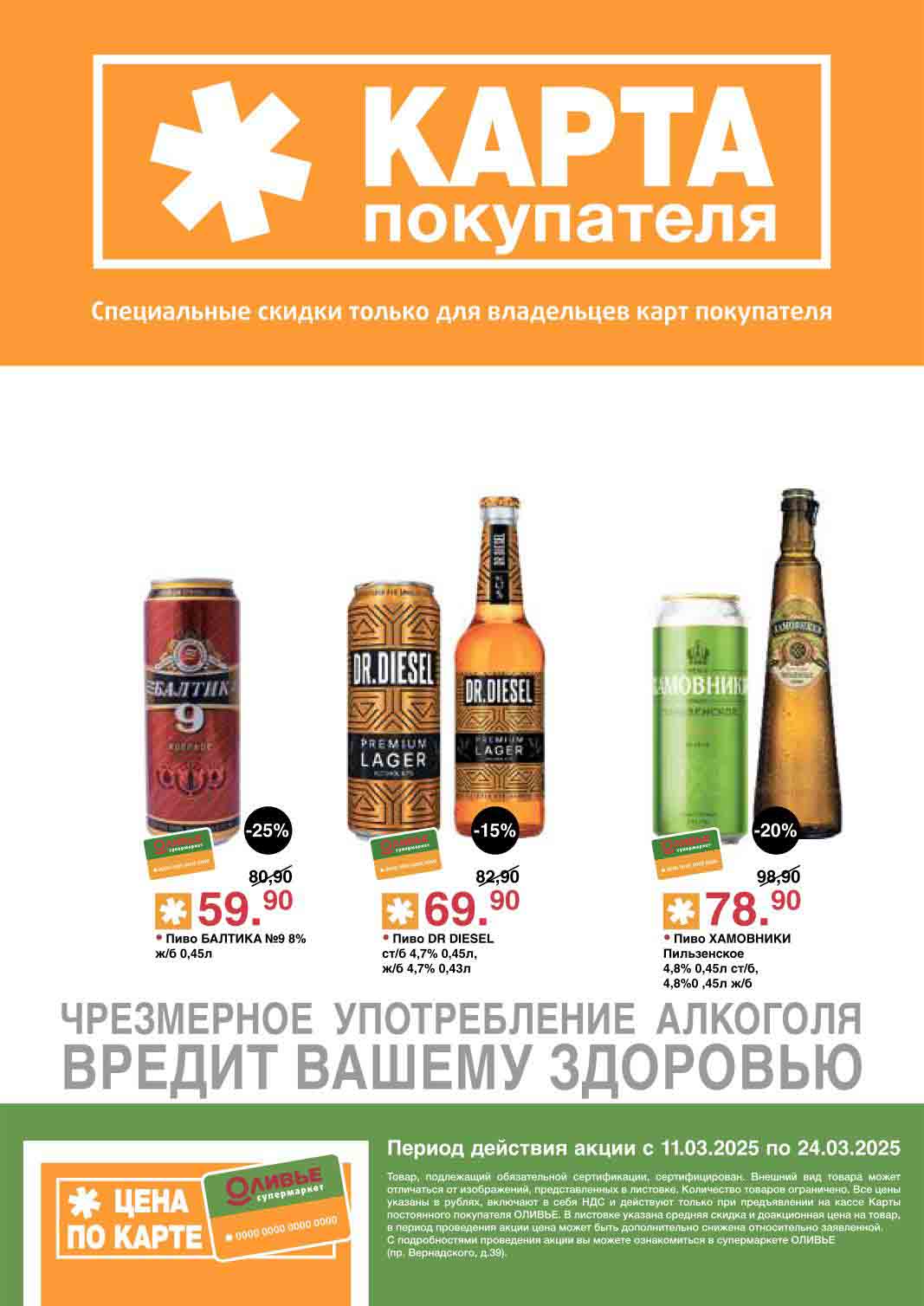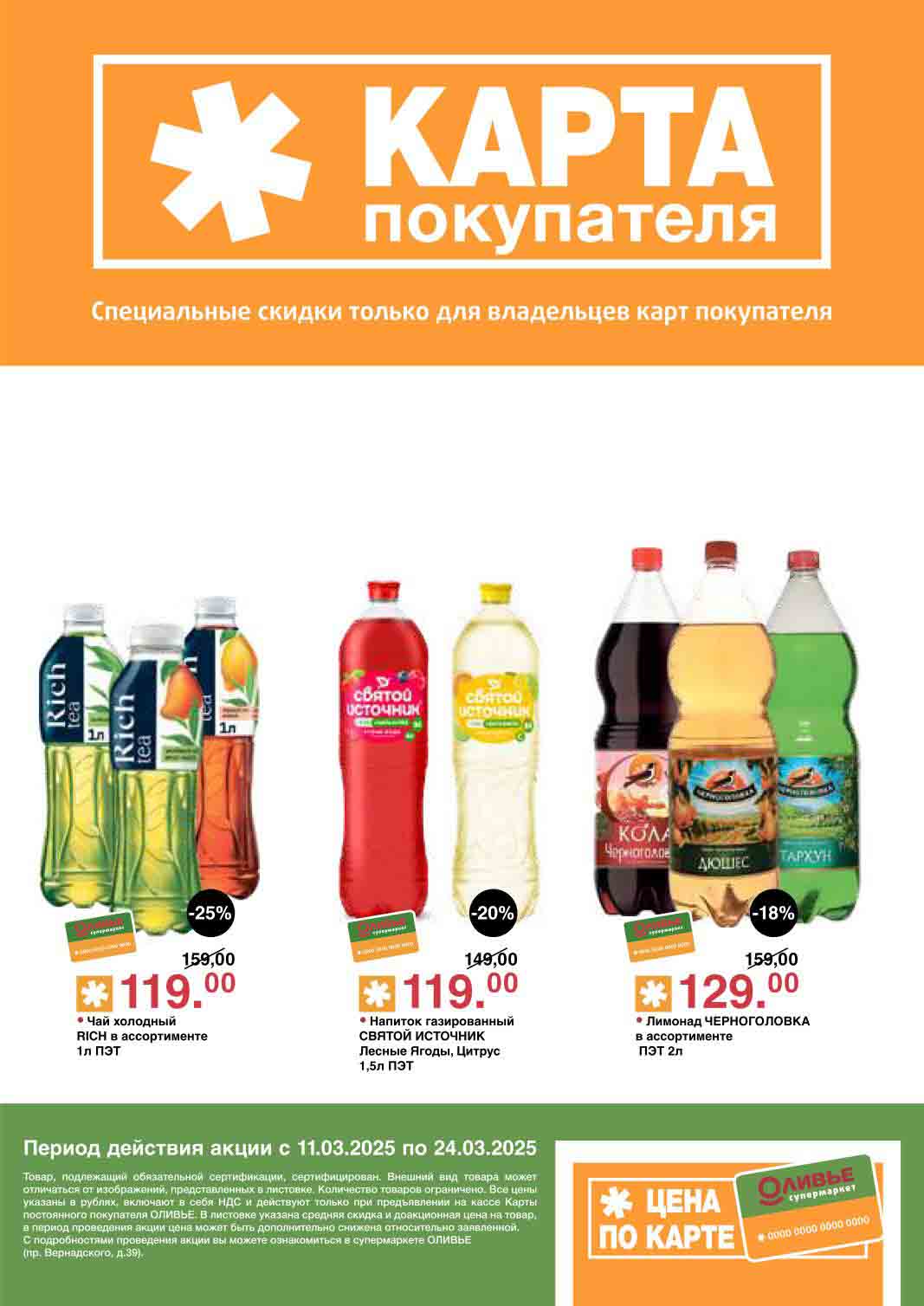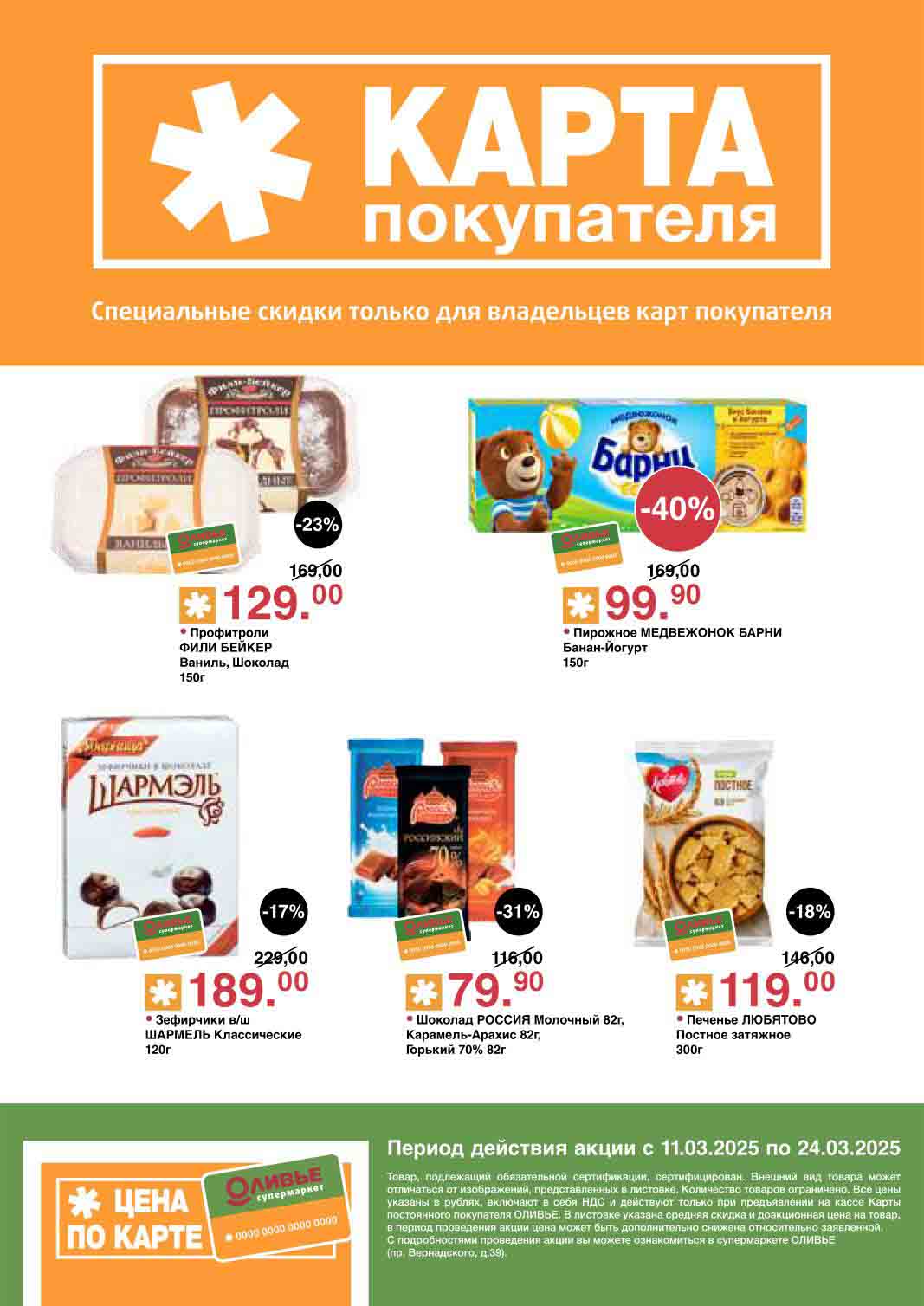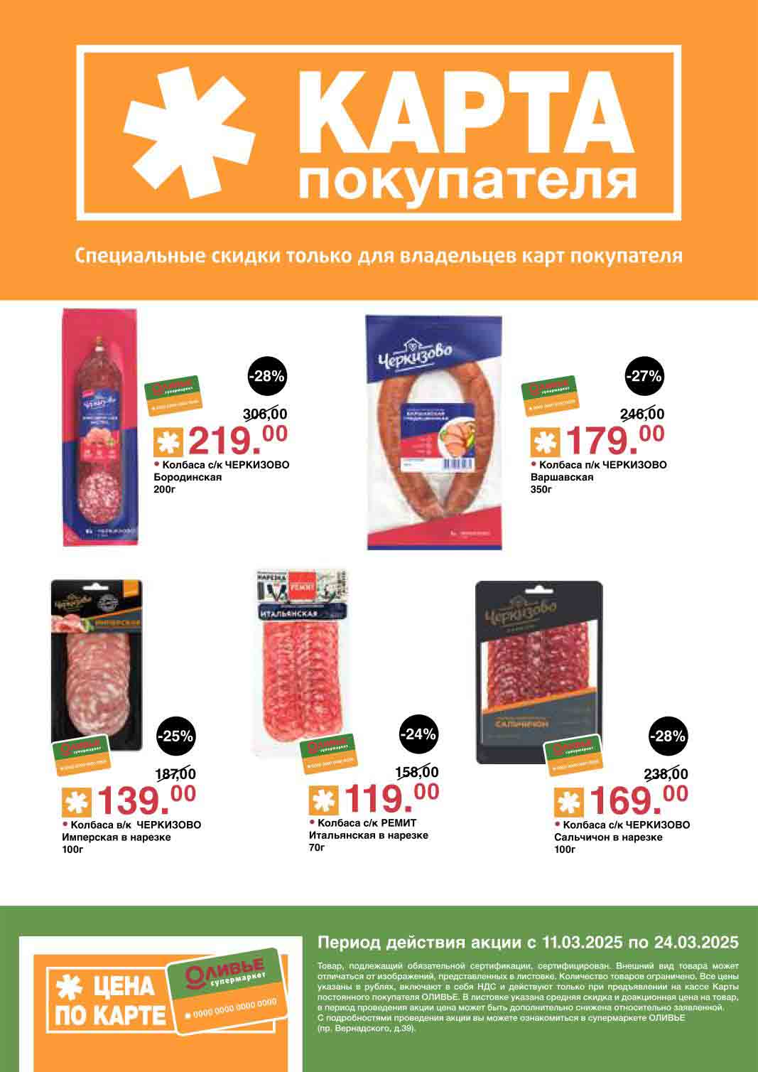 Оливье акции с 11 марта — 24 марта 2025. Скидки по карте покупателя