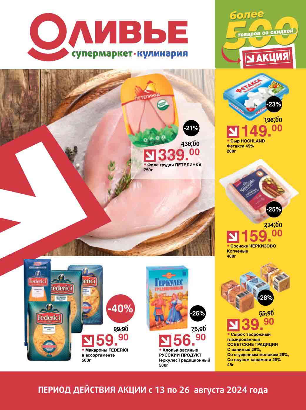 Оливье акции с 13 августа — 26 августа 2024. Регулярный каталог супермаркета