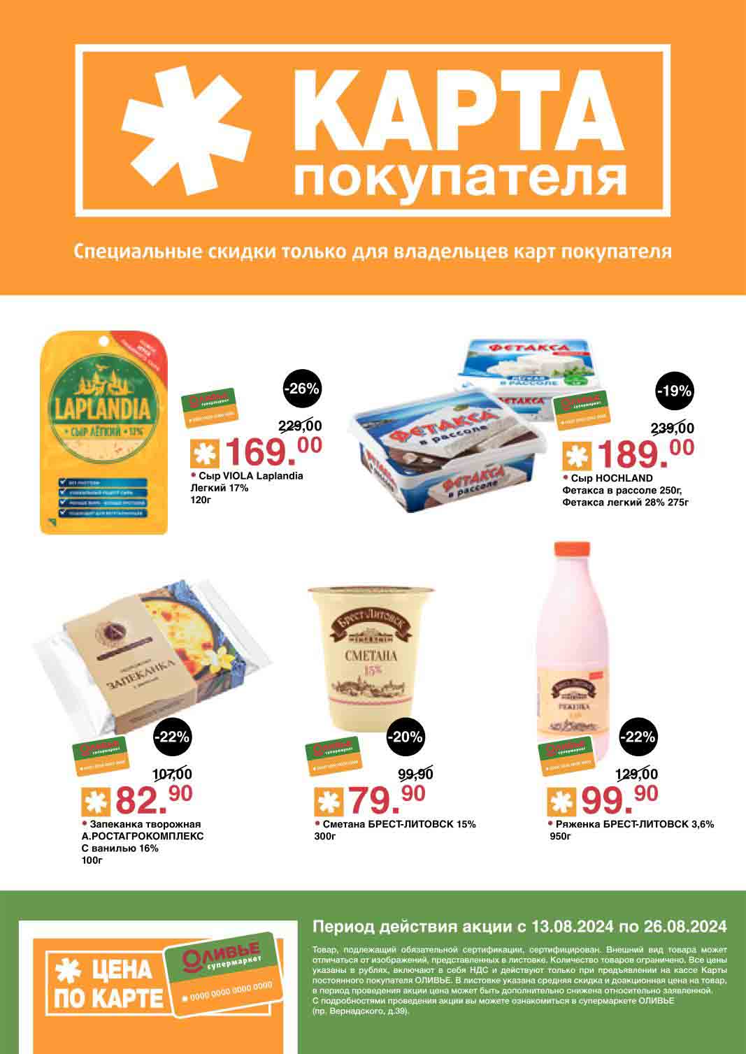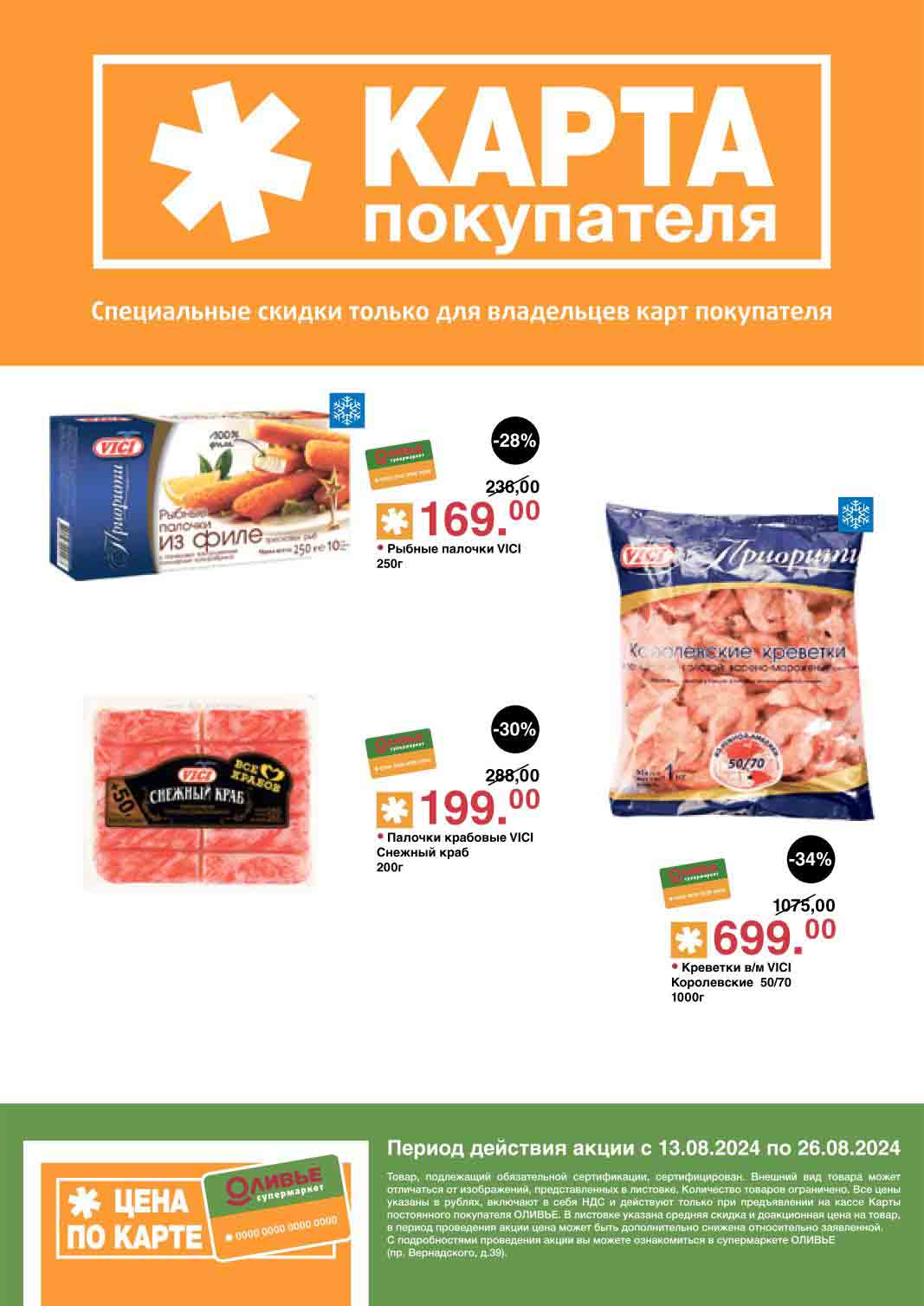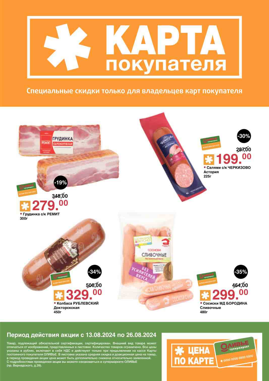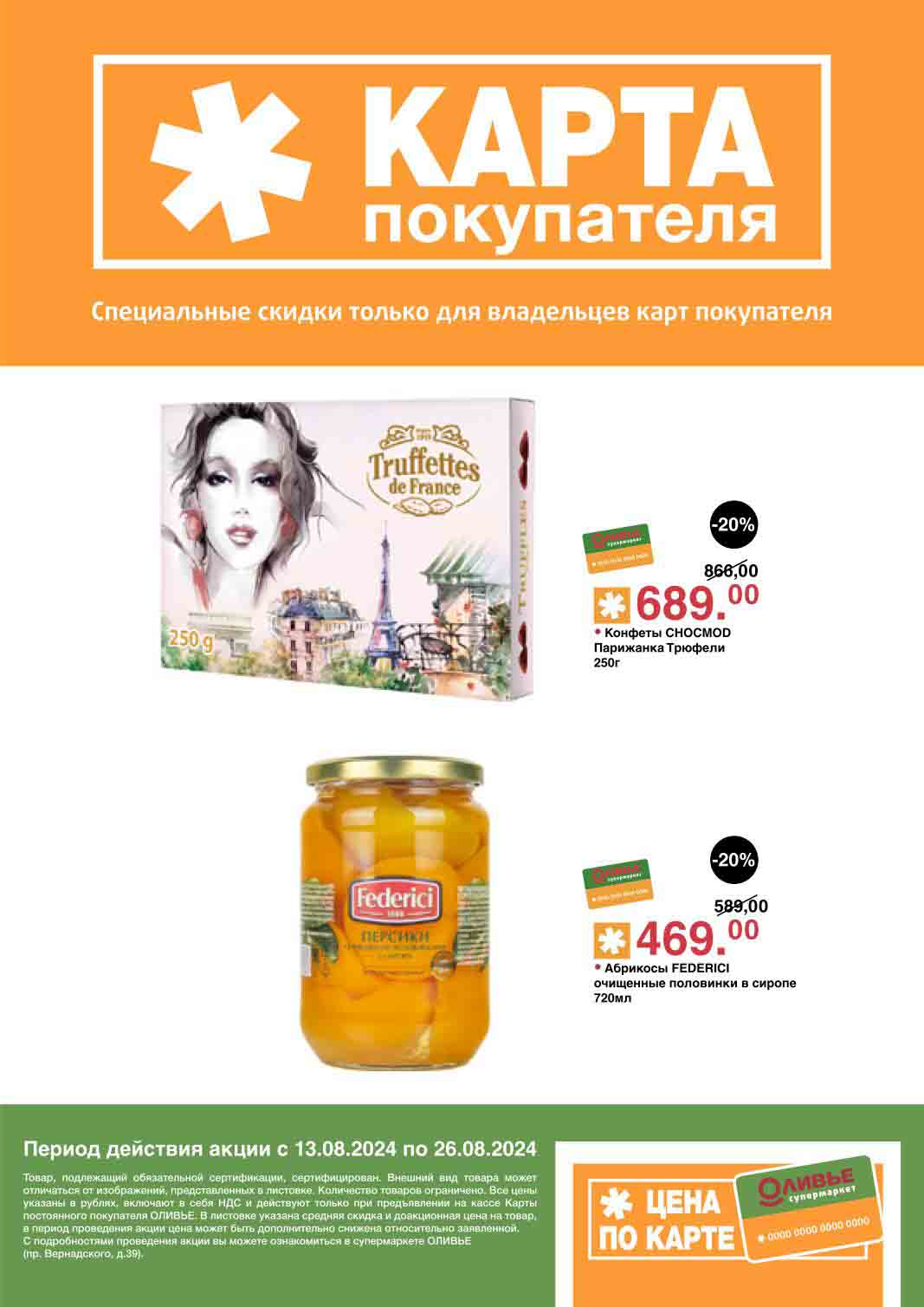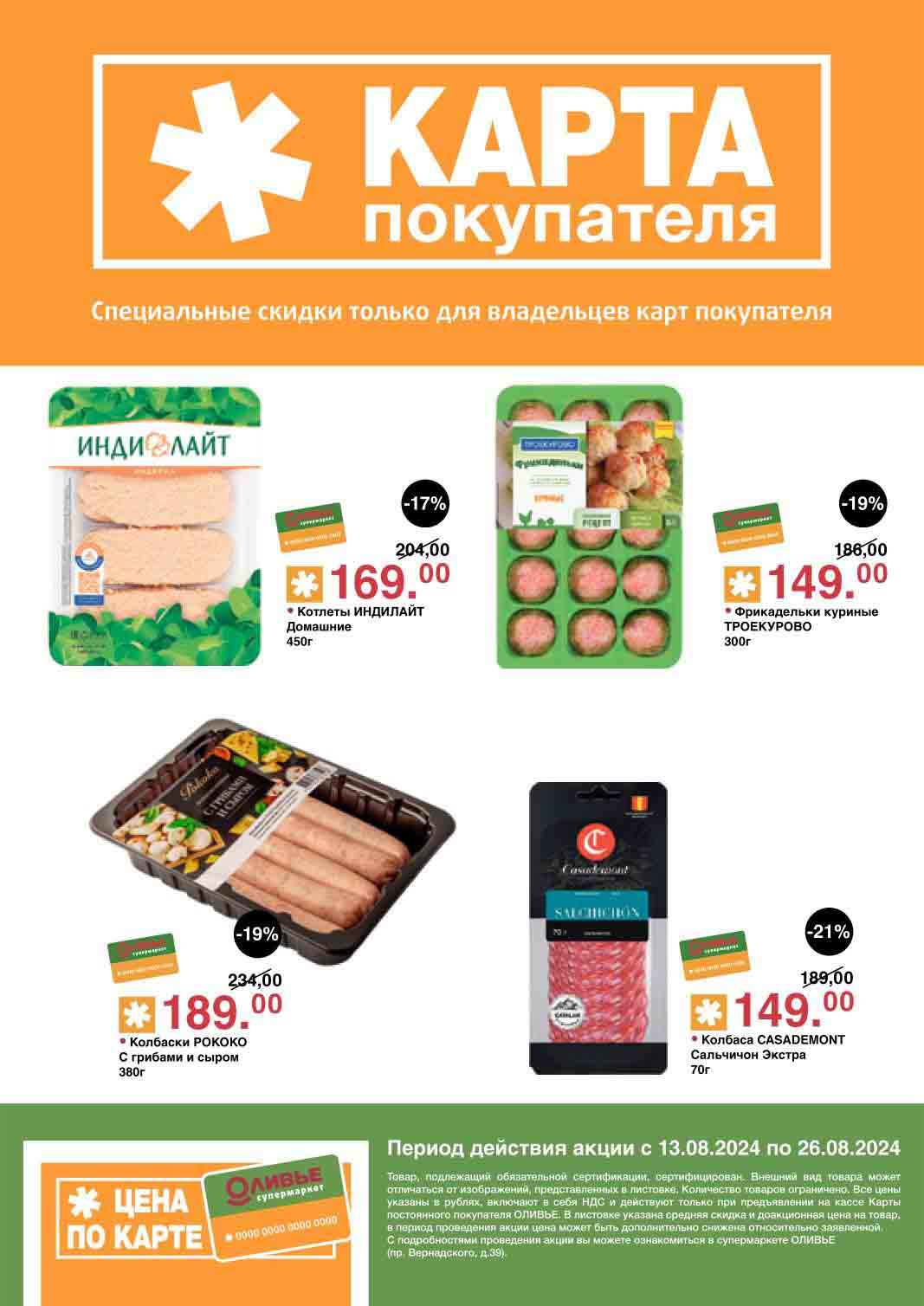 Оливье акции с 13 августа — 26 августа 2024. Скидки по карте покупателя