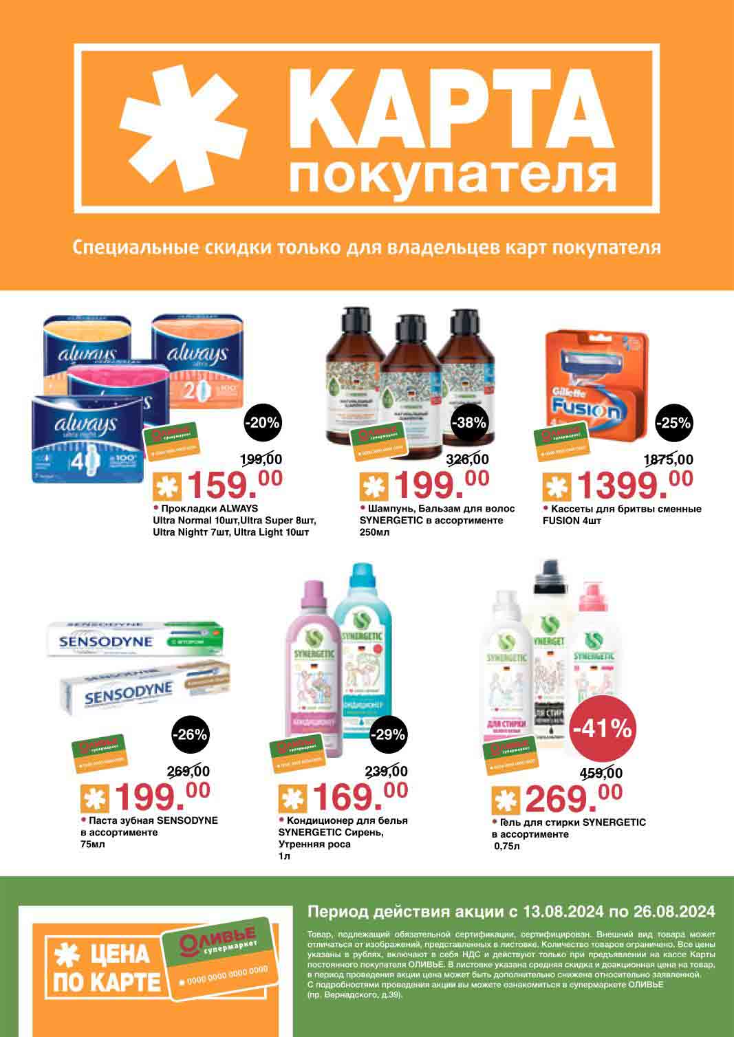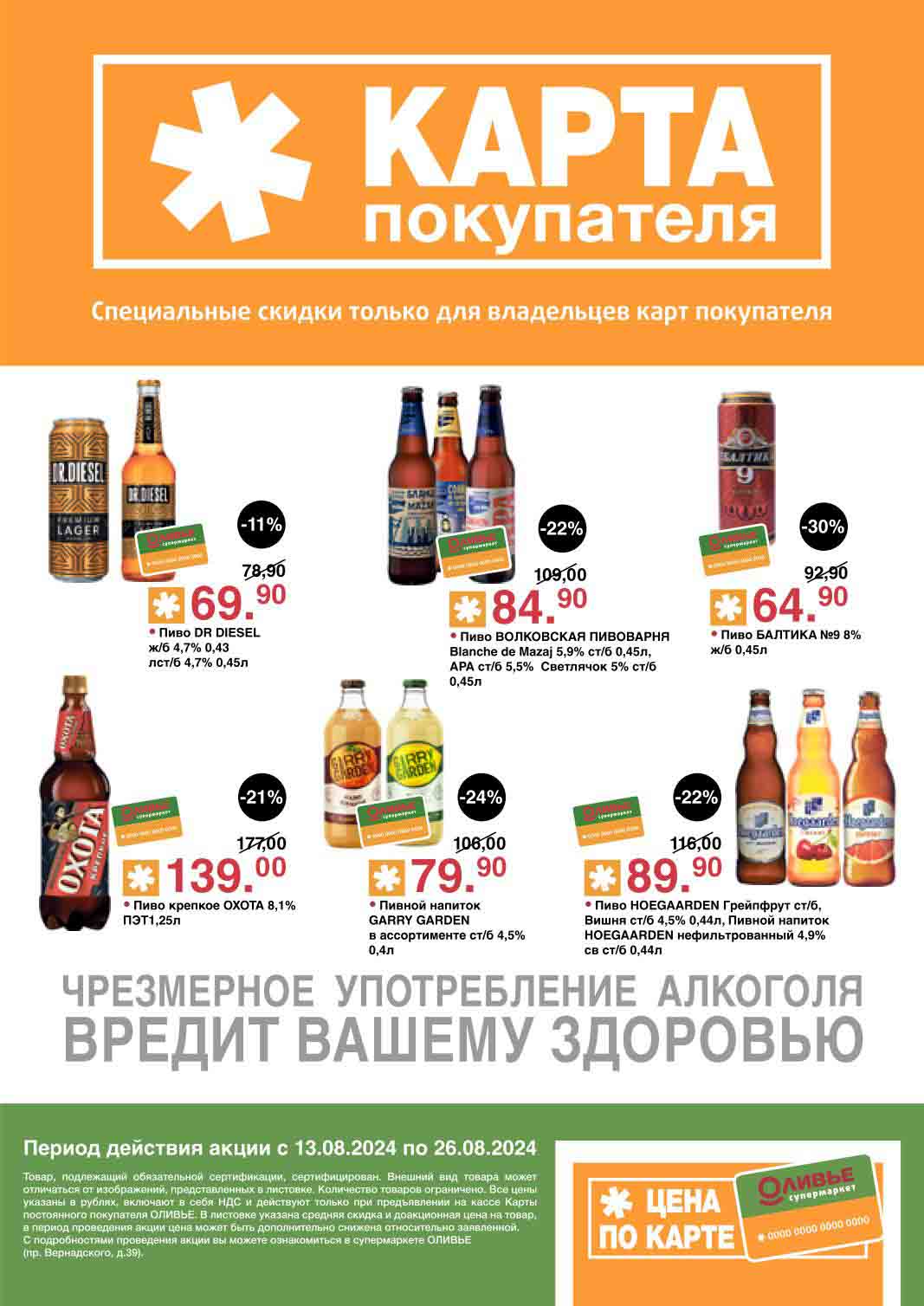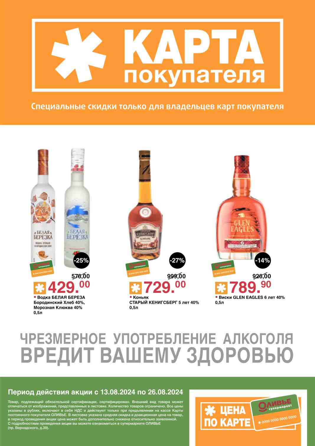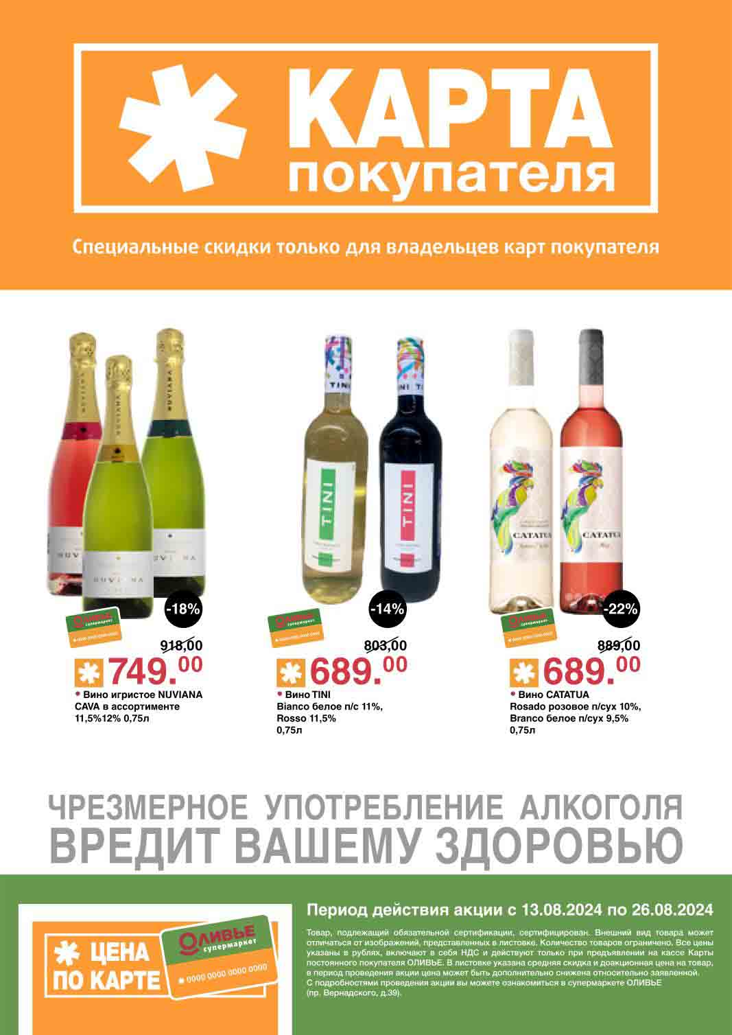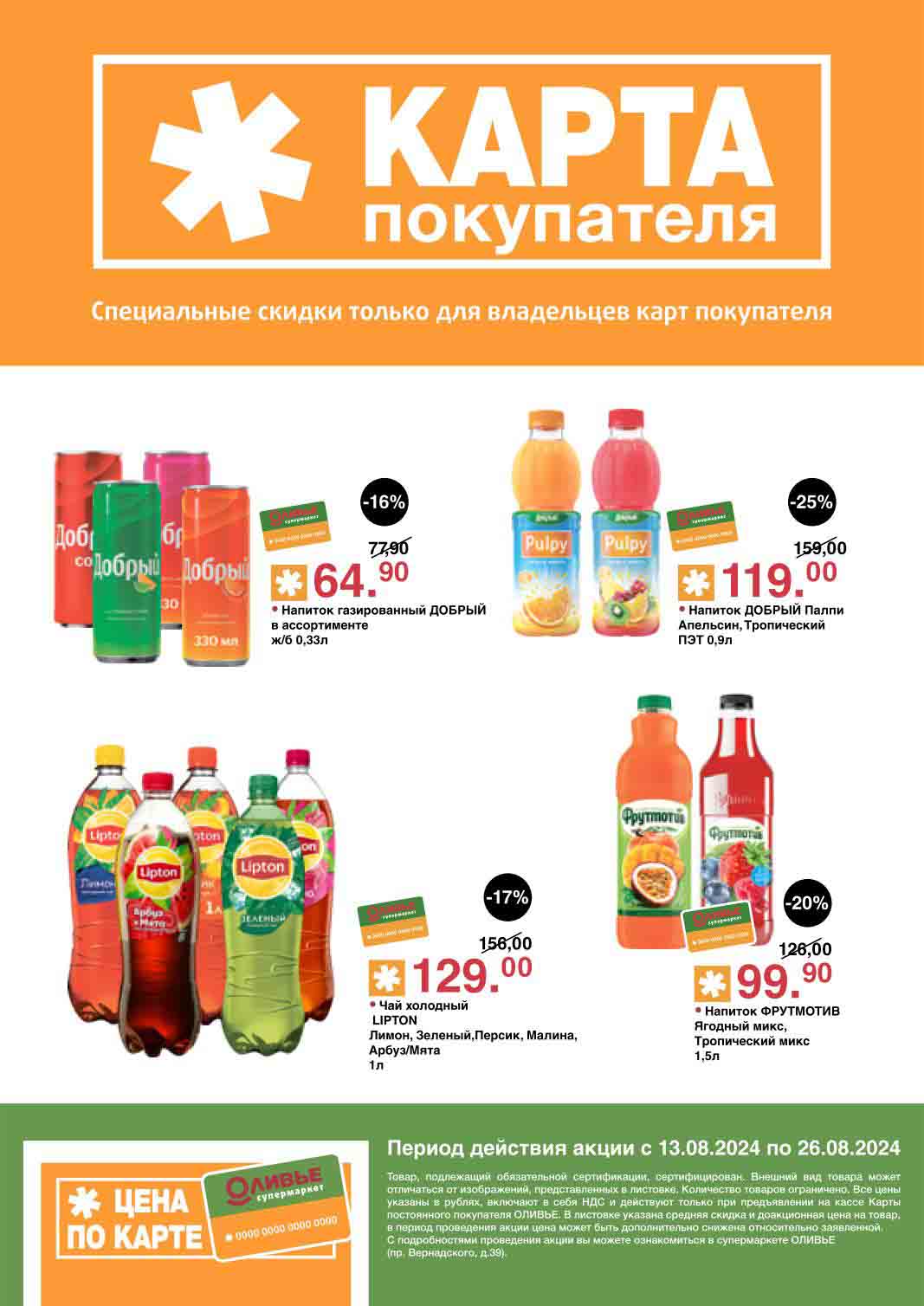Оливье акции с 13 августа — 26 августа 2024. Скидки по карте покупателя