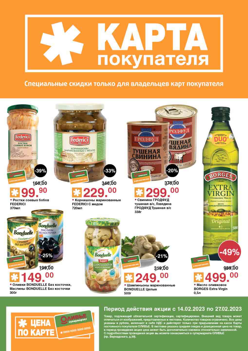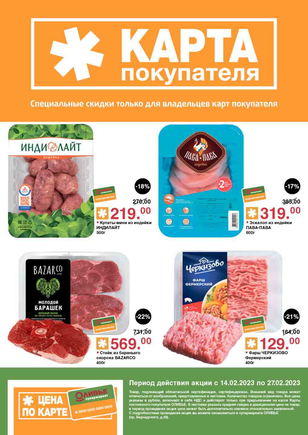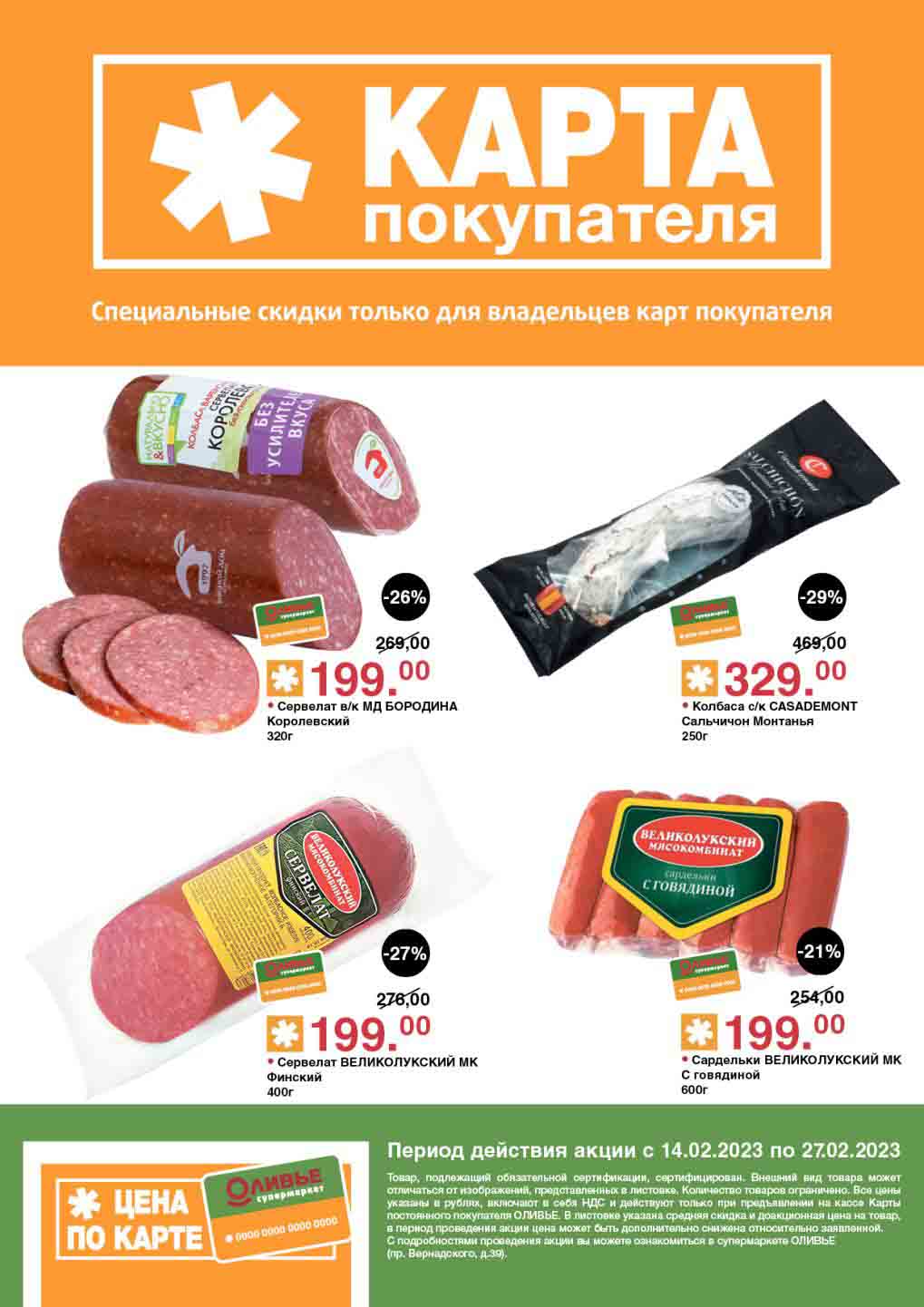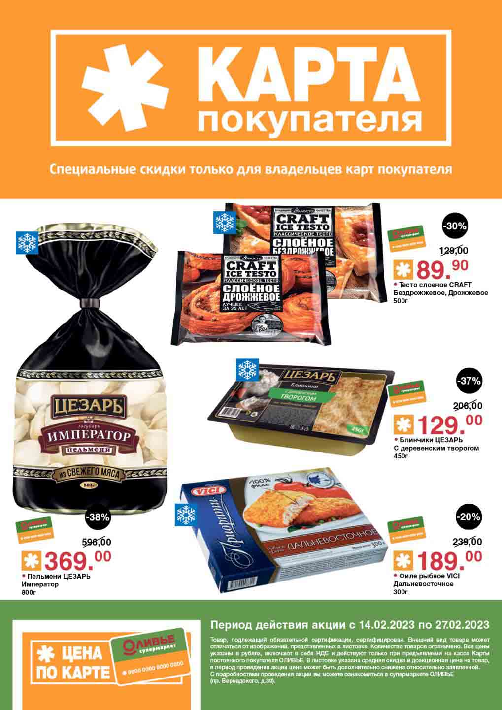 Оливье акции с 14 февраля — 27 февраля. Скидки по карте покупателя