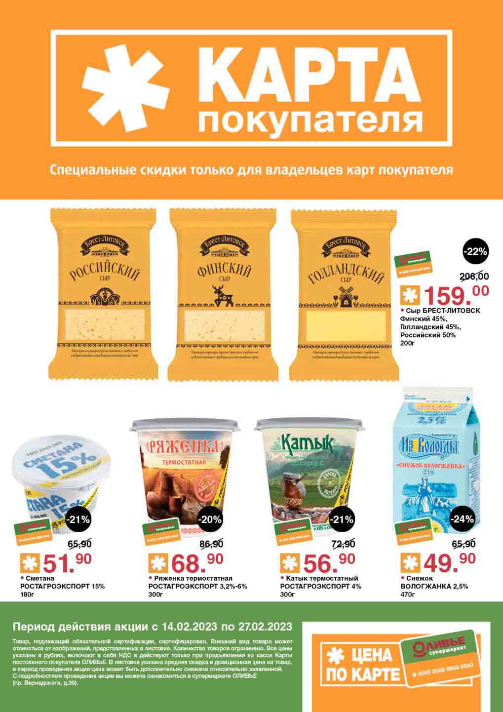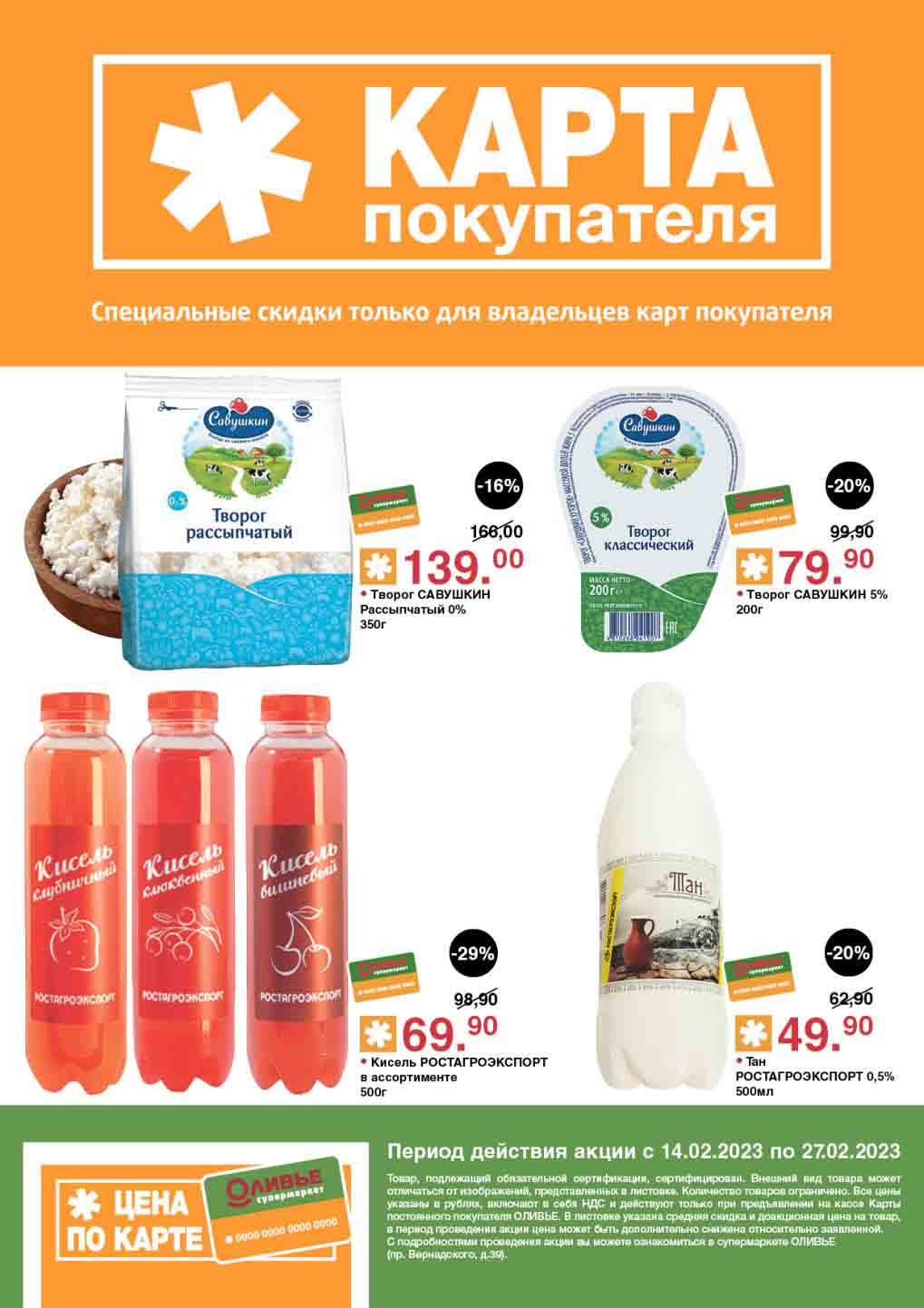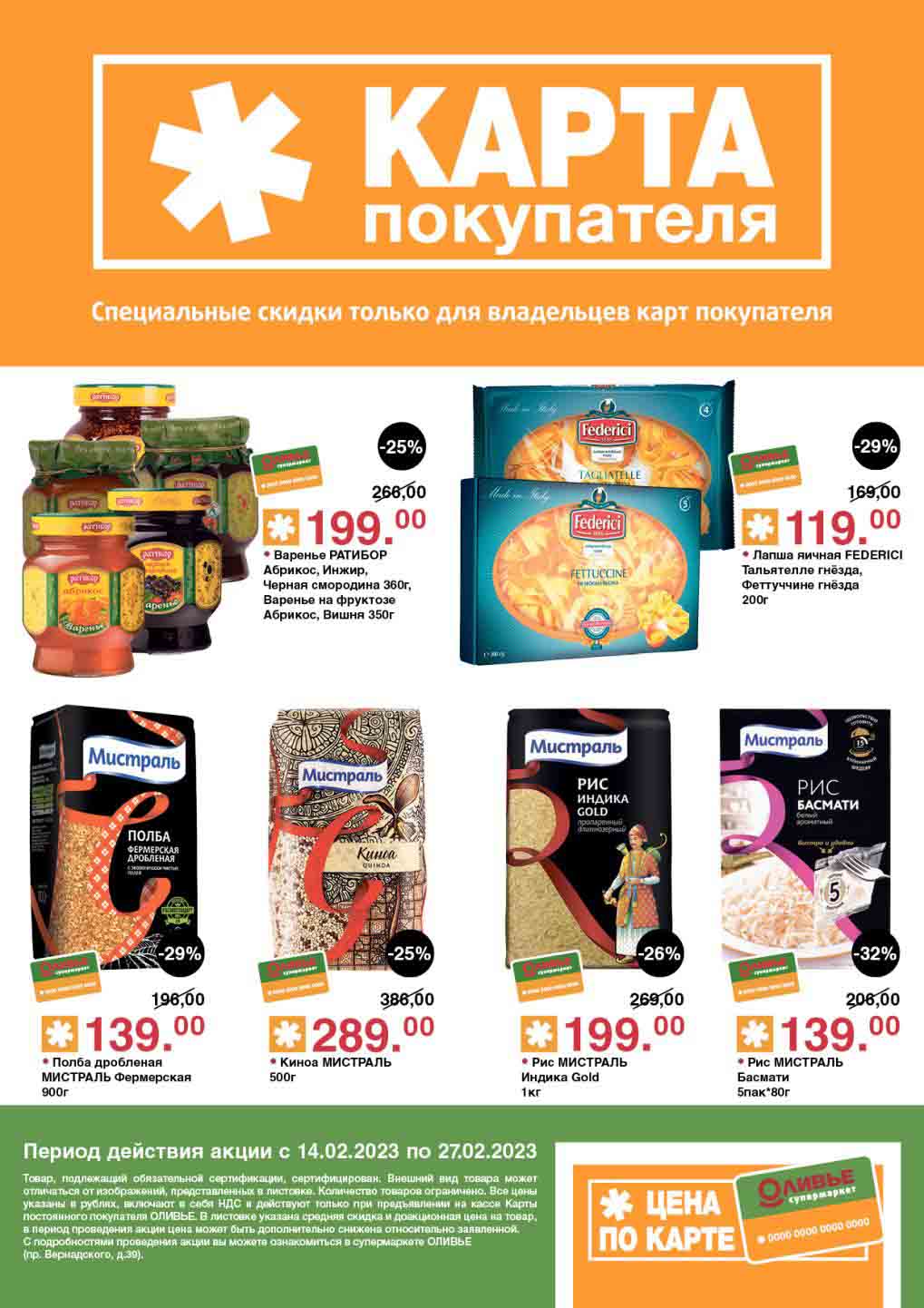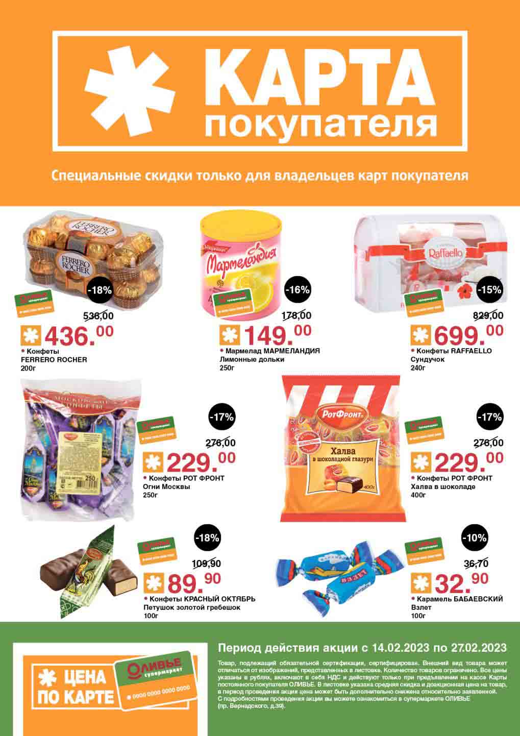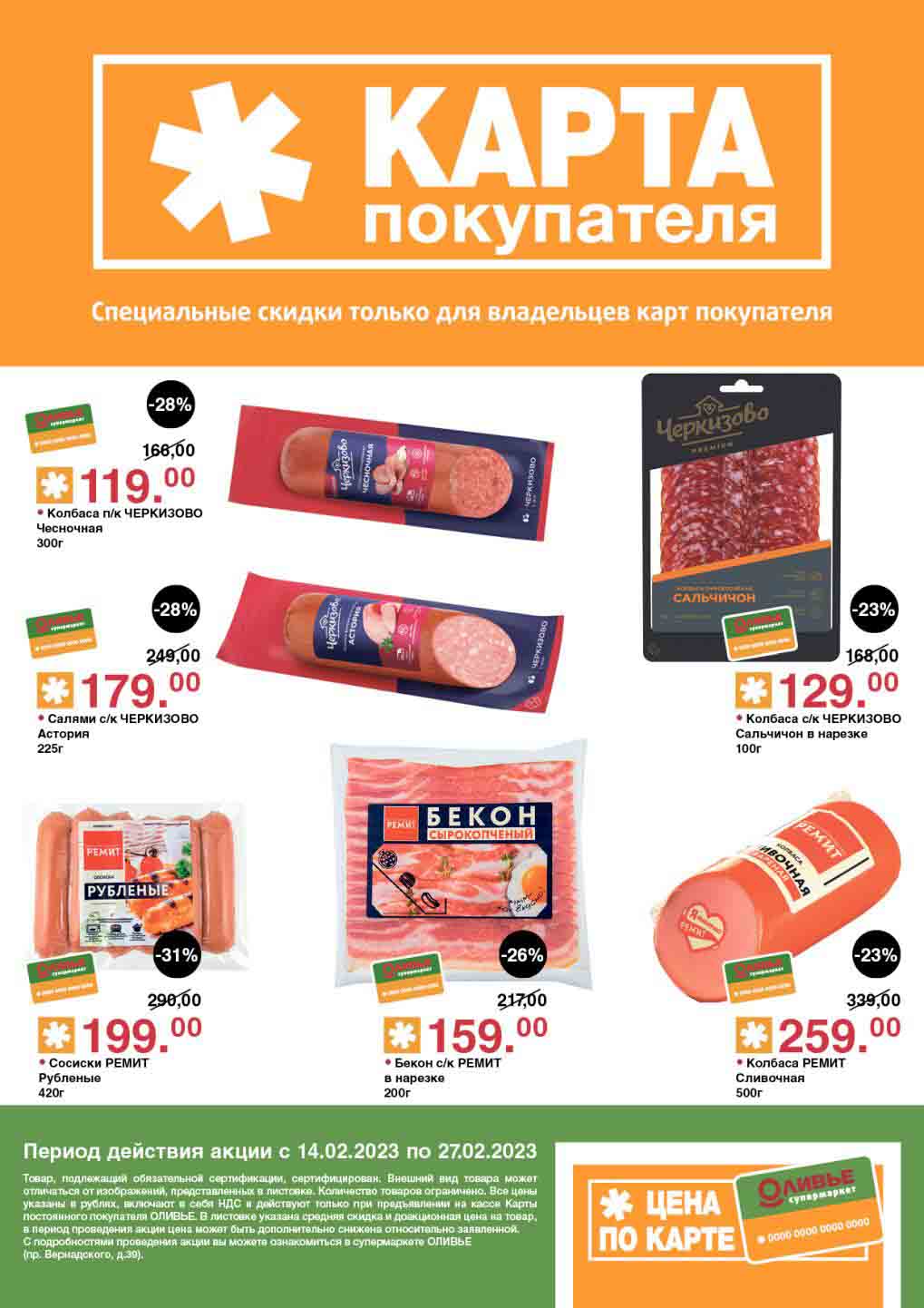 Оливье акции с 14 февраля — 27 февраля. Скидки по карте покупателя