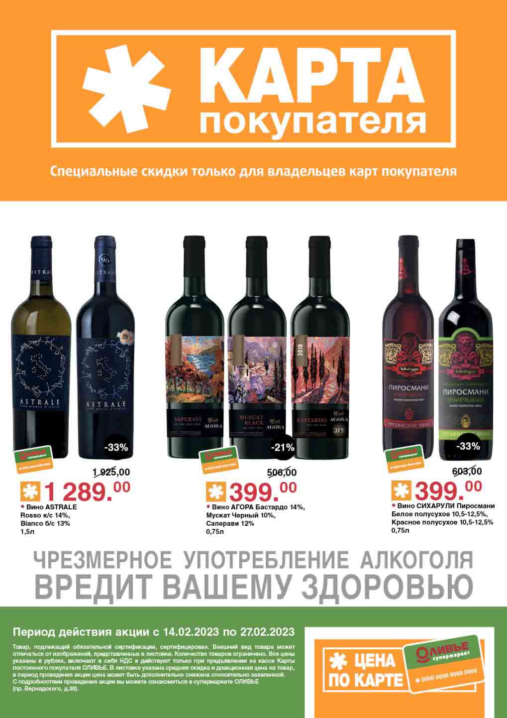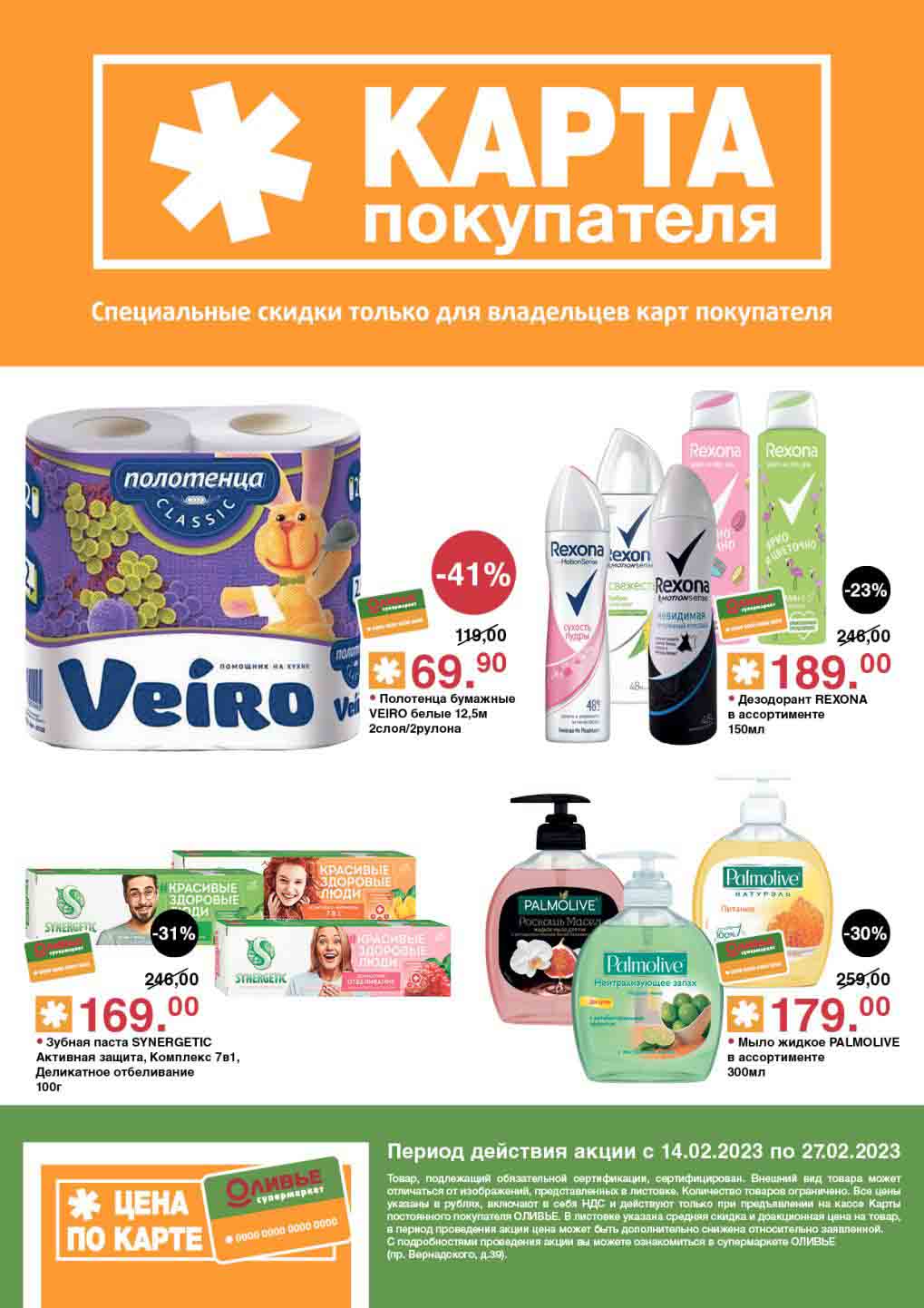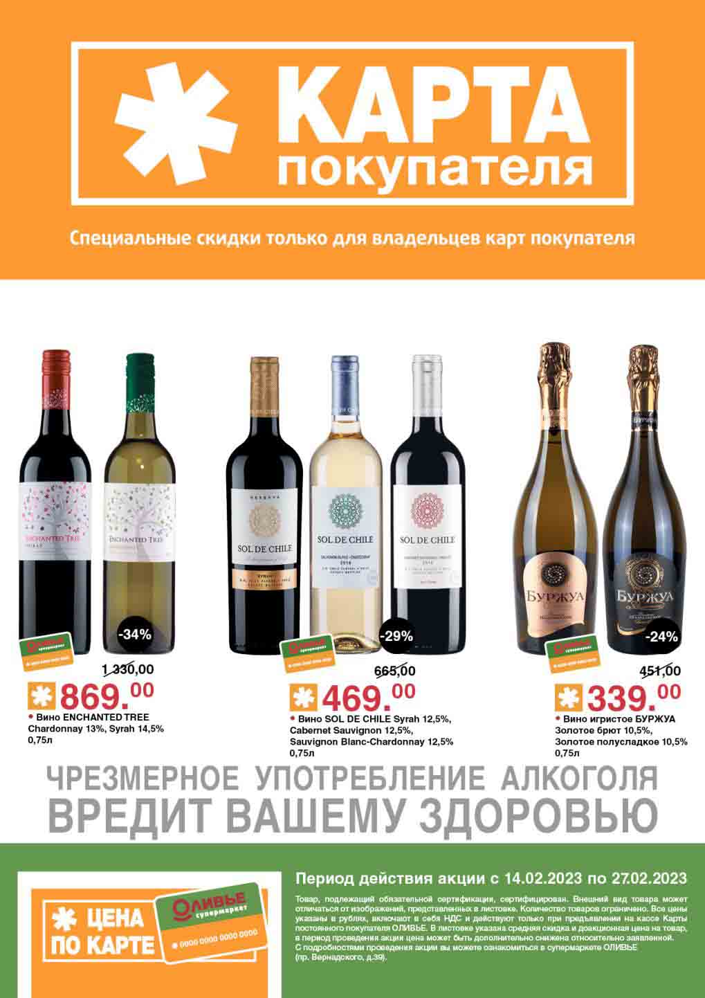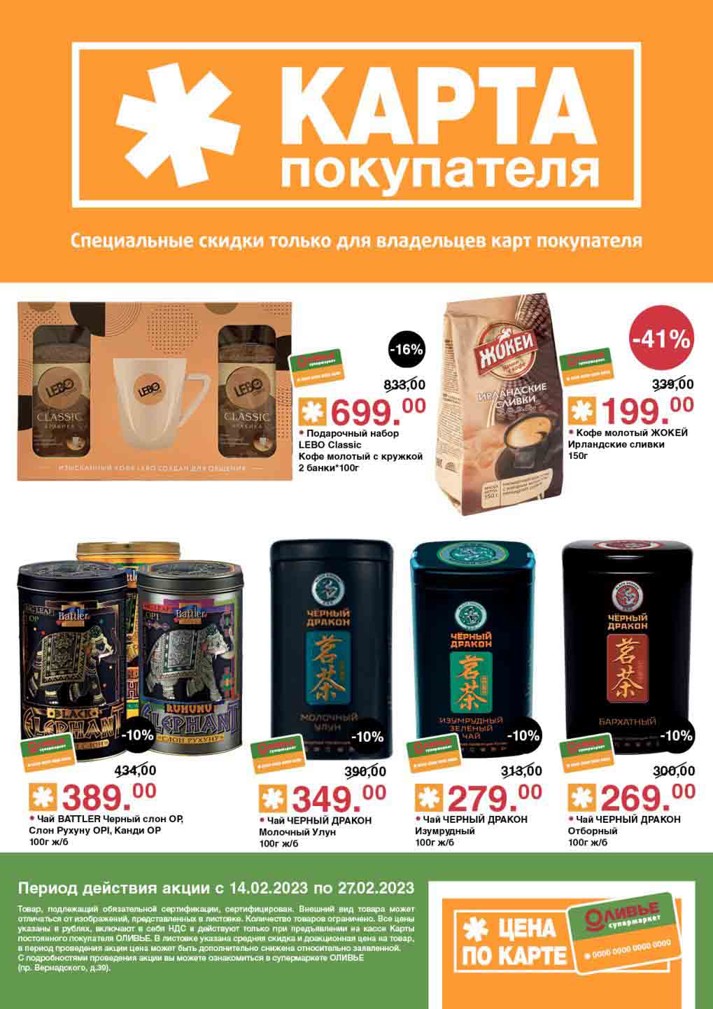 Оливье акции с 14 февраля — 27 февраля. Скидки по карте покупателя