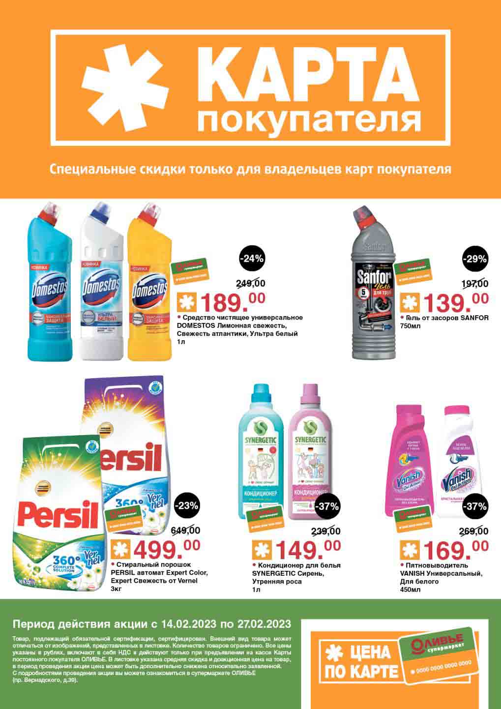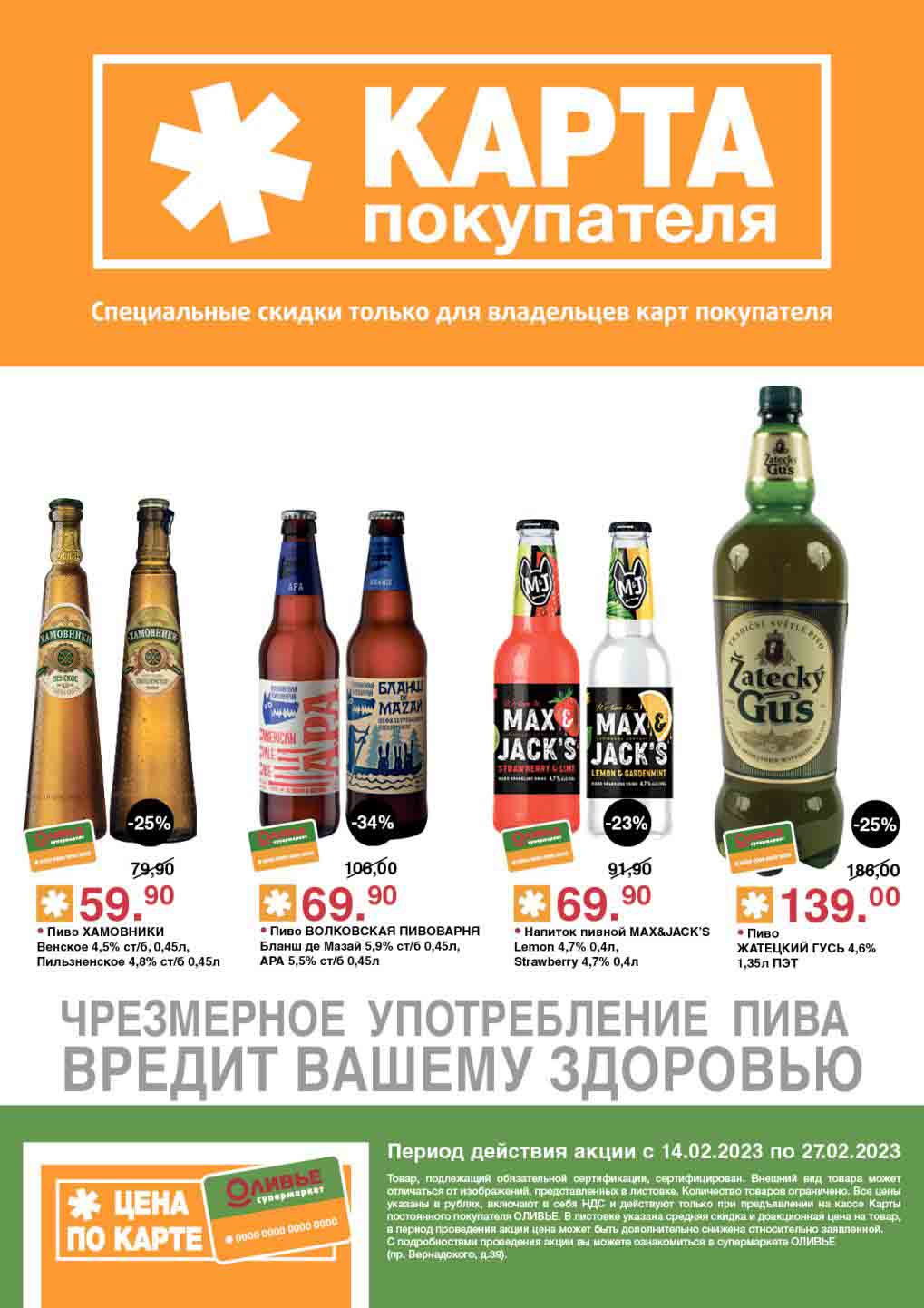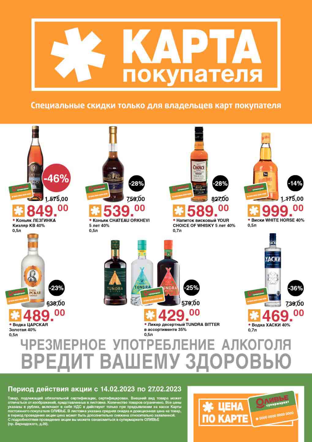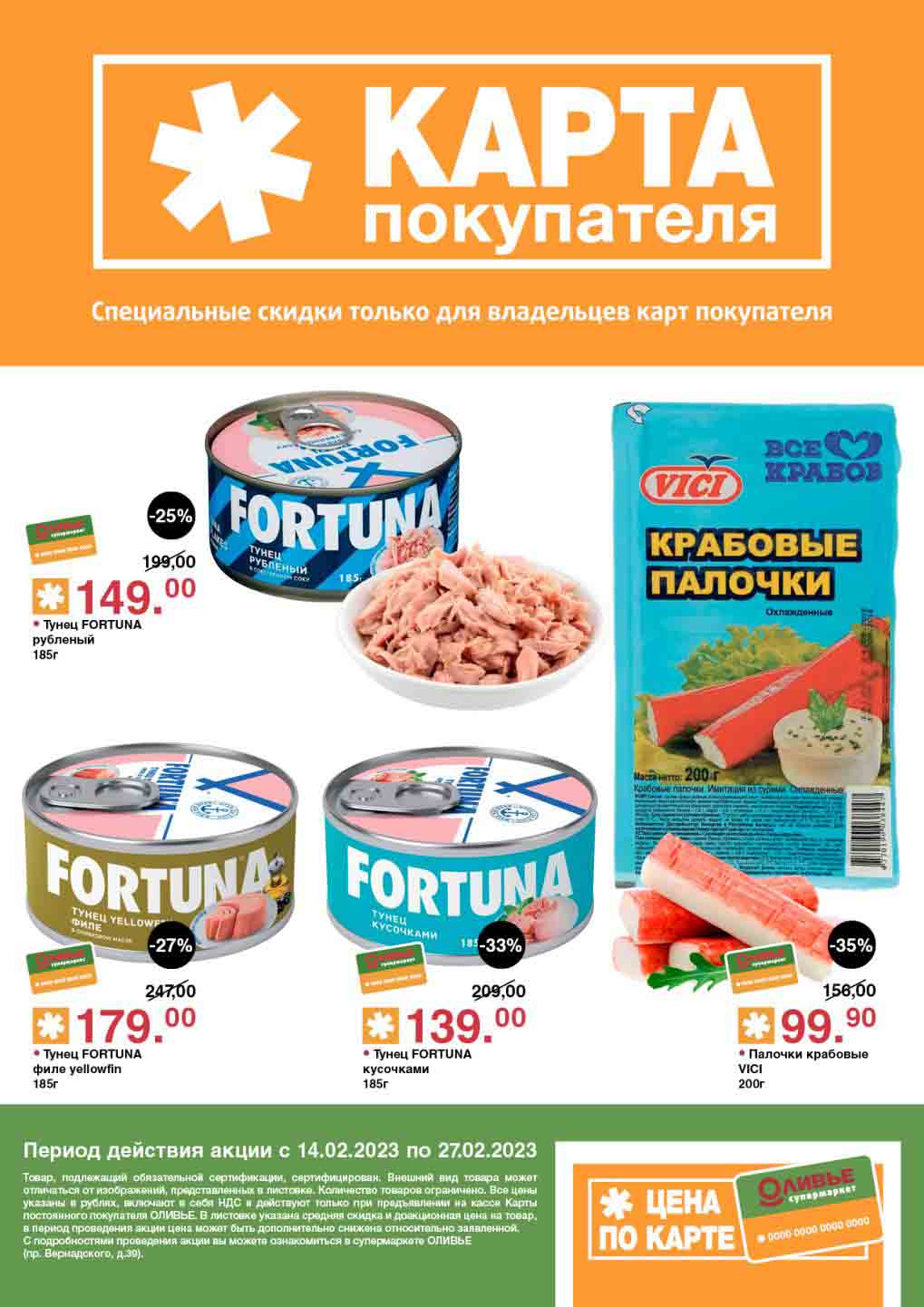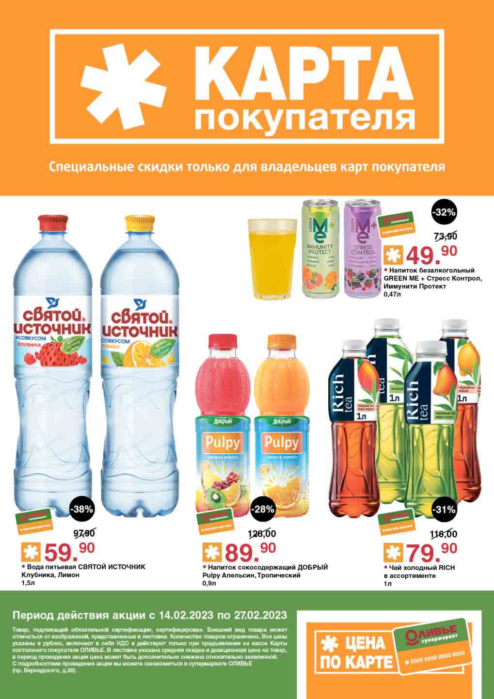 Оливье акции с 14 февраля — 27 февраля. Скидки по карте покупателя