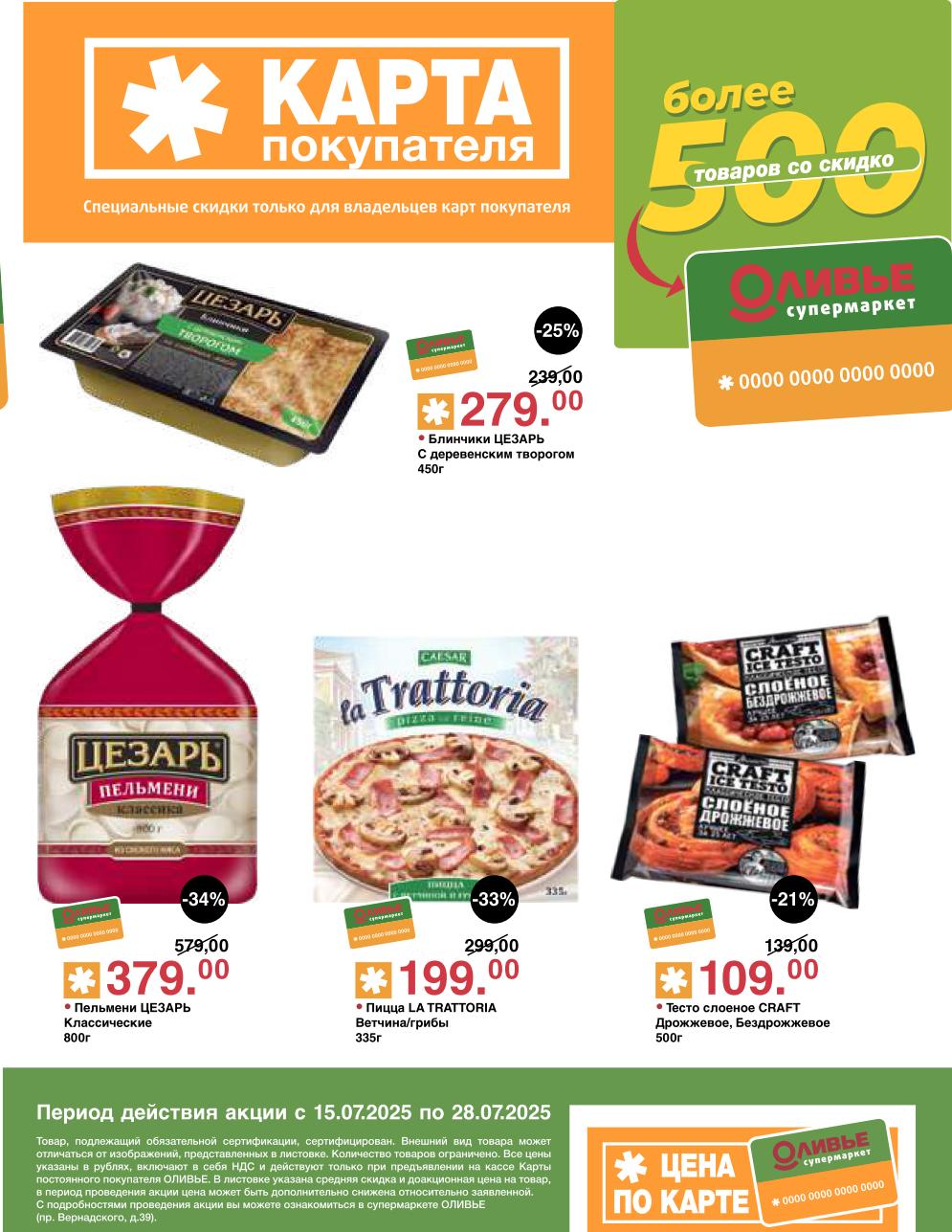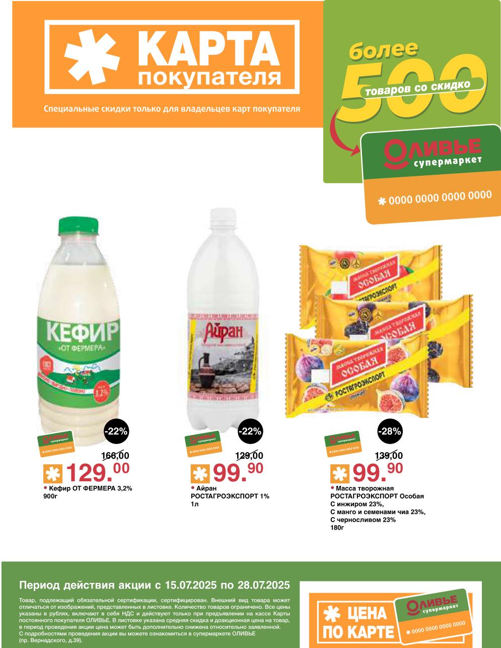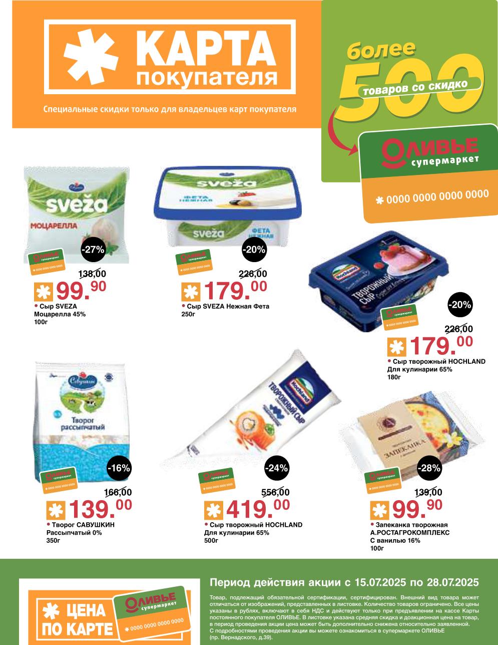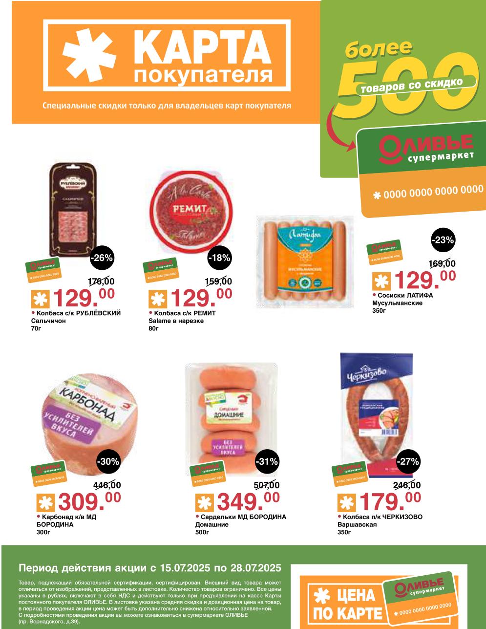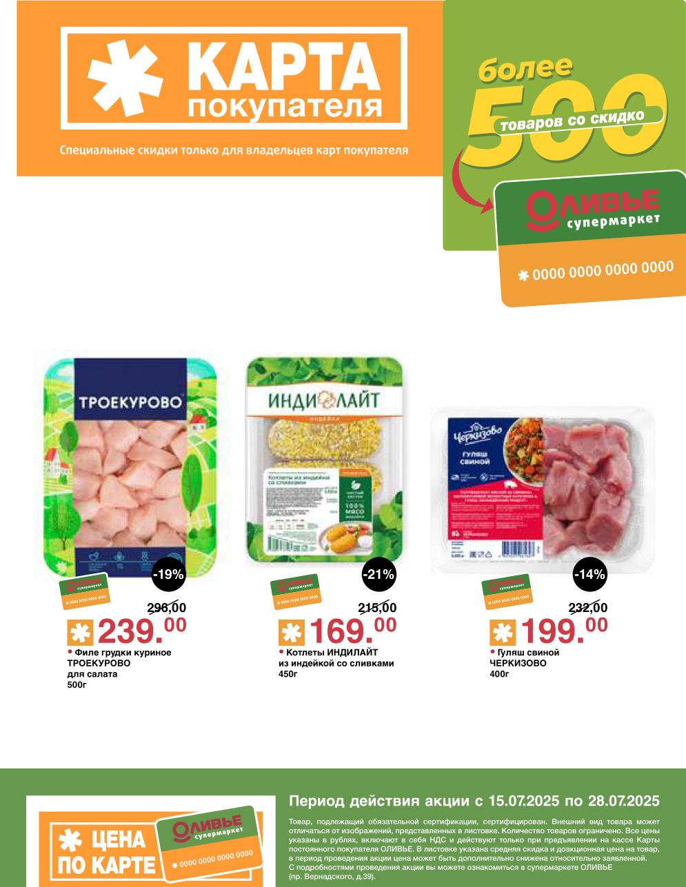 Оливье акции с 15 июля — 28 июля 2025. Скидки по карте покупателя