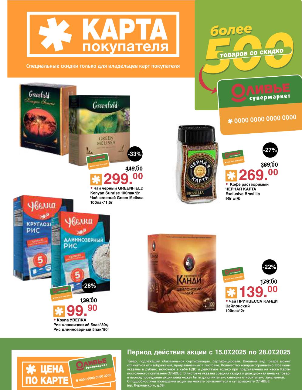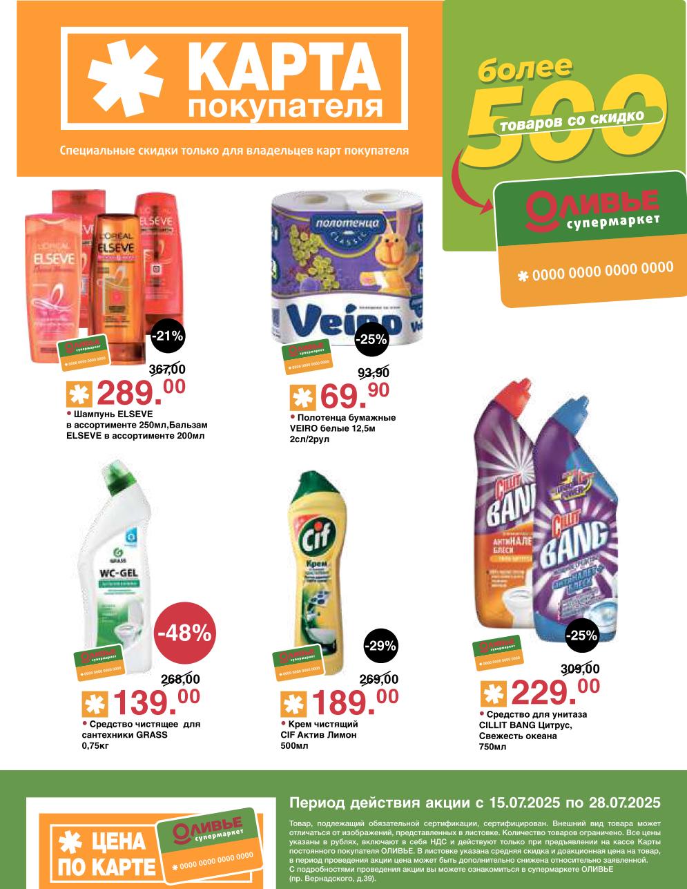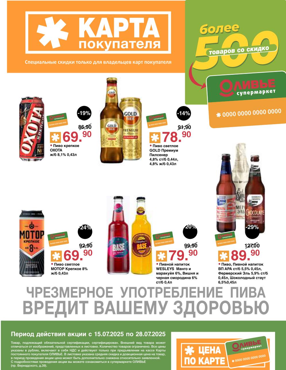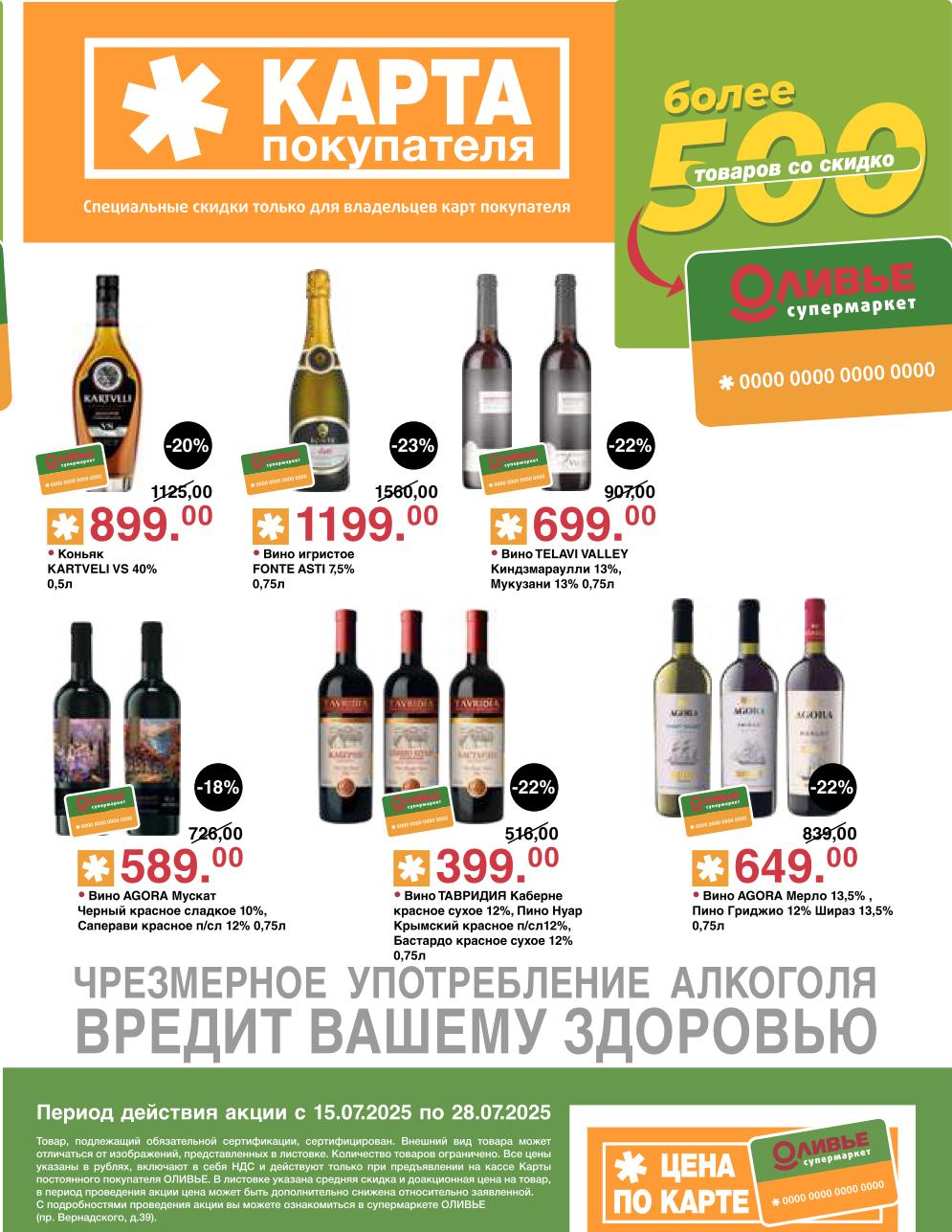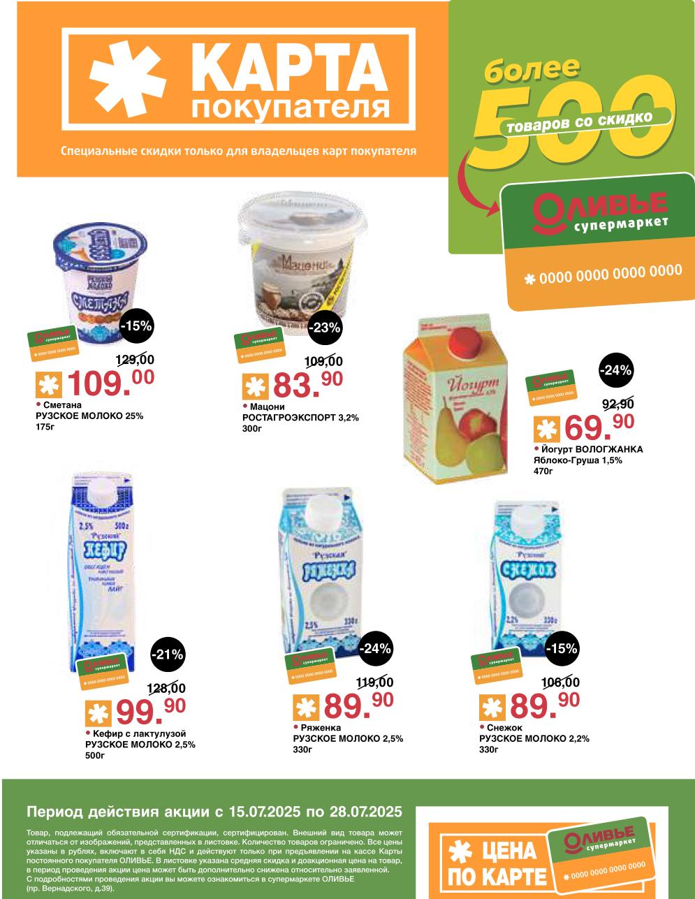 Оливье акции с 15 июля — 28 июля 2025. Скидки по карте покупателя