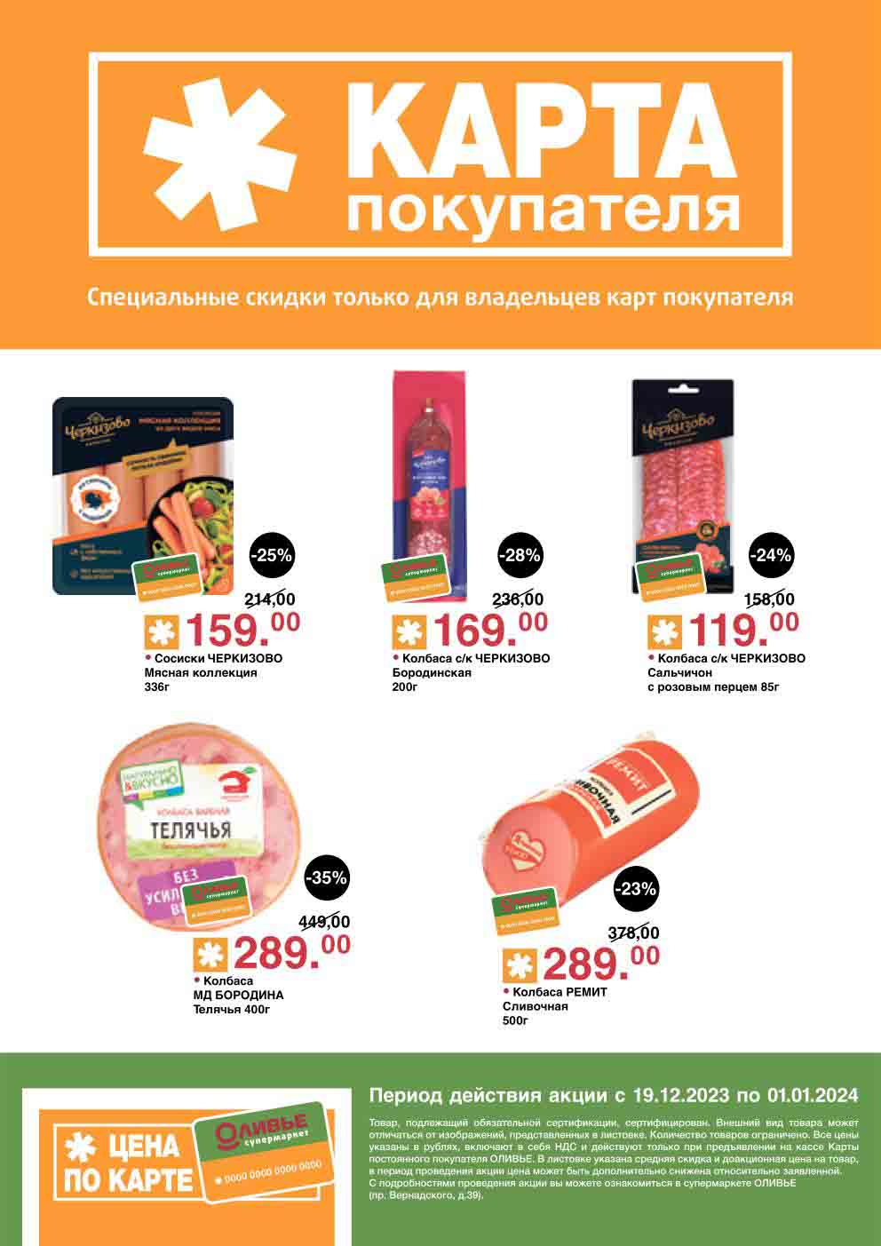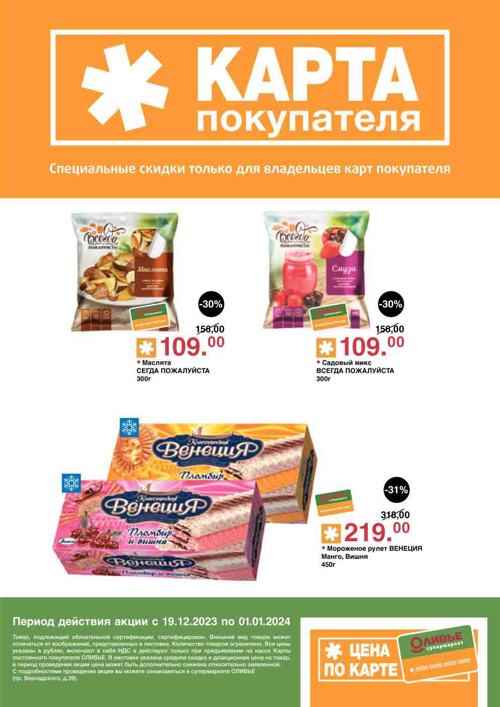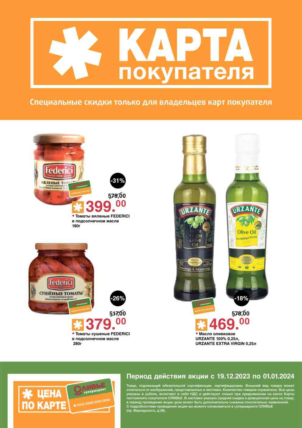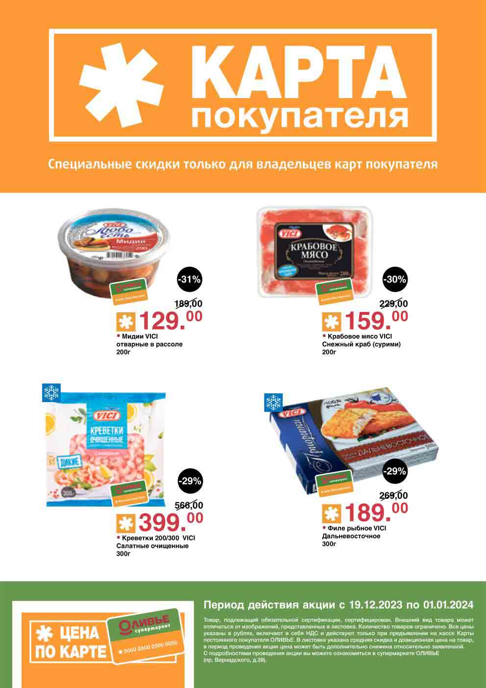 Оливье акции с 19 декабря — 1 января. Скидки по карте покупателя