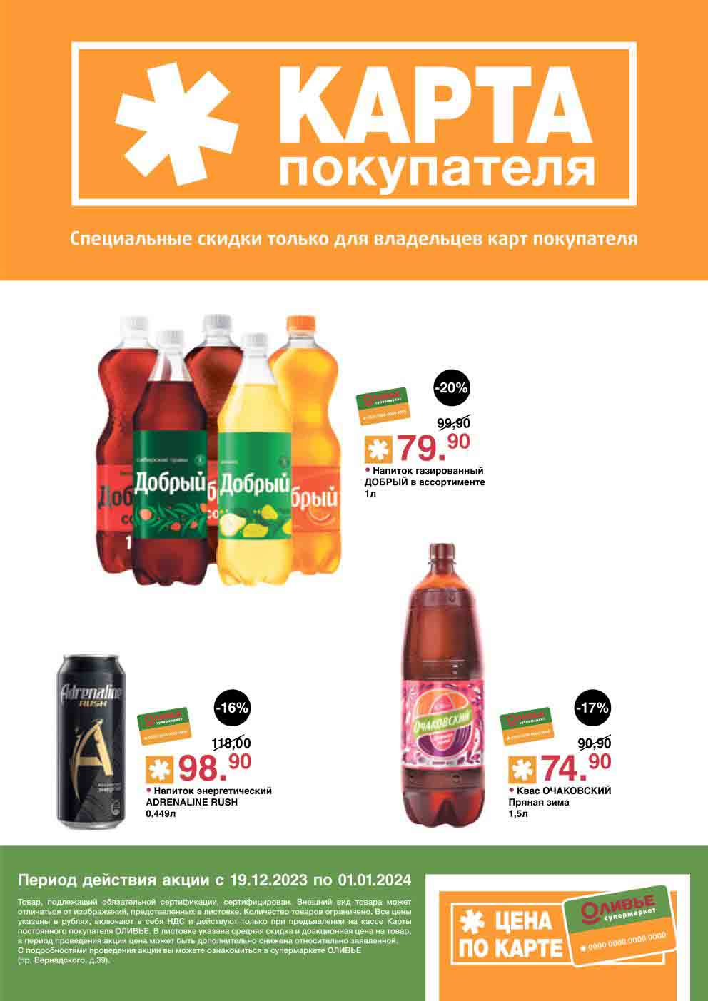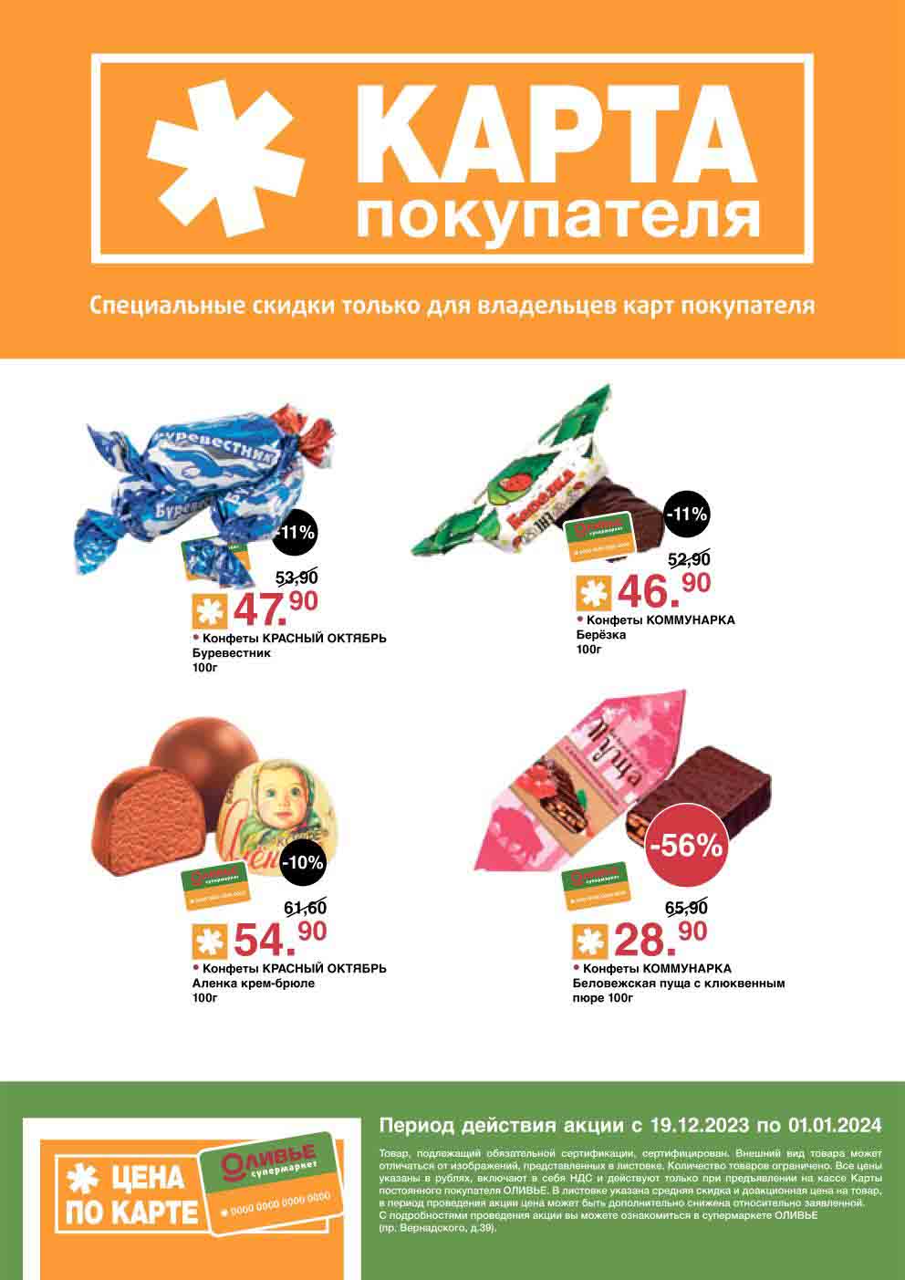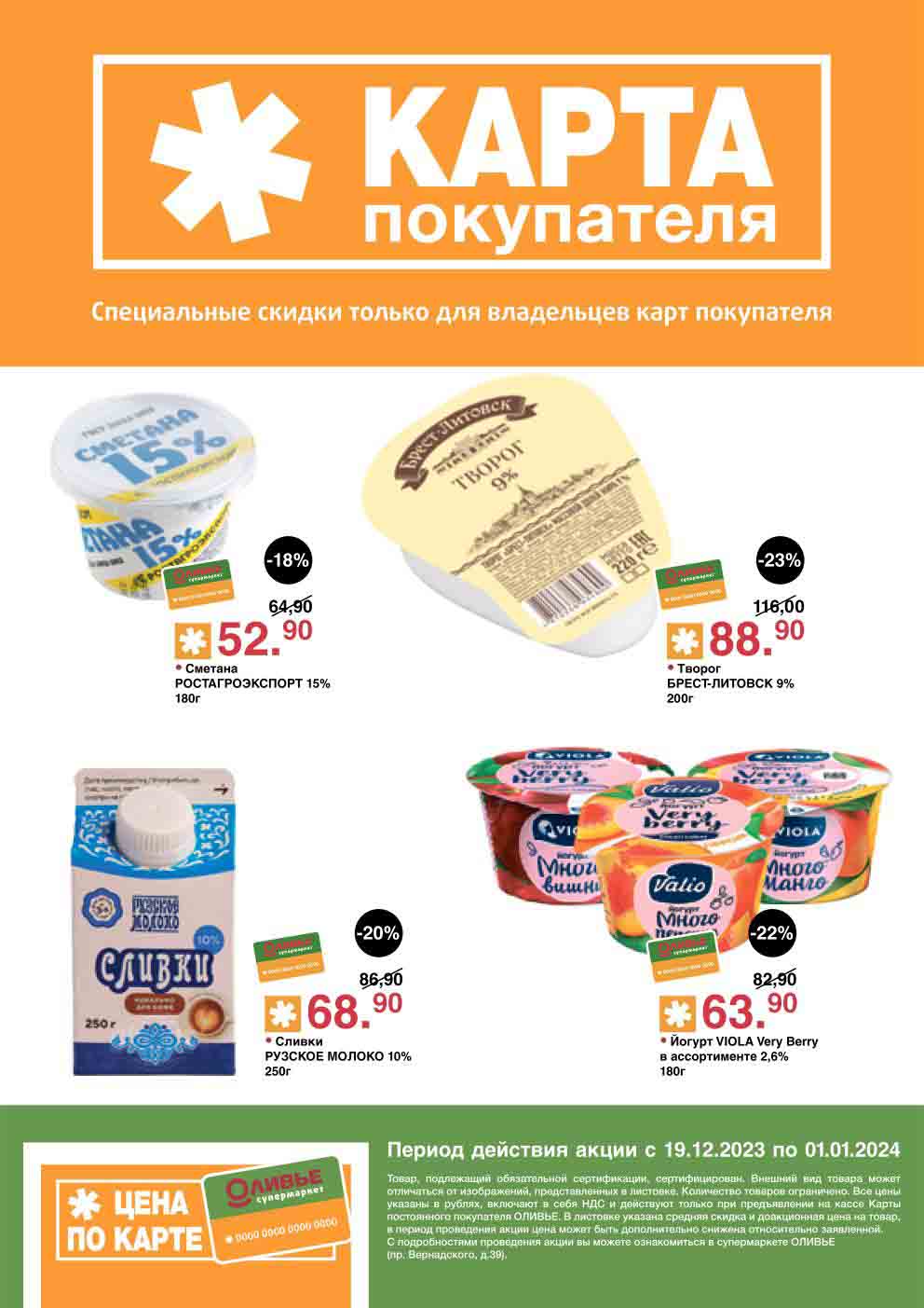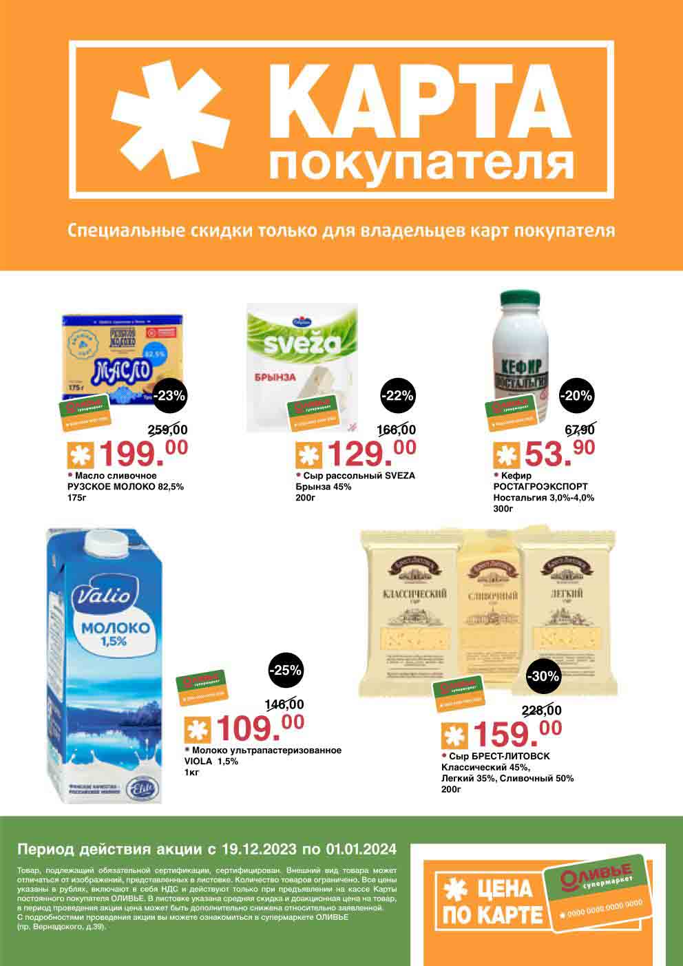 Оливье акции с 19 декабря — 1 января. Скидки по карте покупателя