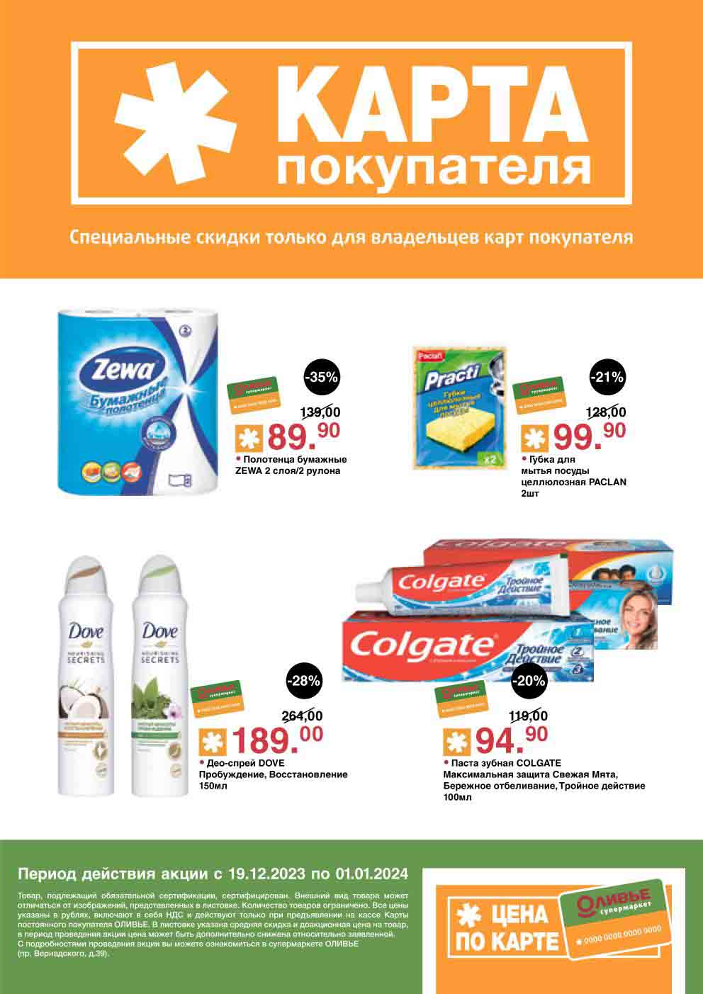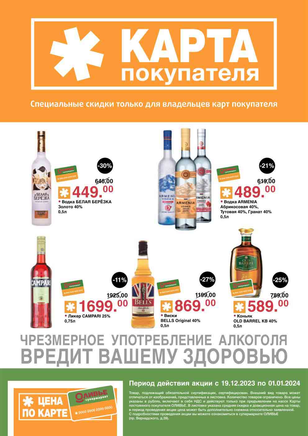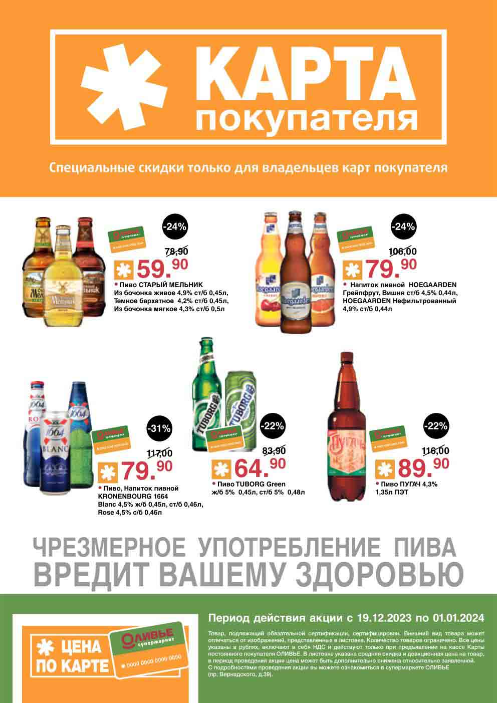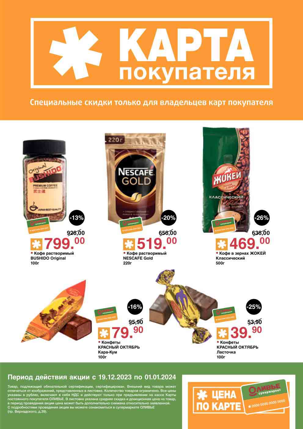 Оливье акции с 19 декабря — 1 января. Скидки по карте покупателя