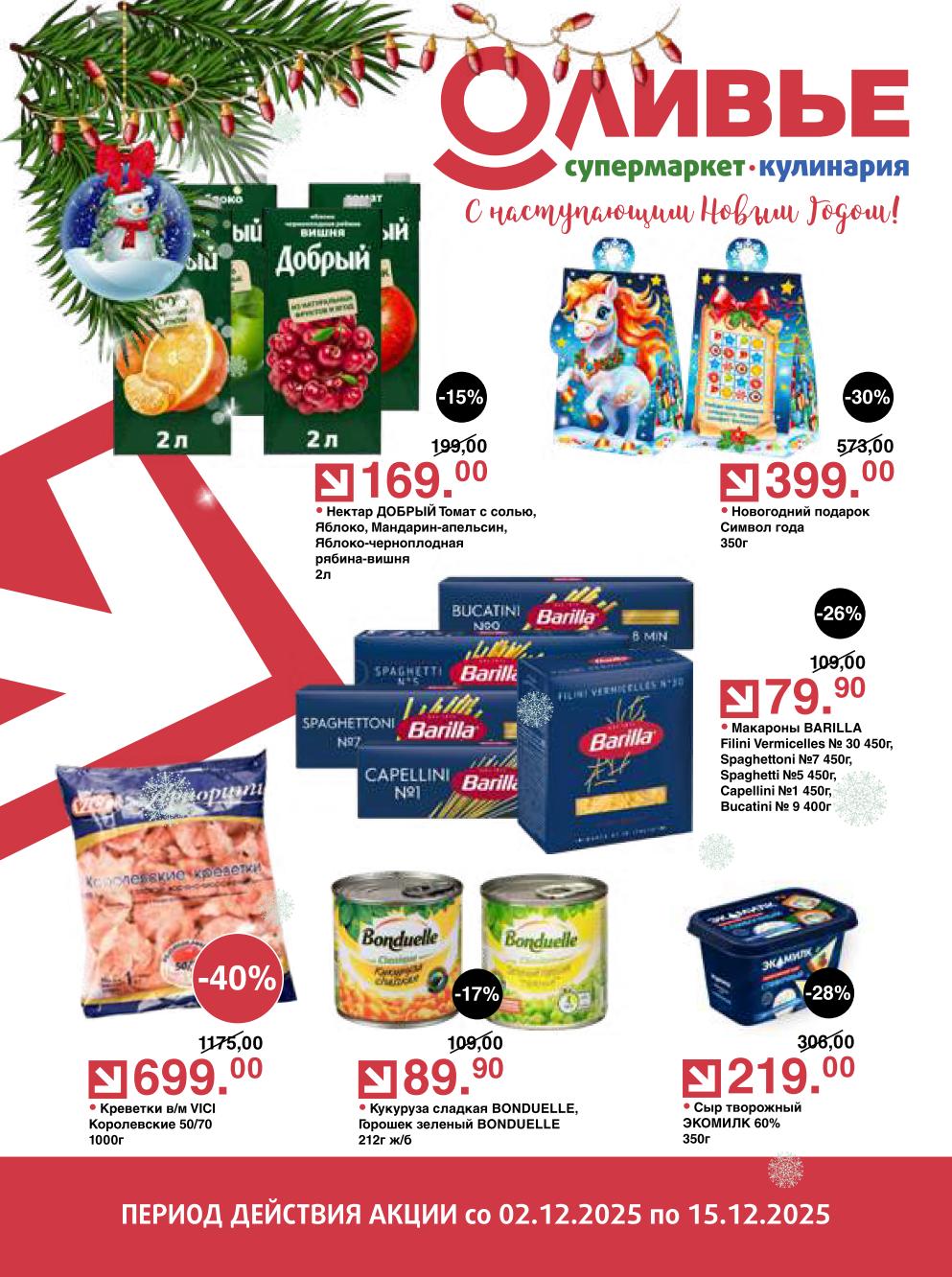 Оливье акции с 2 декабря — 15 декабря 2025. Регулярный каталог супермаркета