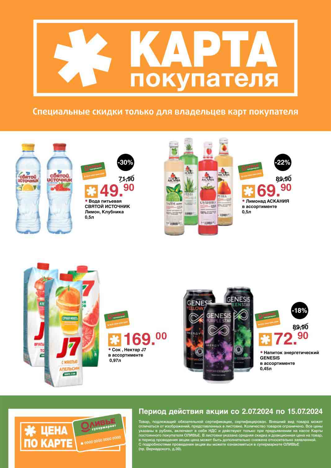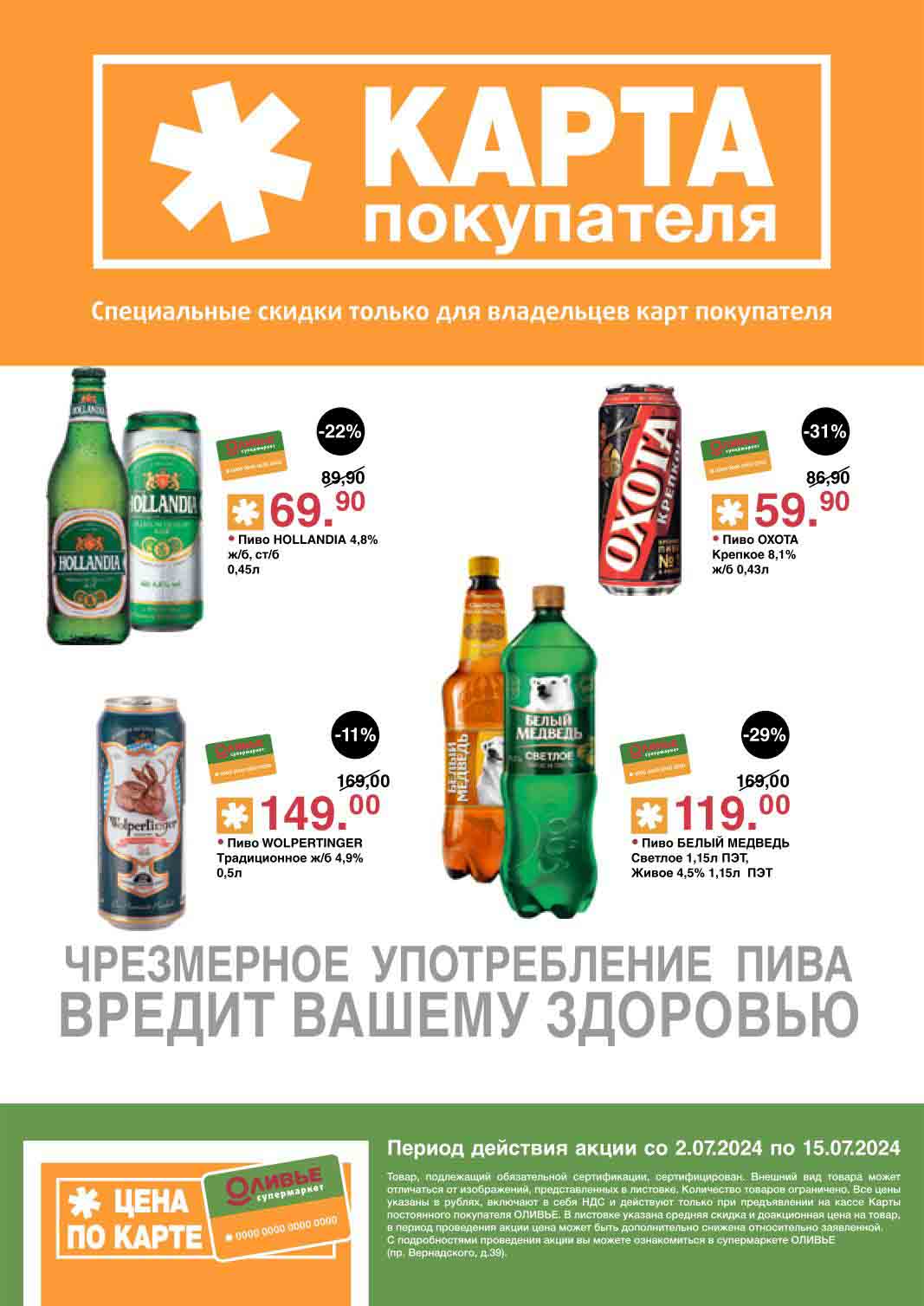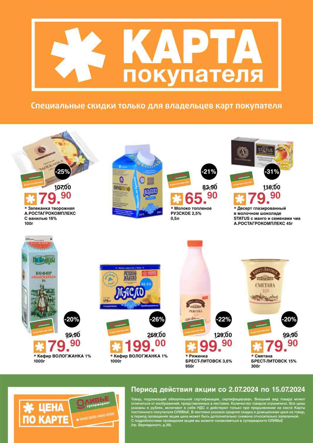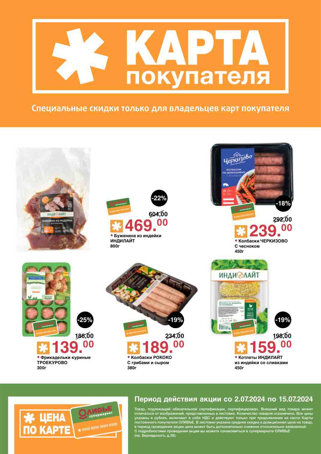 Оливье акции с 2 июля — 15 июля 2024. Скидки по карте покупателя